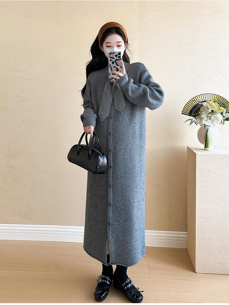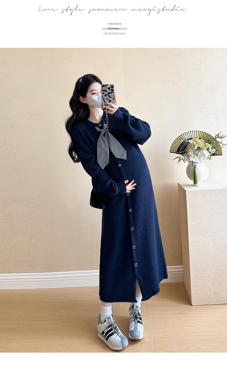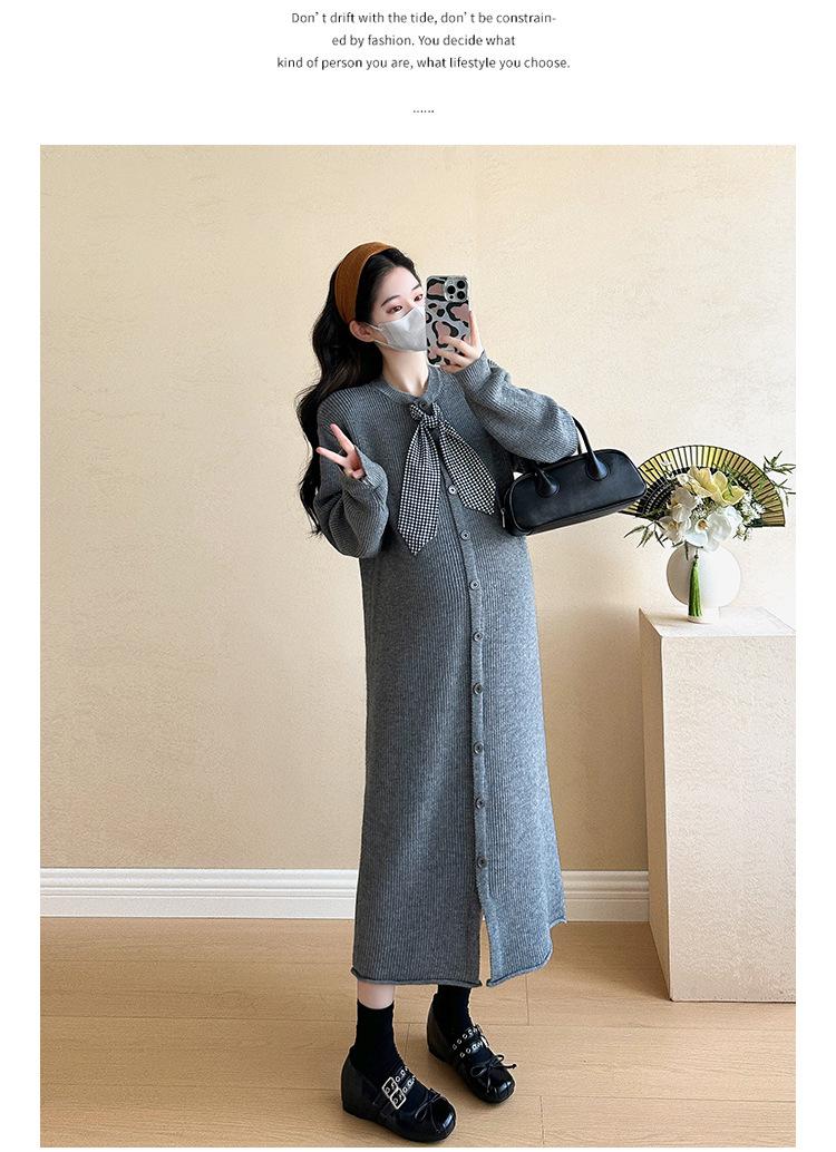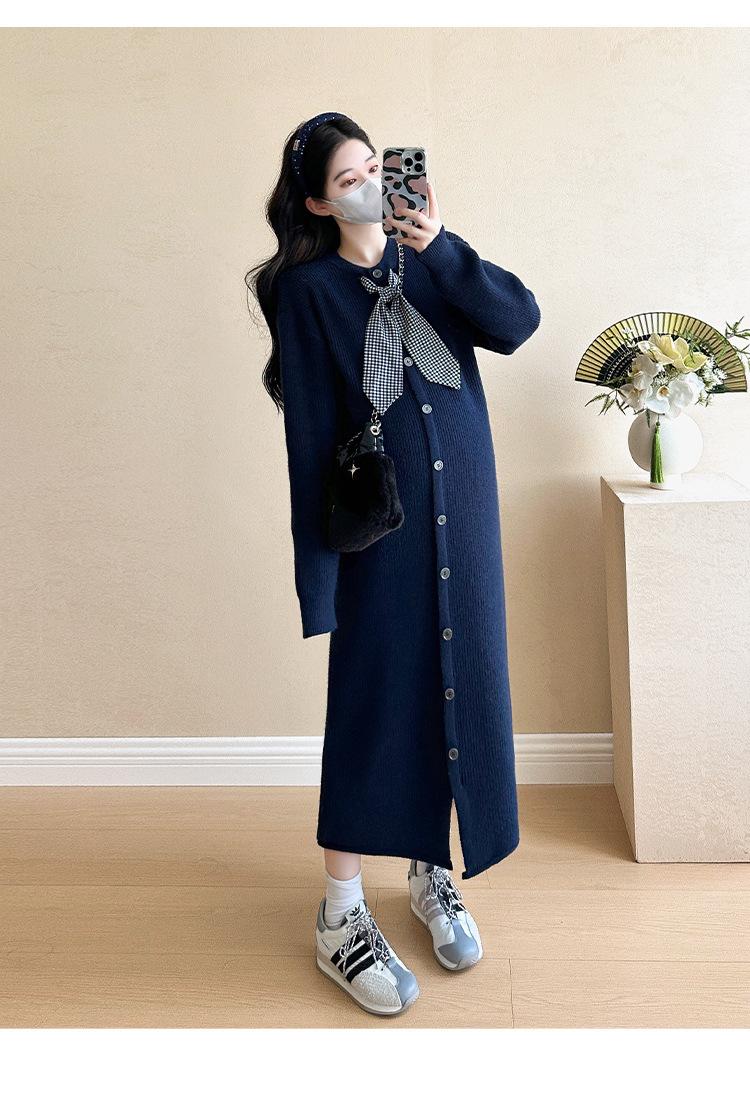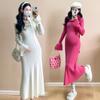 En stock 2024 Otoño e Invierno Nueva Falda de Punto para Mujeres Embarazadas Falda Suelta Simple para Mujeres Embarazadas Vestido Largo de Punto para Mujeres Embarazadas