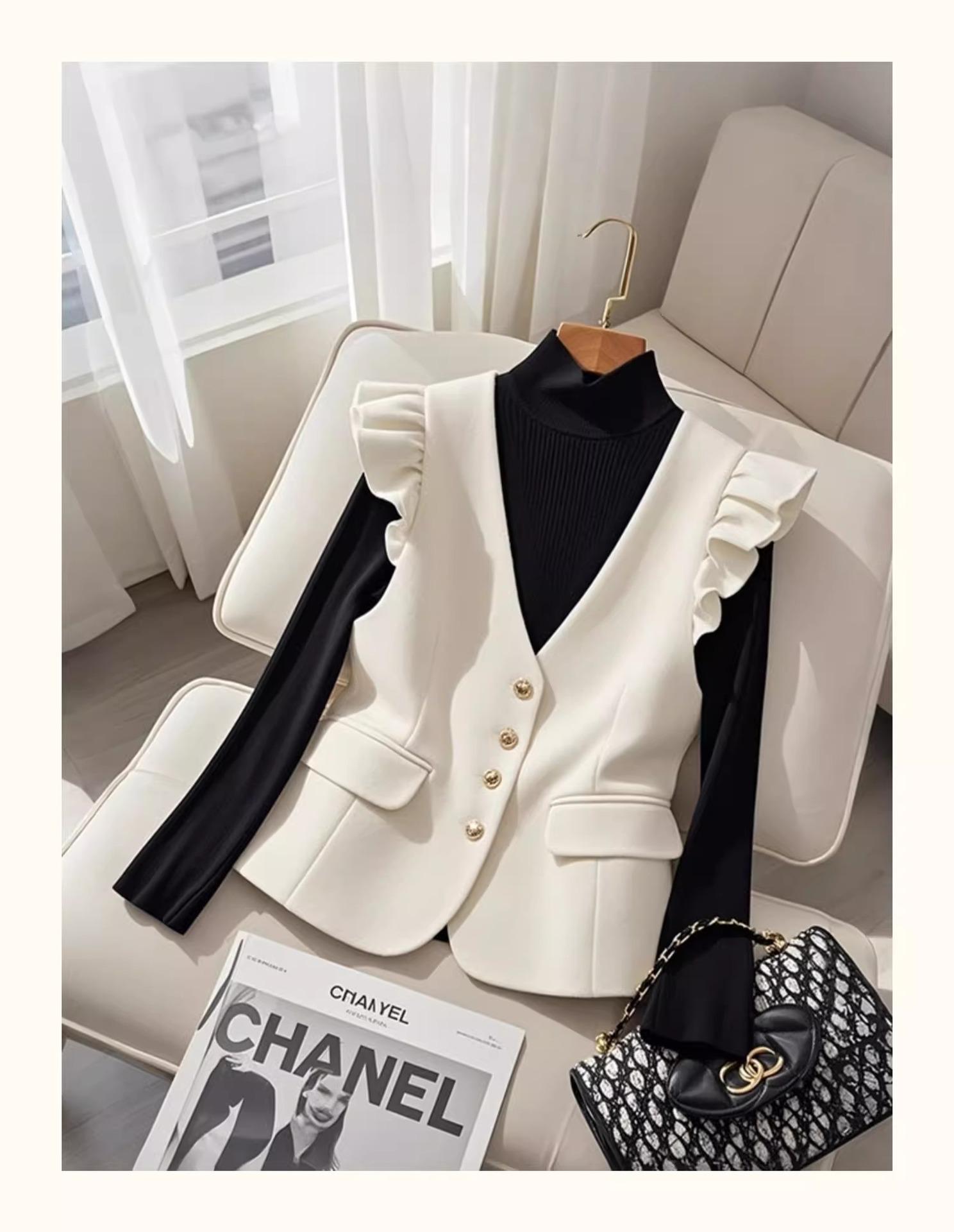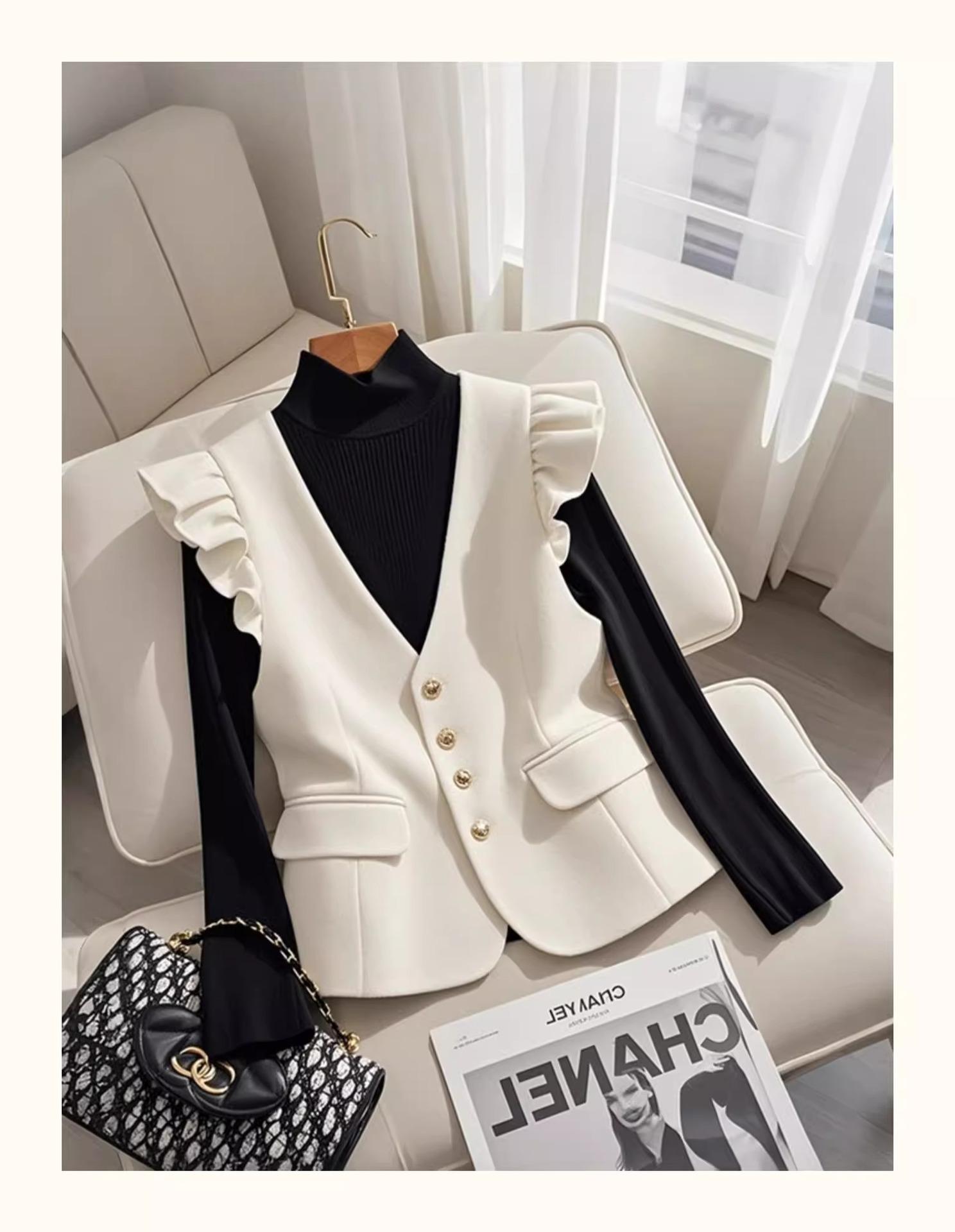 Chaleco Blanco para Mujer, Otoño e Invierno 2025, Look de Capas de Alta Gama, Blazer Blanco Estilo Chanel, Chaleco Estilo Francés para Mujer A3175