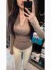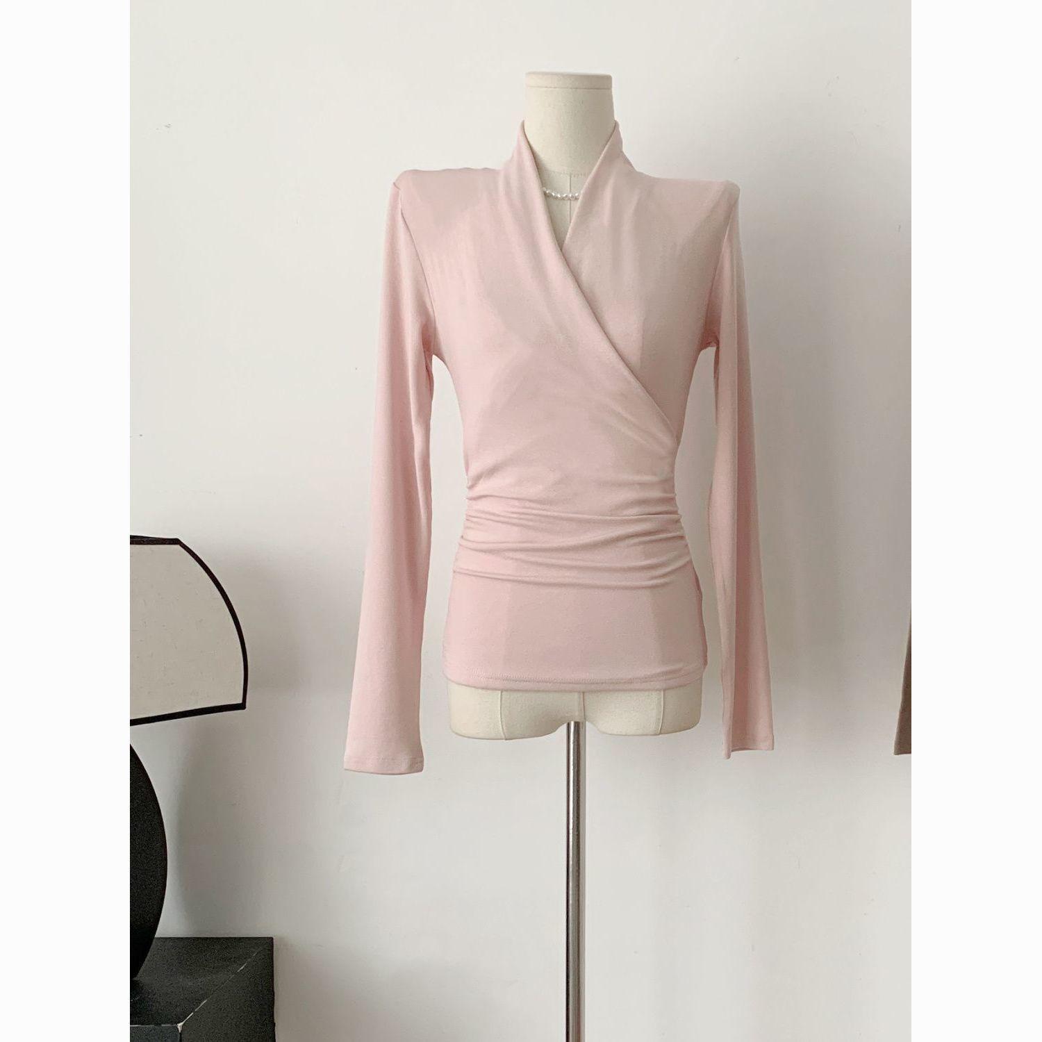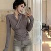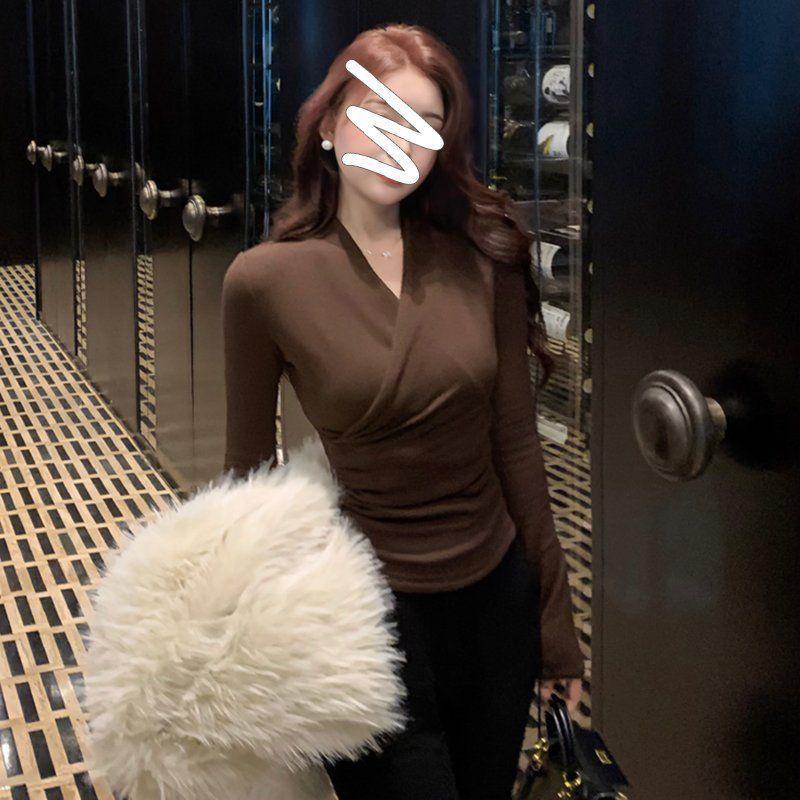 Otoño Deseo Puro Dulce Picante Ajustado Cuello en V Manga Larga Camiseta Nicho Ins Único Chic Moda Top Sexy