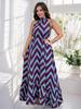 Vestido largo con cordones y cuello en V para mujer, sexy, sin mangas, con estampado de rayas onduladas, estilo europeo y americano, de comercio exterior, 2025