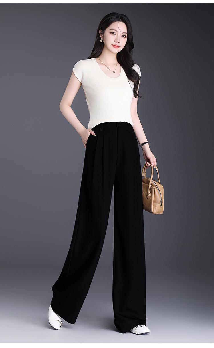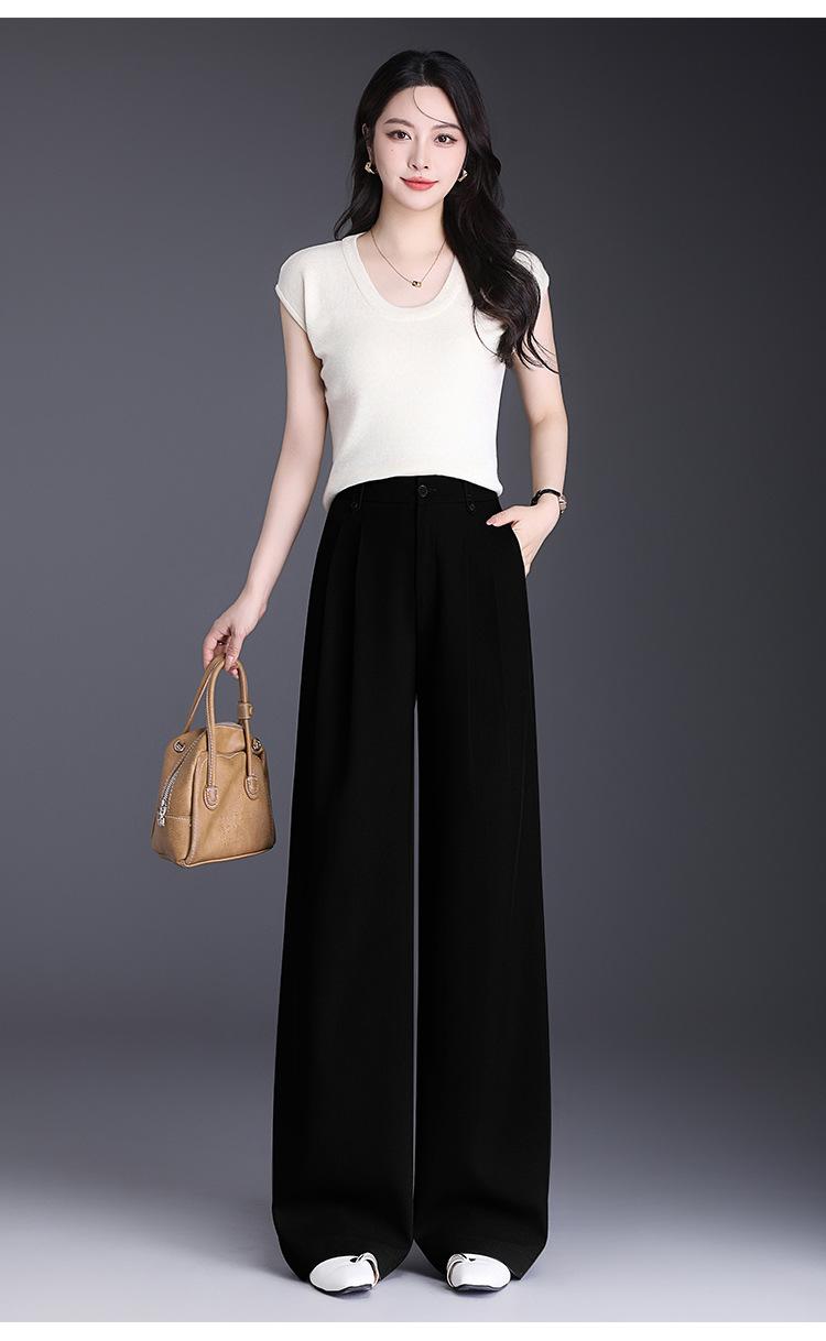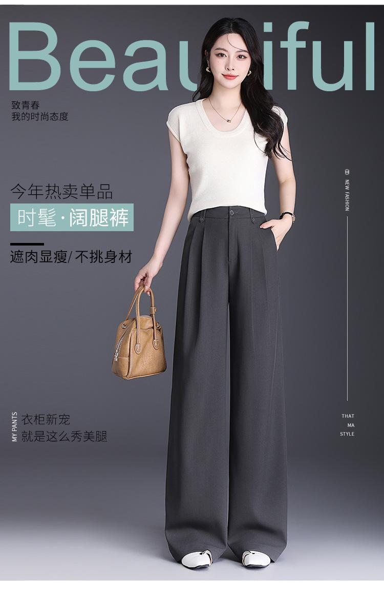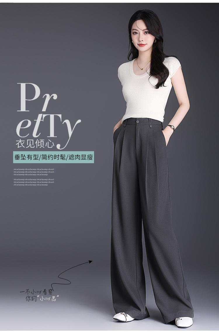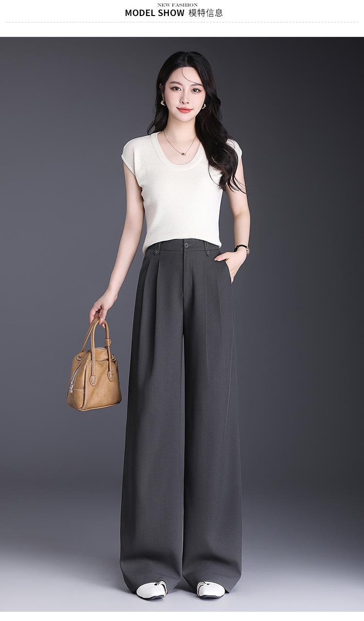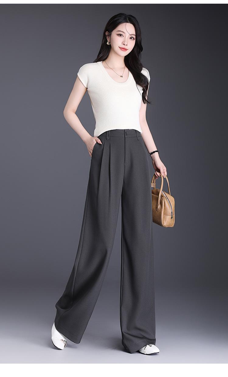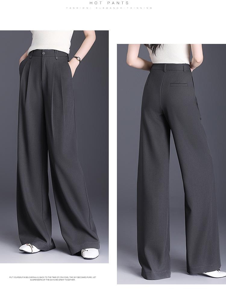 Pantalones grises de pierna recta para mujer, de verano, de cintura alta, anchos y holgados, combinables, informales, finos.