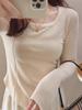 Outono Nova Sexy Spice Girls Slim-fit Slimming Gola Quadrada Costura Manga Comprida T-shirt Nicho Design All-match Top Ins Mulheres
