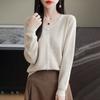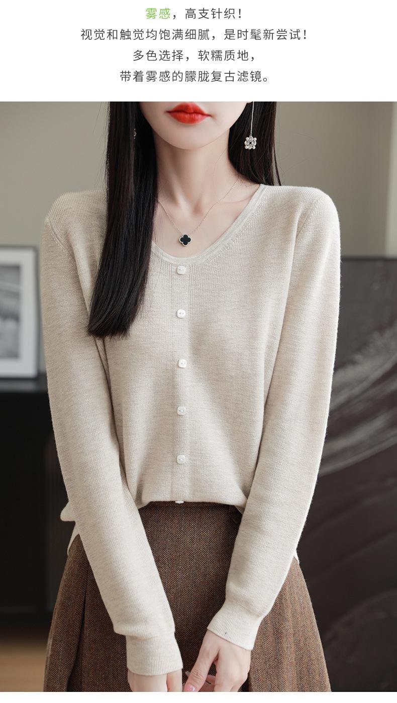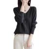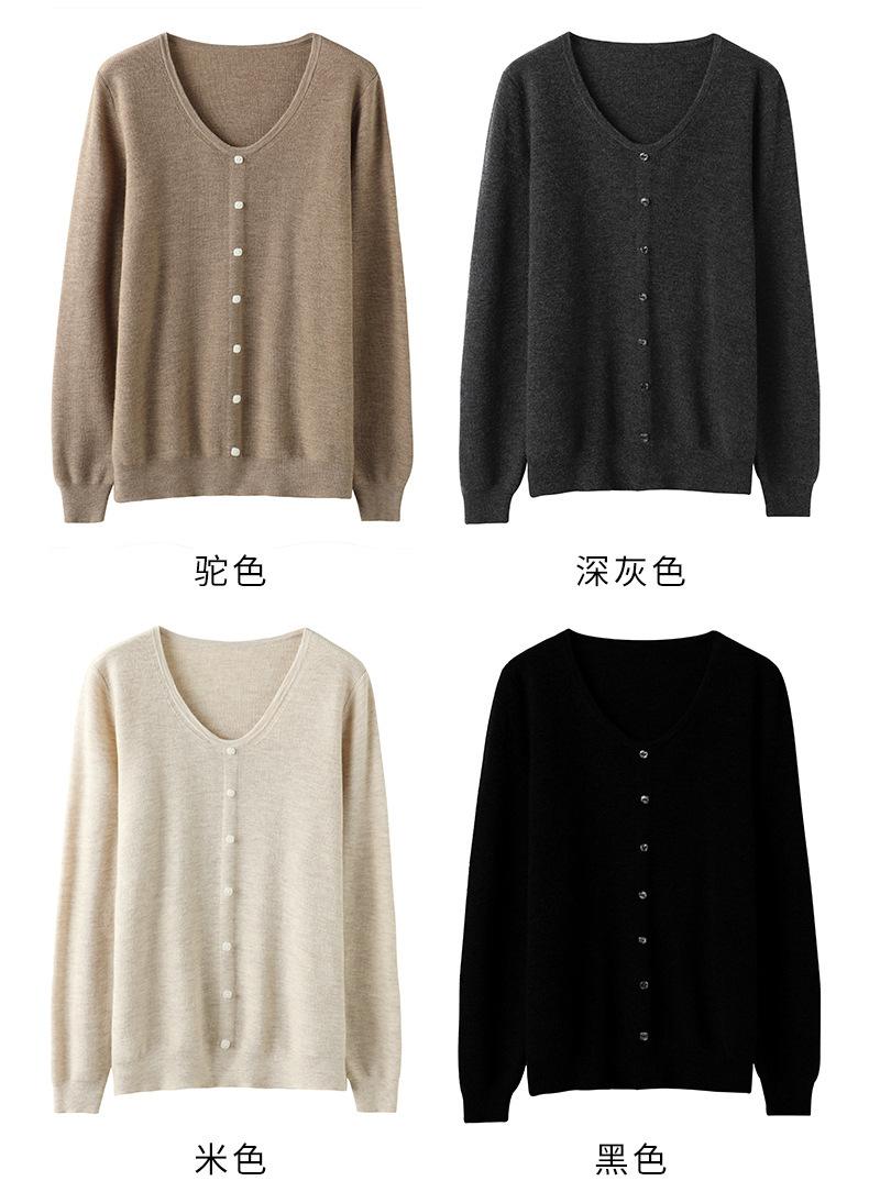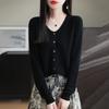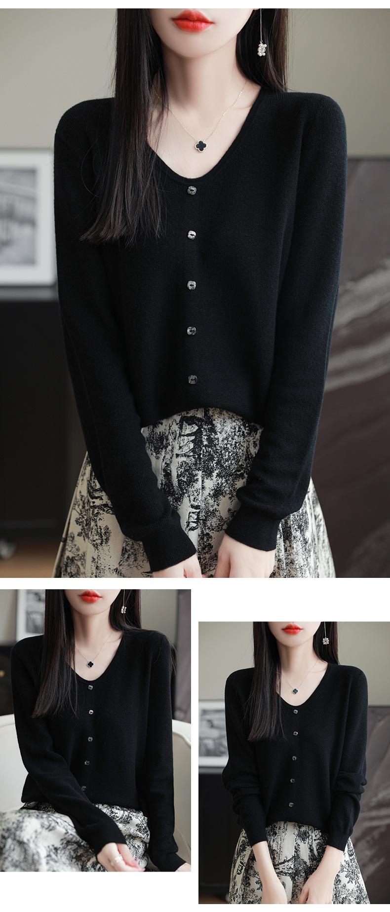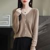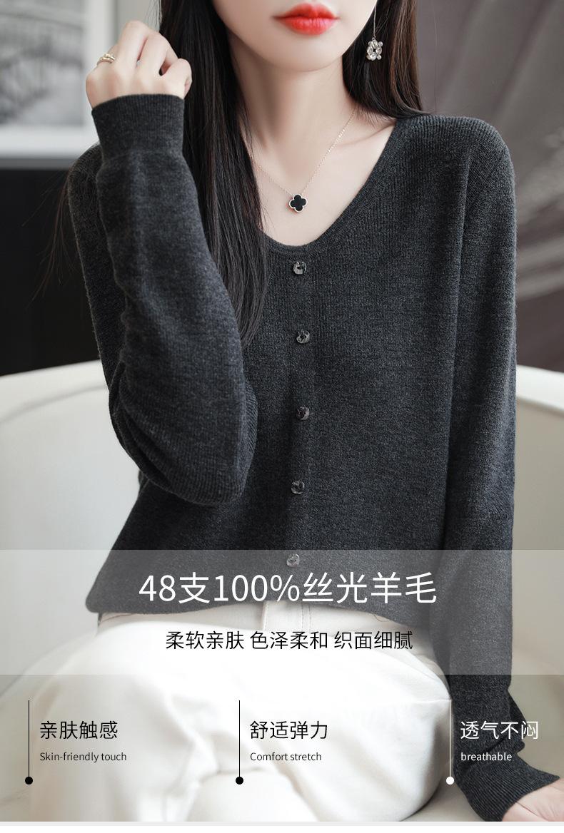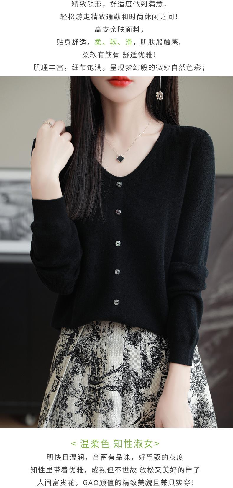 Elegante cárdigan de lana 100% peinada con cuello en V para mujer, color liso, holgado, informal, sencillo, de un solo pecho