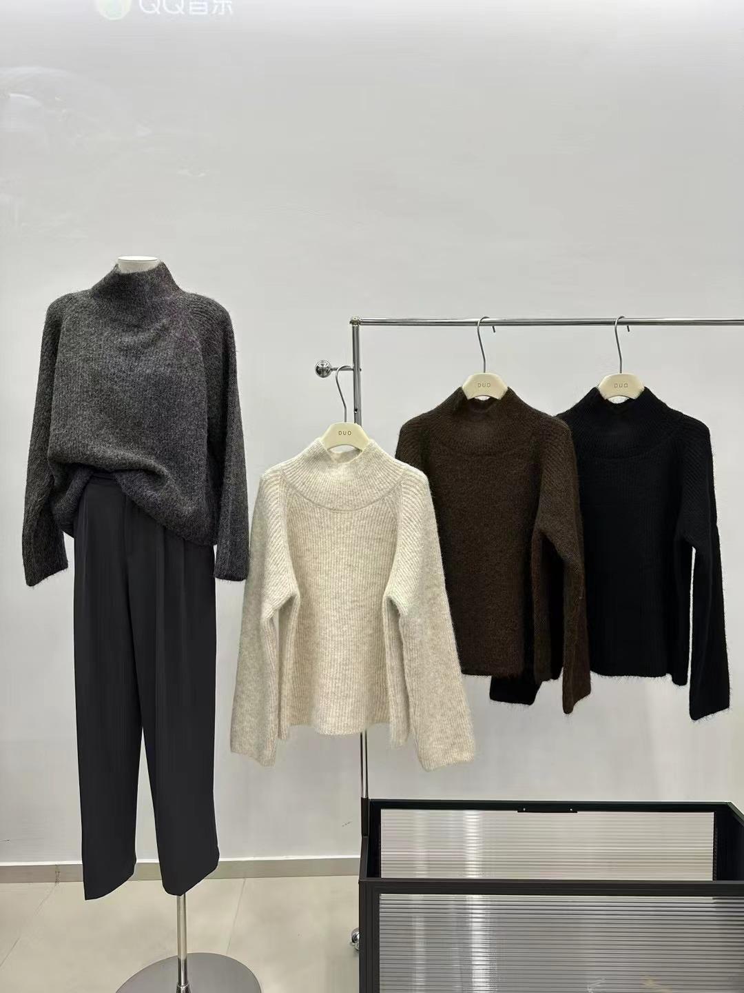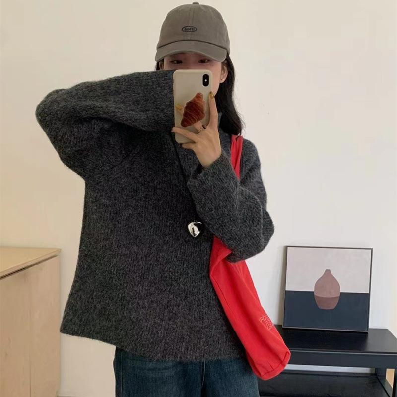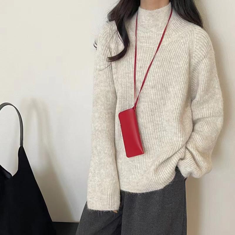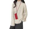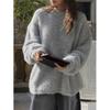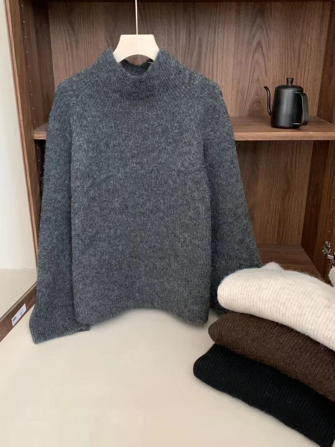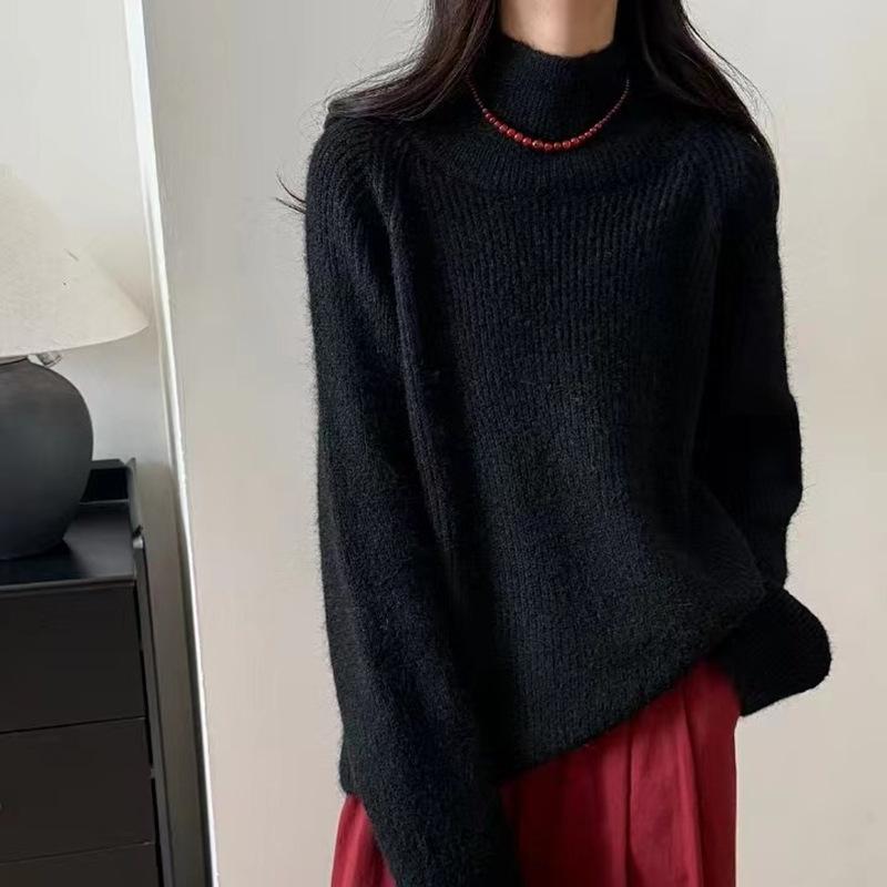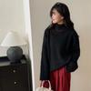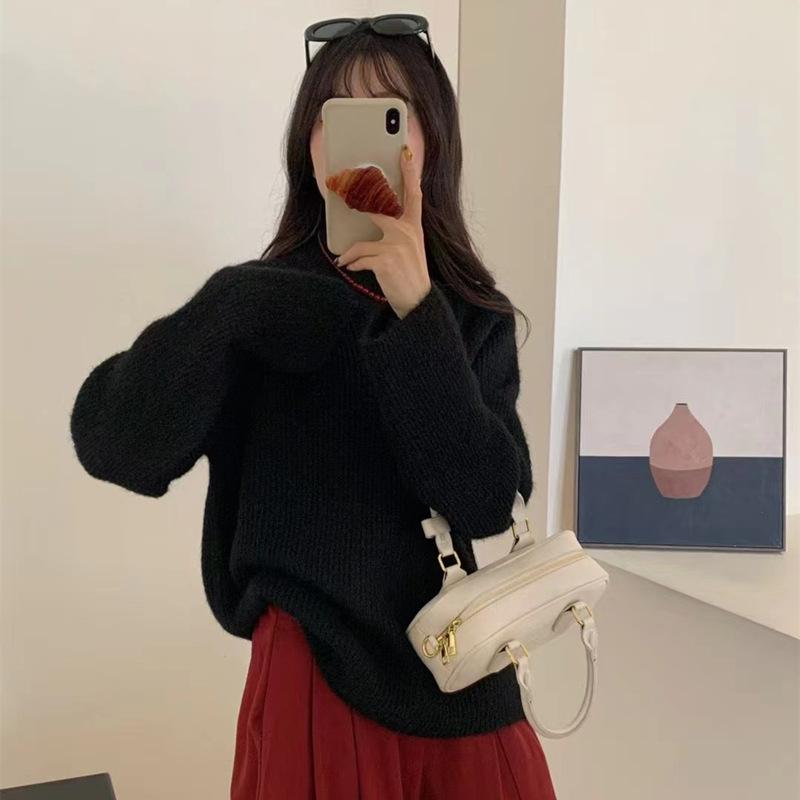 Suéter de Punto Largo de Alpaca de Cuello Alto para Mujer Otoño e Invierno Nuevo Estilo Coreano Estilo Lazy Moderno Color Sólido Top