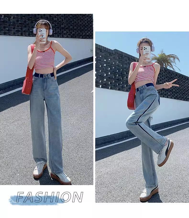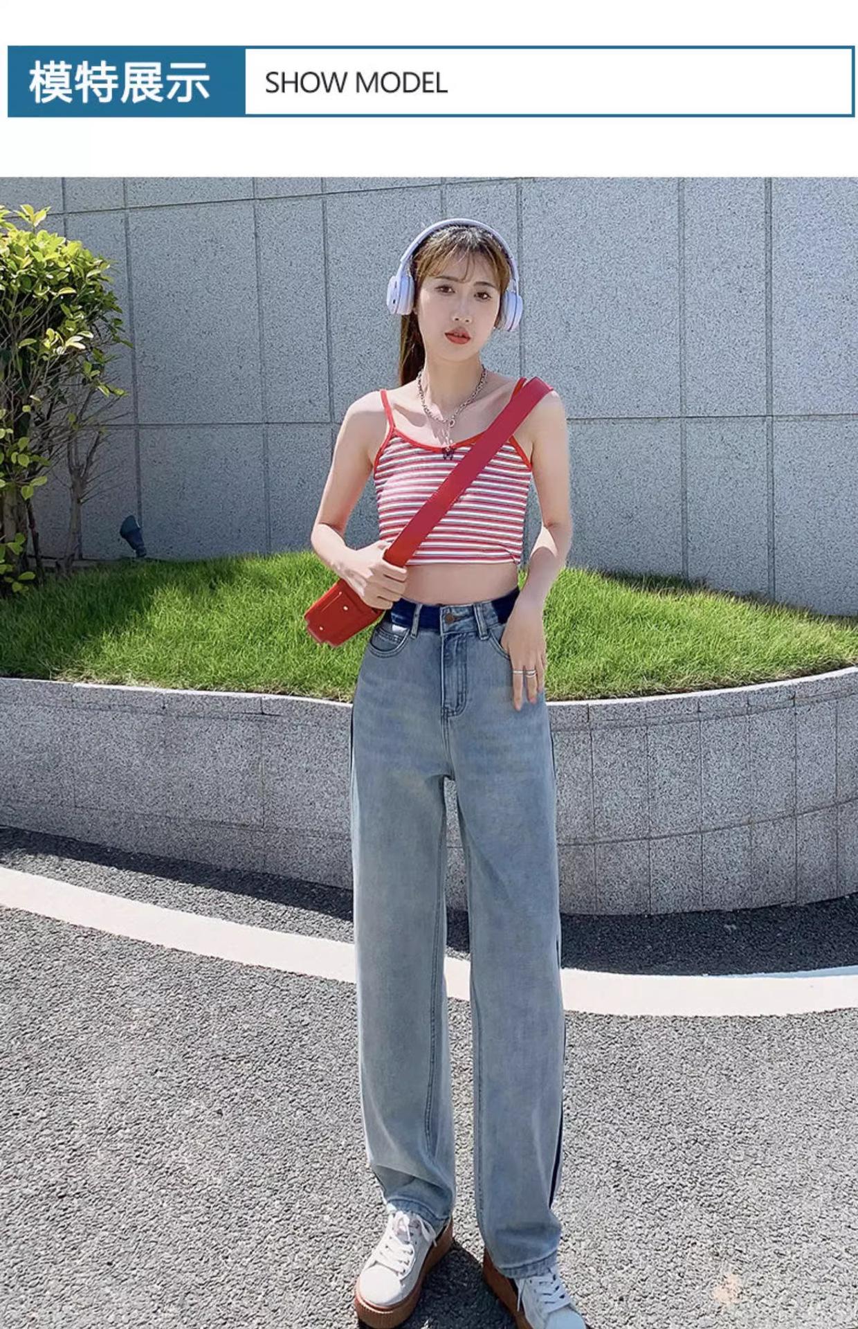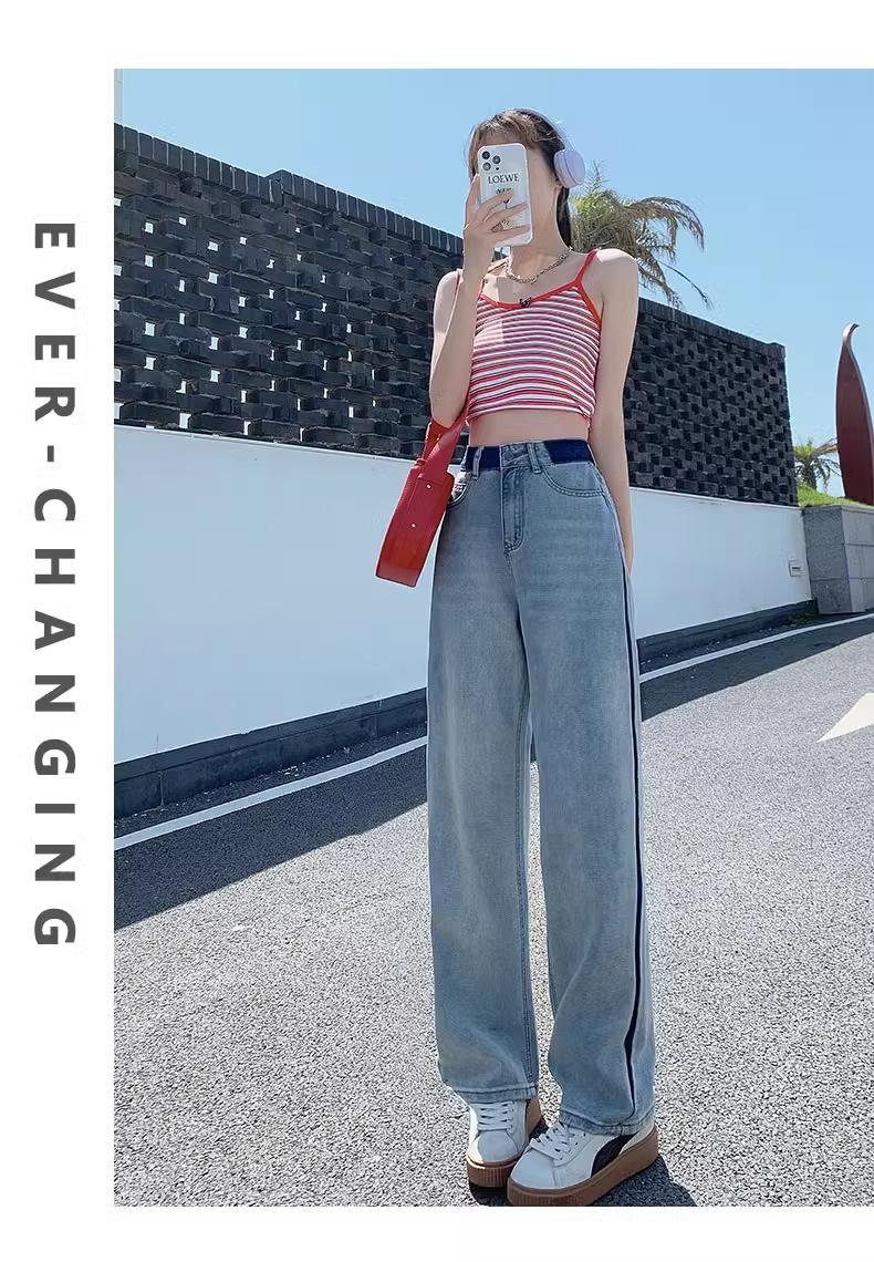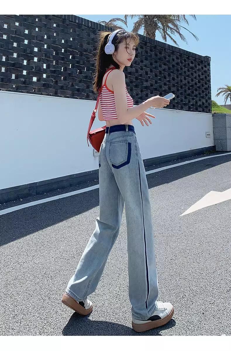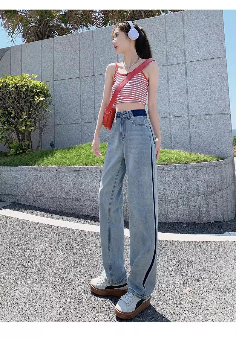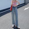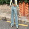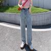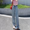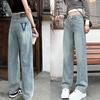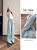 2024 Nuevo Otoño Jeans azul claro para mujer Ajustados Cintura alta Diseño suelto Sensación Rectos Pierna ancha