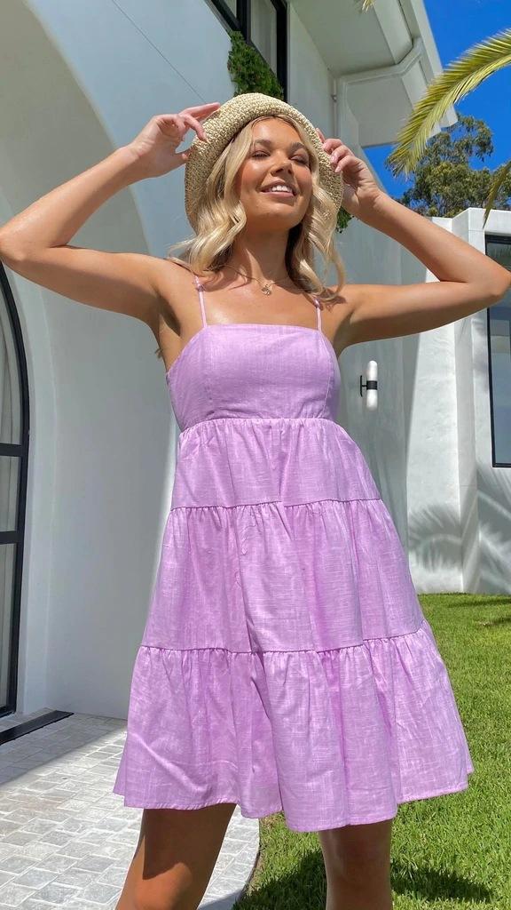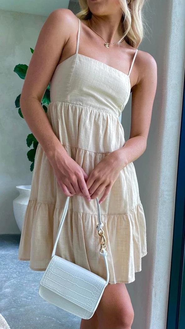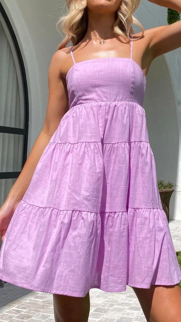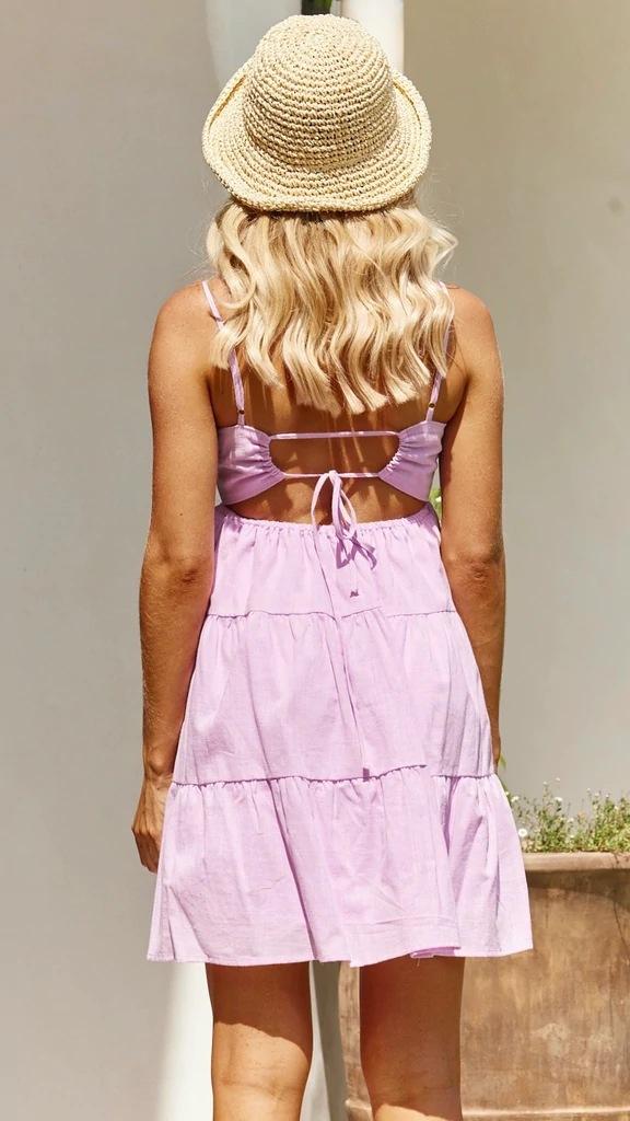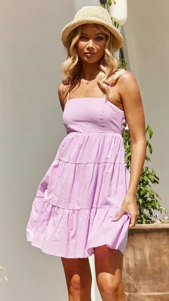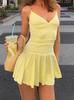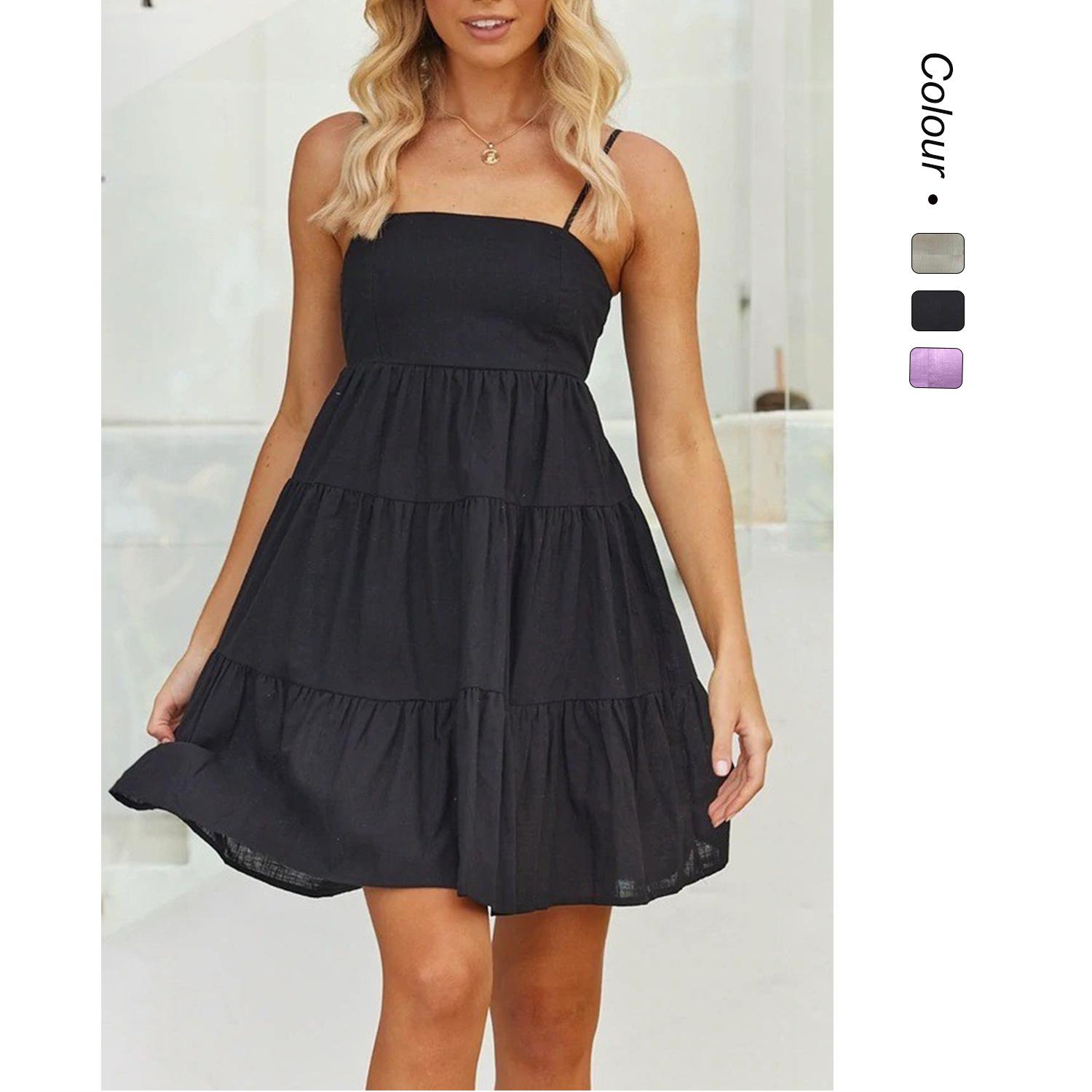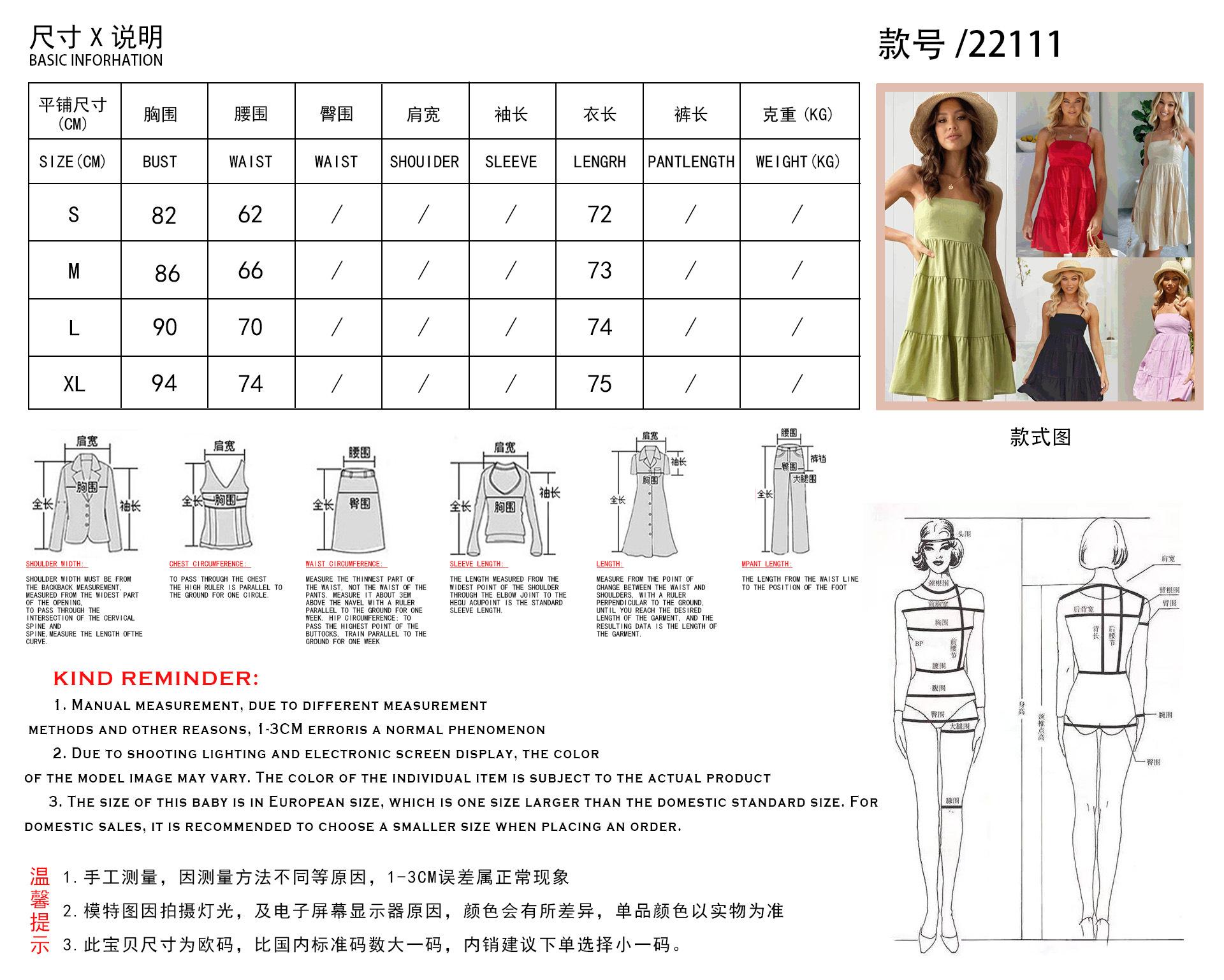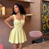 Vestido Corto de Tirantes Nuevo de Primavera y Verano 2025 Europeo y Americano Transfronterizo Color Puro Fresco y Dulce 22111