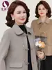 Abrigo de Primavera para Mamá 2025 Nuevo Estilo Tops para Mujeres de Mediana Edad y Mayores Chaqueta de Punto a Cuadros con Solapa para Primavera, Otoño e Invierno