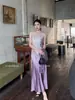 Falda de satén de cintura alta y longitud media para mujer, verano 2025, nueva falda de estilo francés de alta gama, adelgazante, suave y cómoda.