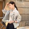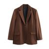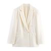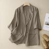 Traje de Chaqueta de Ramio para Mujer Primavera y Verano 2025 Artístico Retro Doble Bolsillo Holgado Cuello en V Manga Media Exterior Top