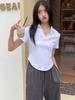 Polo Retro de Hombro Derecho Camiseta de Manga Corta para Mujer Estilo Coreano Verano Diseño Slim Nicho Chic Top Corto Sexy