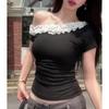 Playera Blanca de Manga Corta con Hombro Derecho Descubierto para Mujer Verano 2025 Nueva Camisa de Corte Slim Look Adelgazante Top de Cintura Ligeramente Sexy