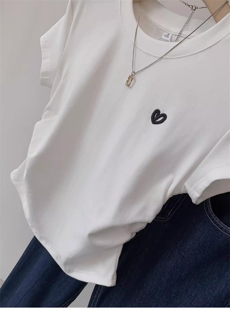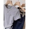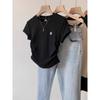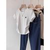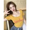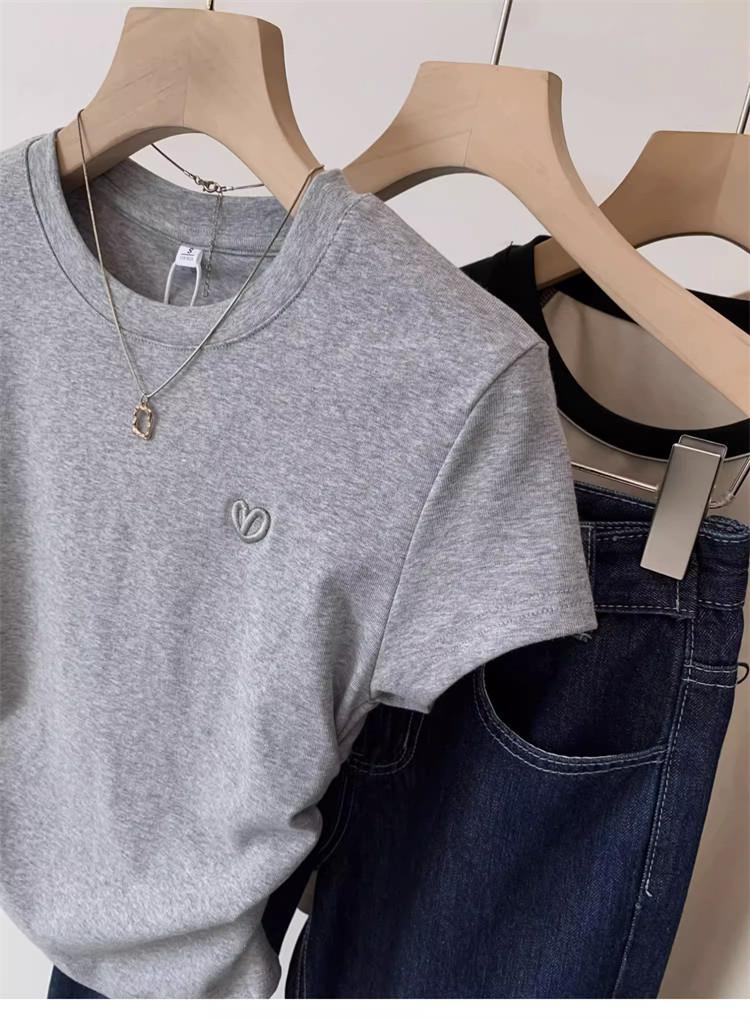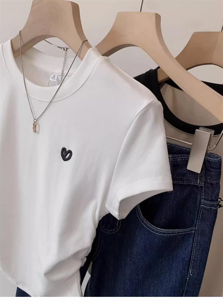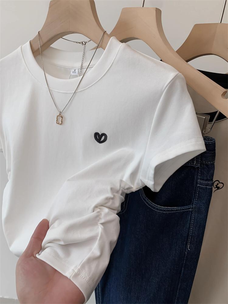 Playera de Cuello Redondo, Hombro Derecho, Entallada de Manga Corta 2025 Verano Nuevo para Mujer con Pliegues para un Look Adelgazante, Top Corto Sexy