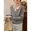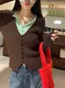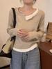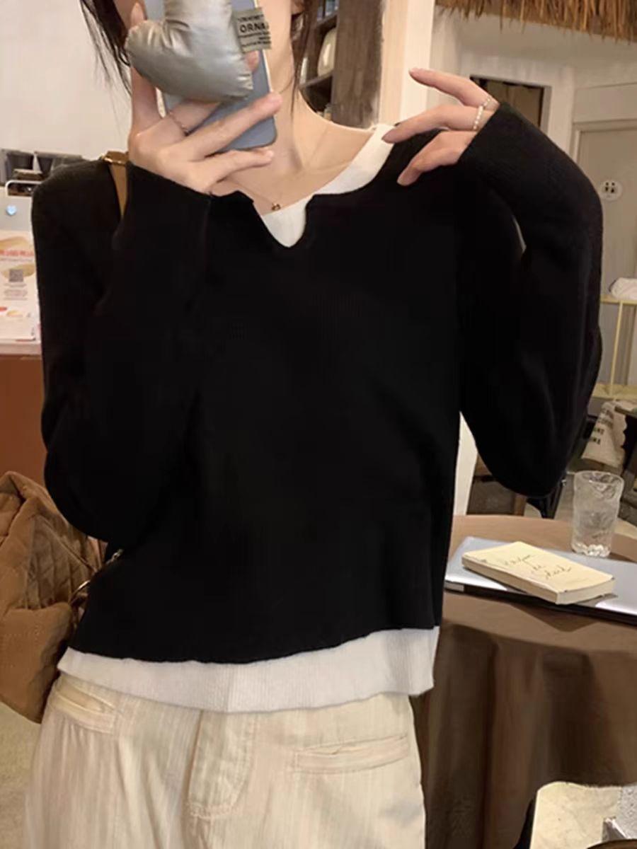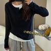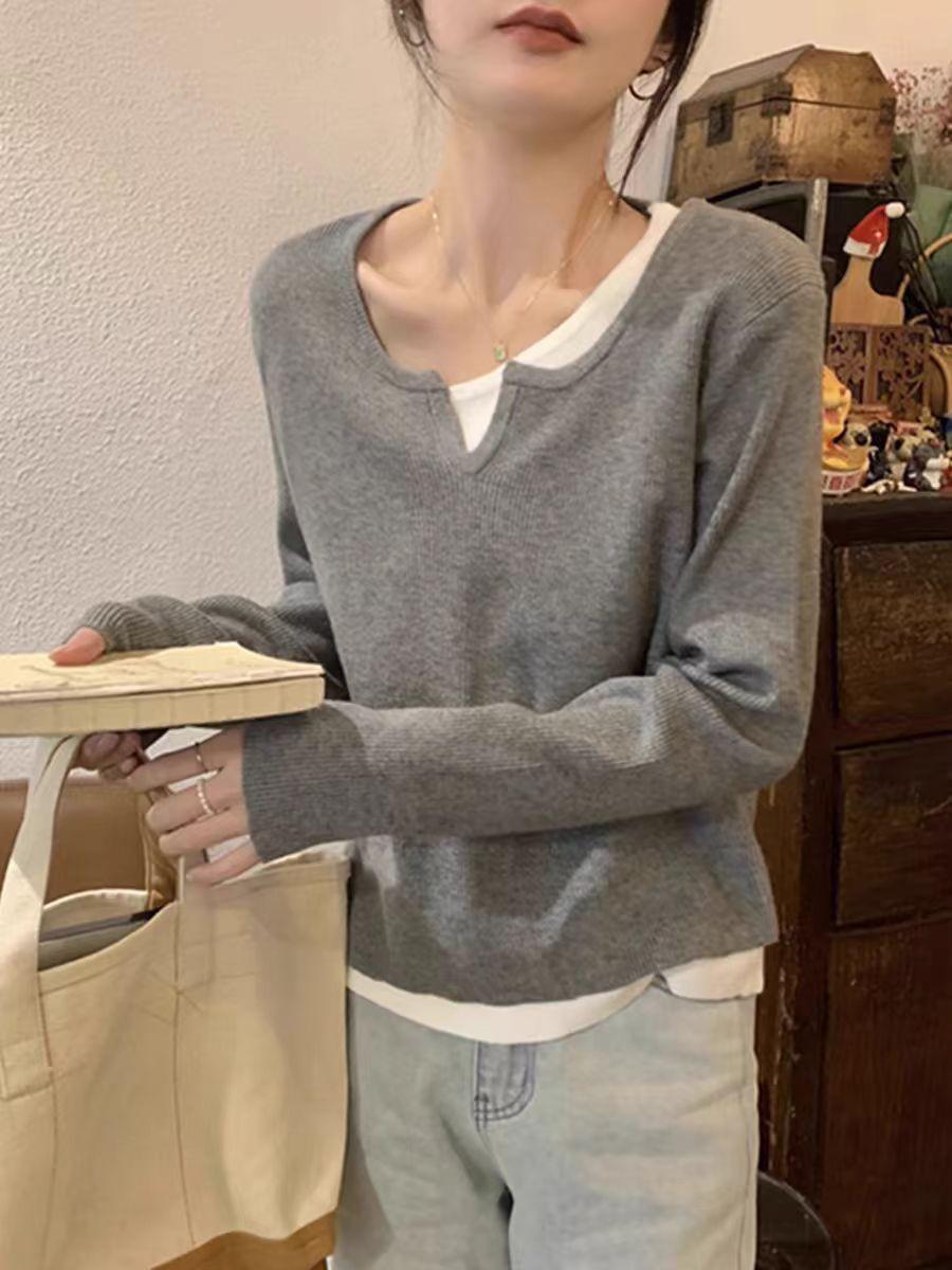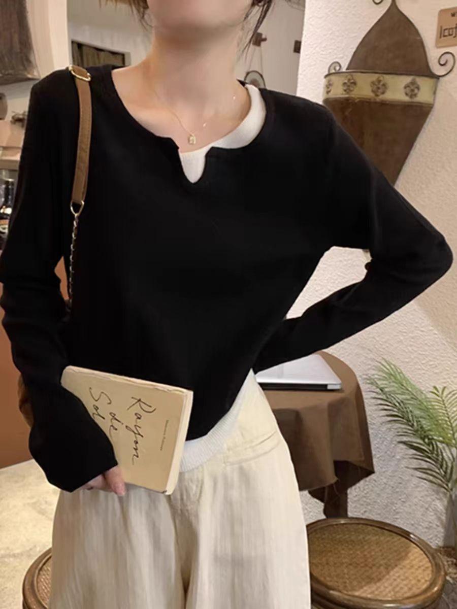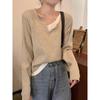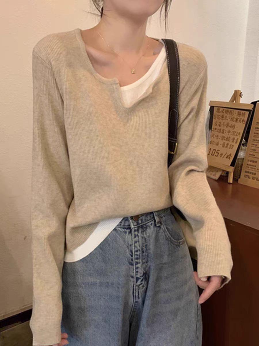 Suave Cera Falso Dos Piezas Tejido Camiseta de Manga Larga Camiseta Base Otoño Invierno Chica Caliente Sexy Deseo Puro Nicho Top Ins