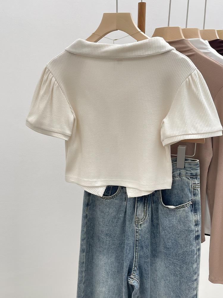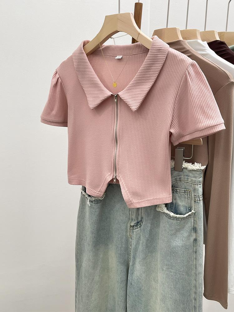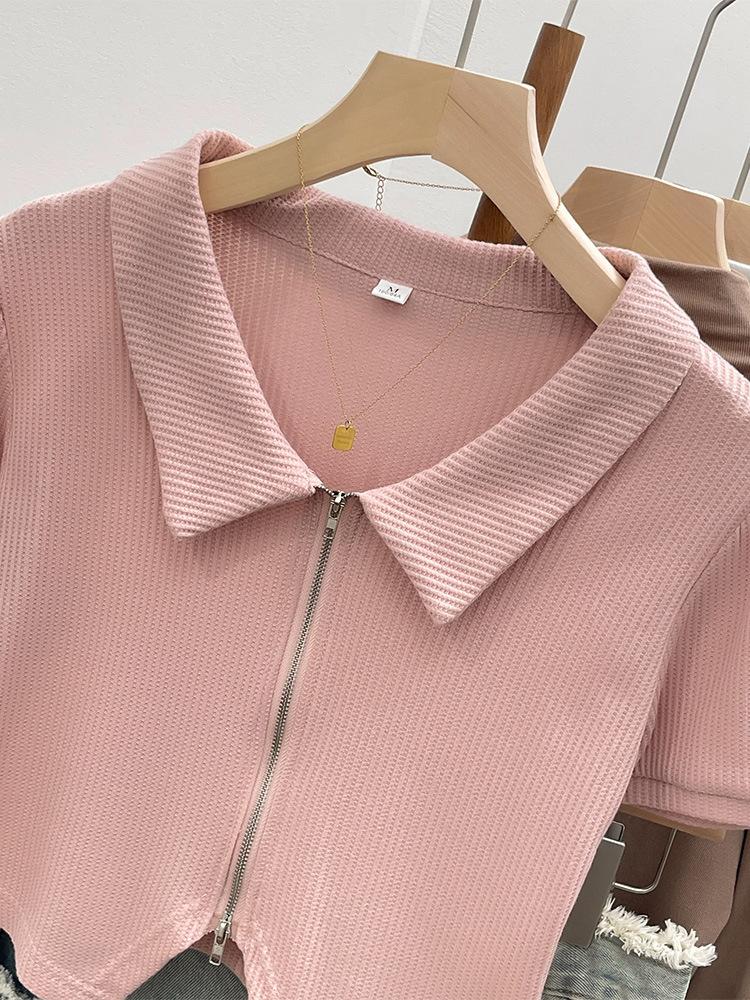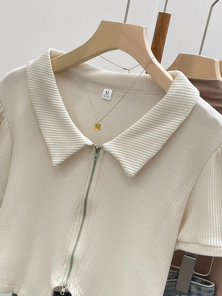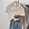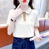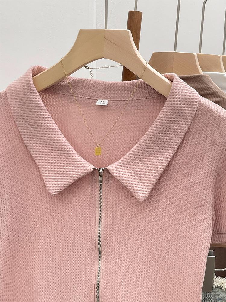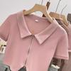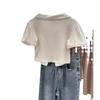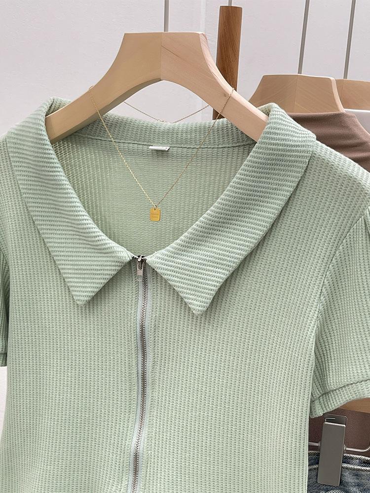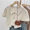 Camiseta de manga corta para mujer, ajustada, adelgazante, de cintura alta, moderna, combinable con todo, con cuello polo, 2024