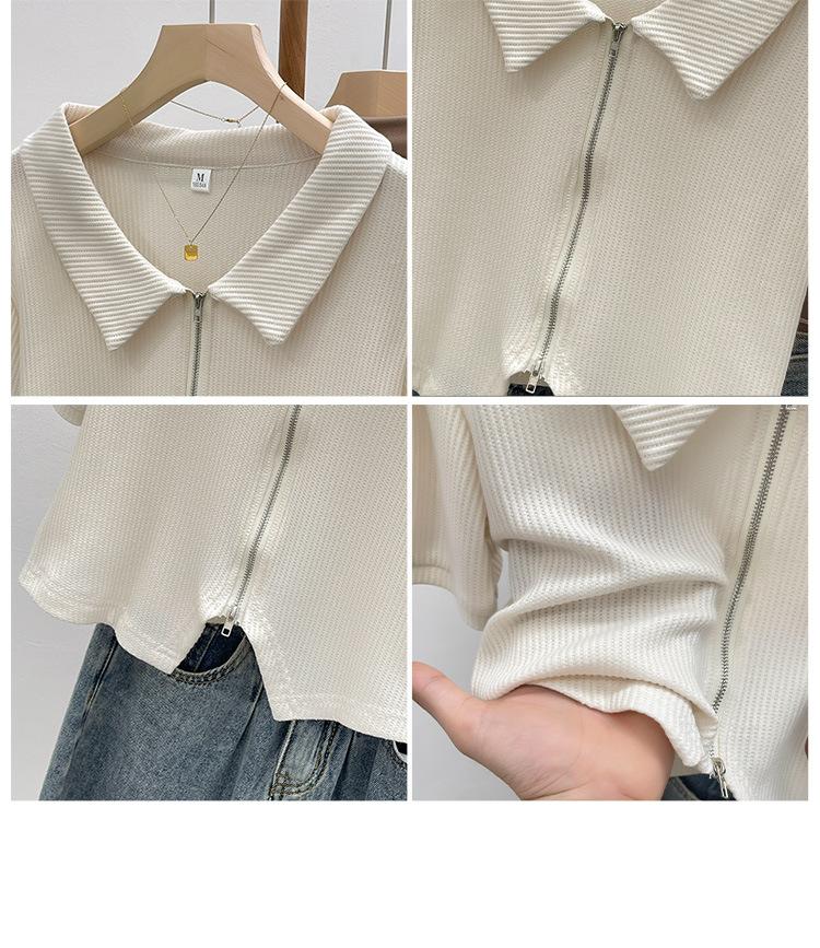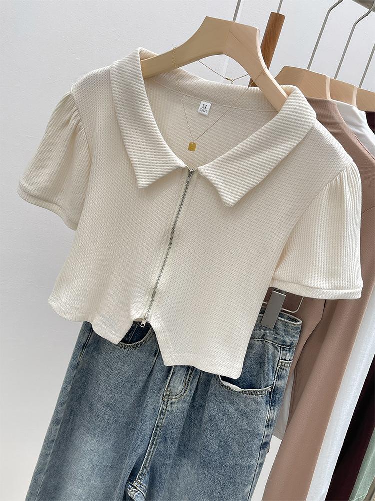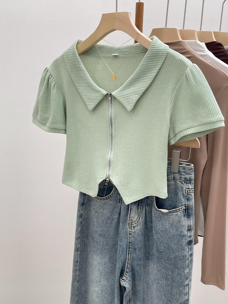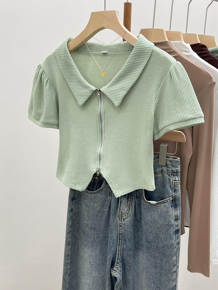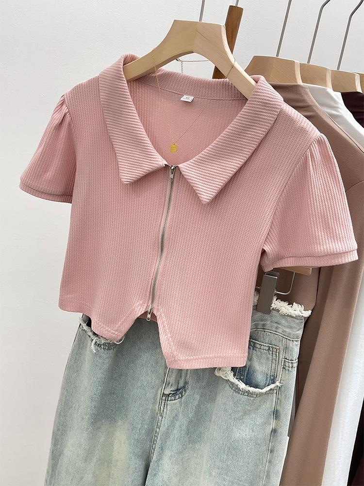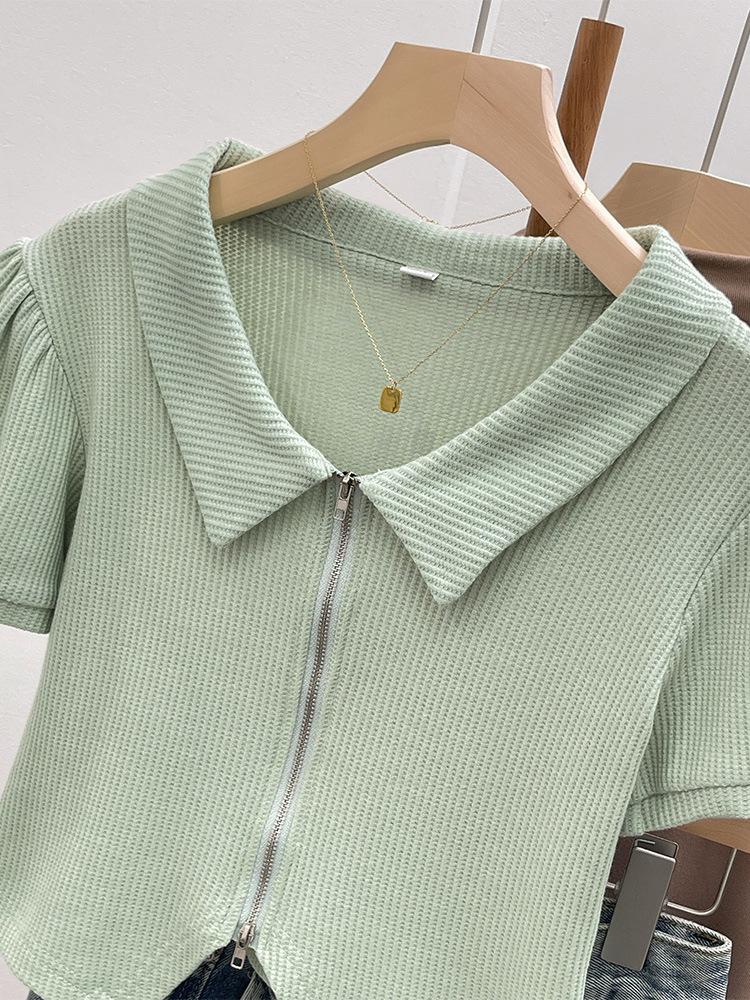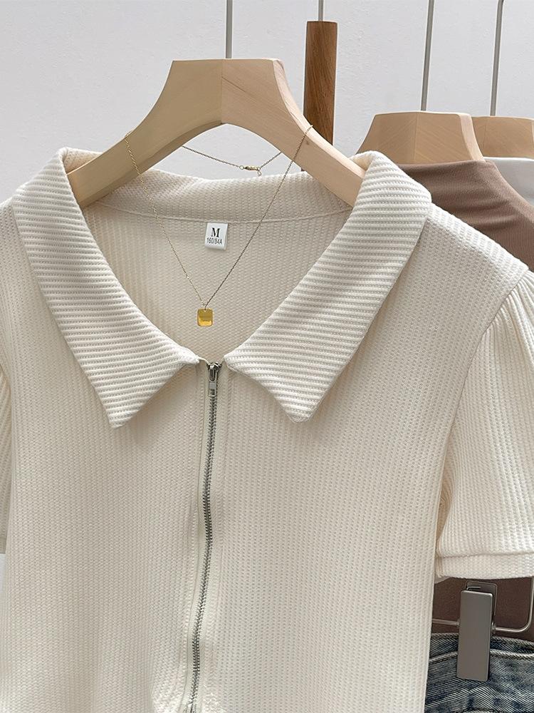 Camiseta de manga corta para mujer, ajustada, adelgazante, de cintura alta, moderna, combinable con todo, con cuello polo, 2024
