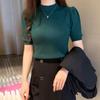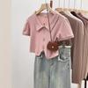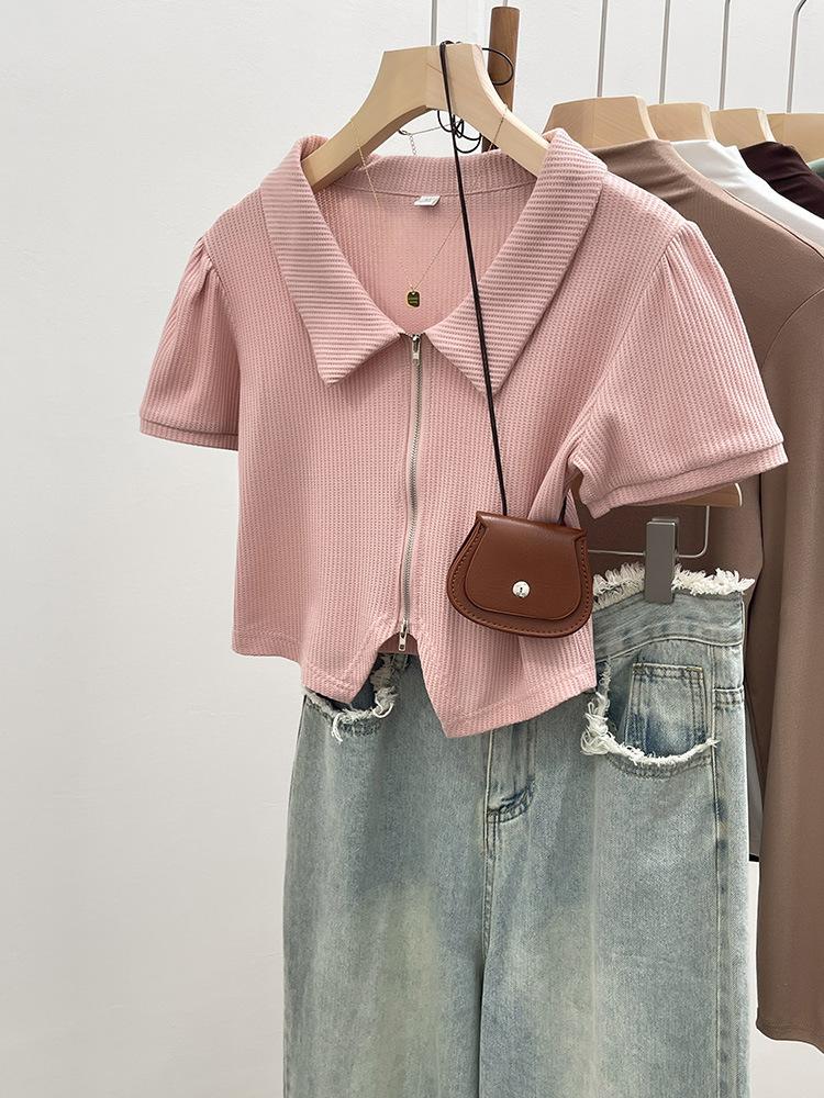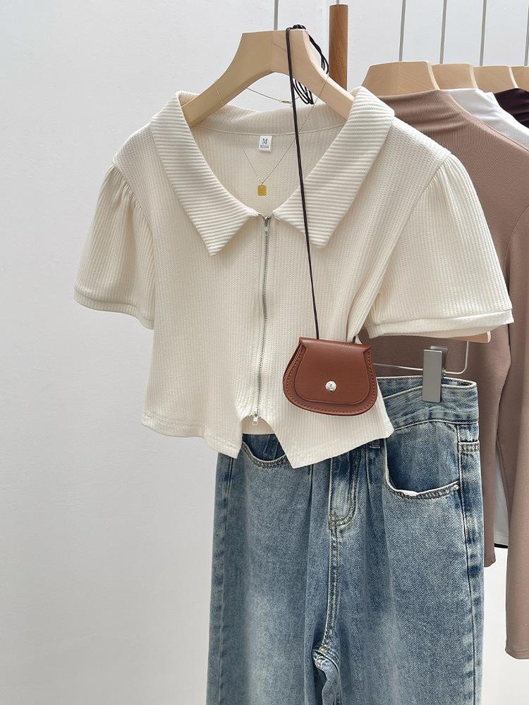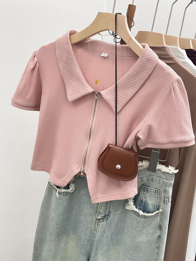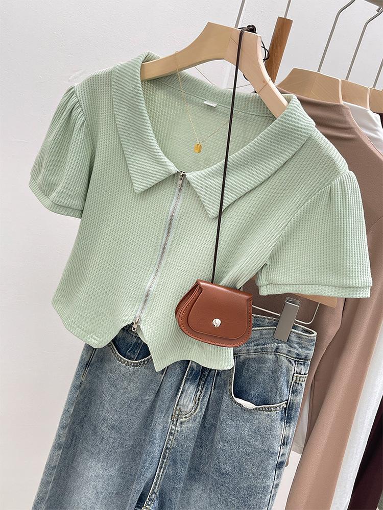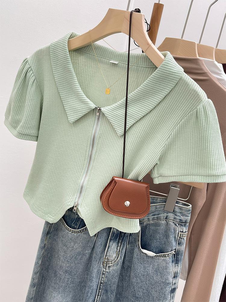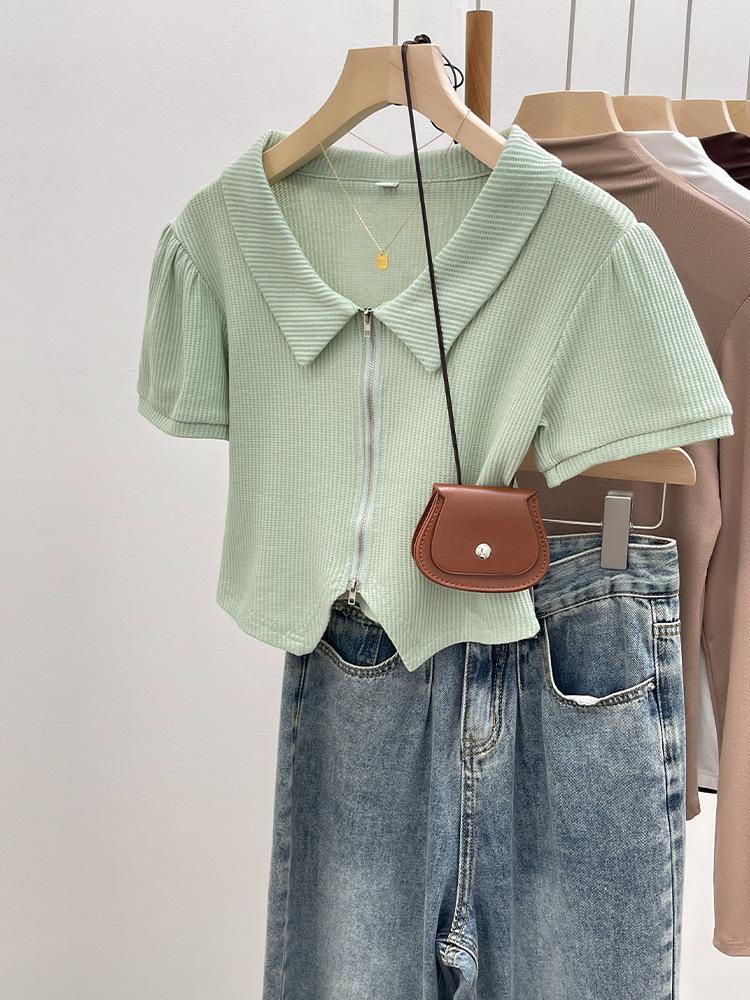 Camiseta de manga corta para mujer, ajustada, adelgazante, de cintura alta, moderna, combinable con todo, con cuello polo, 2024