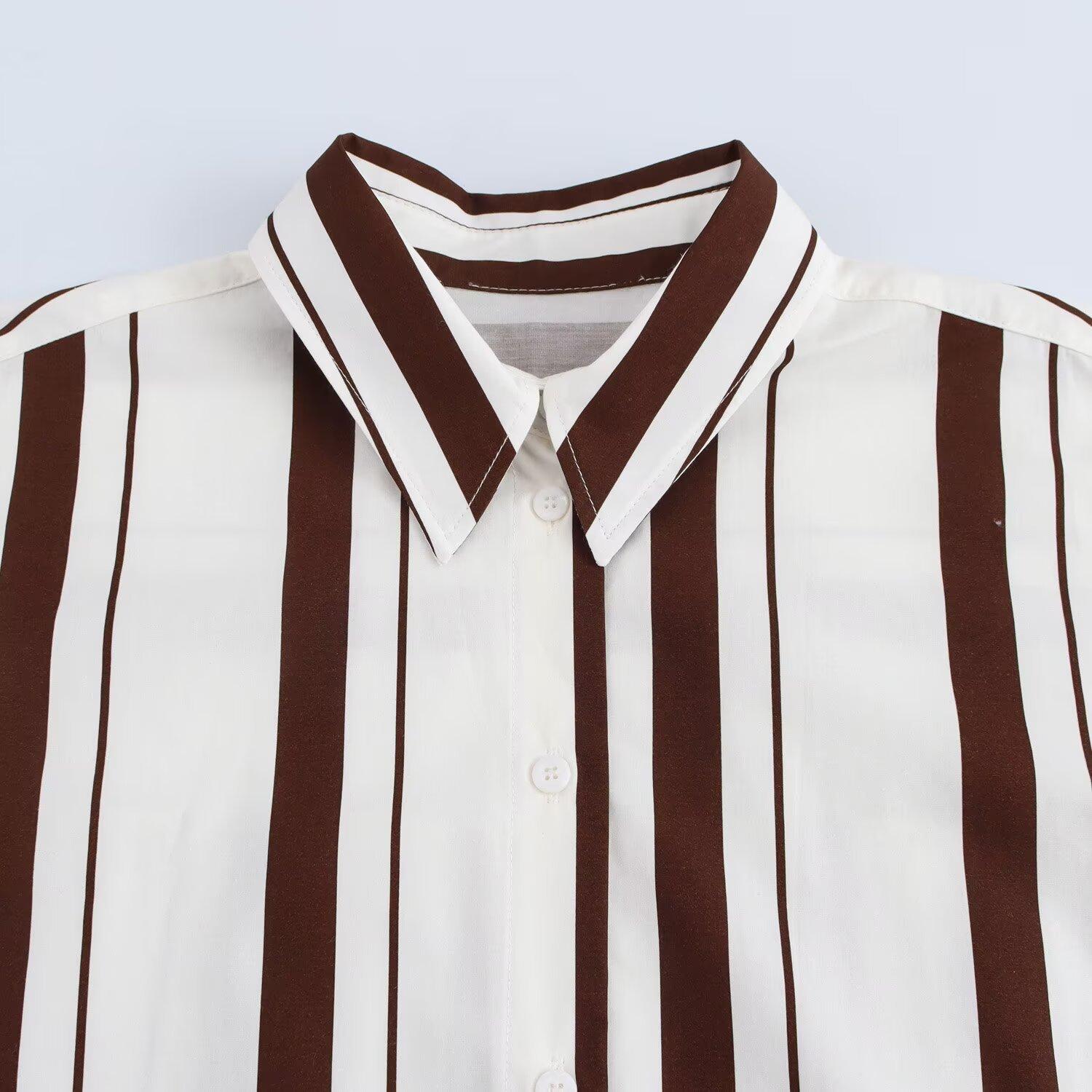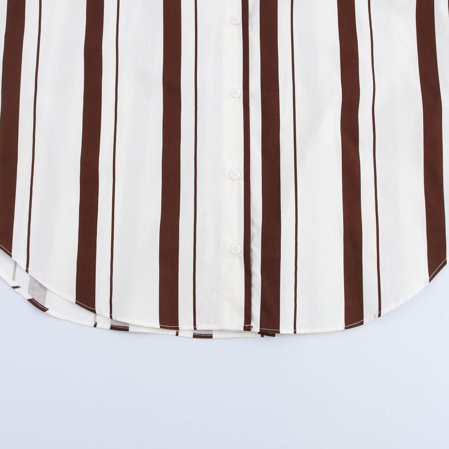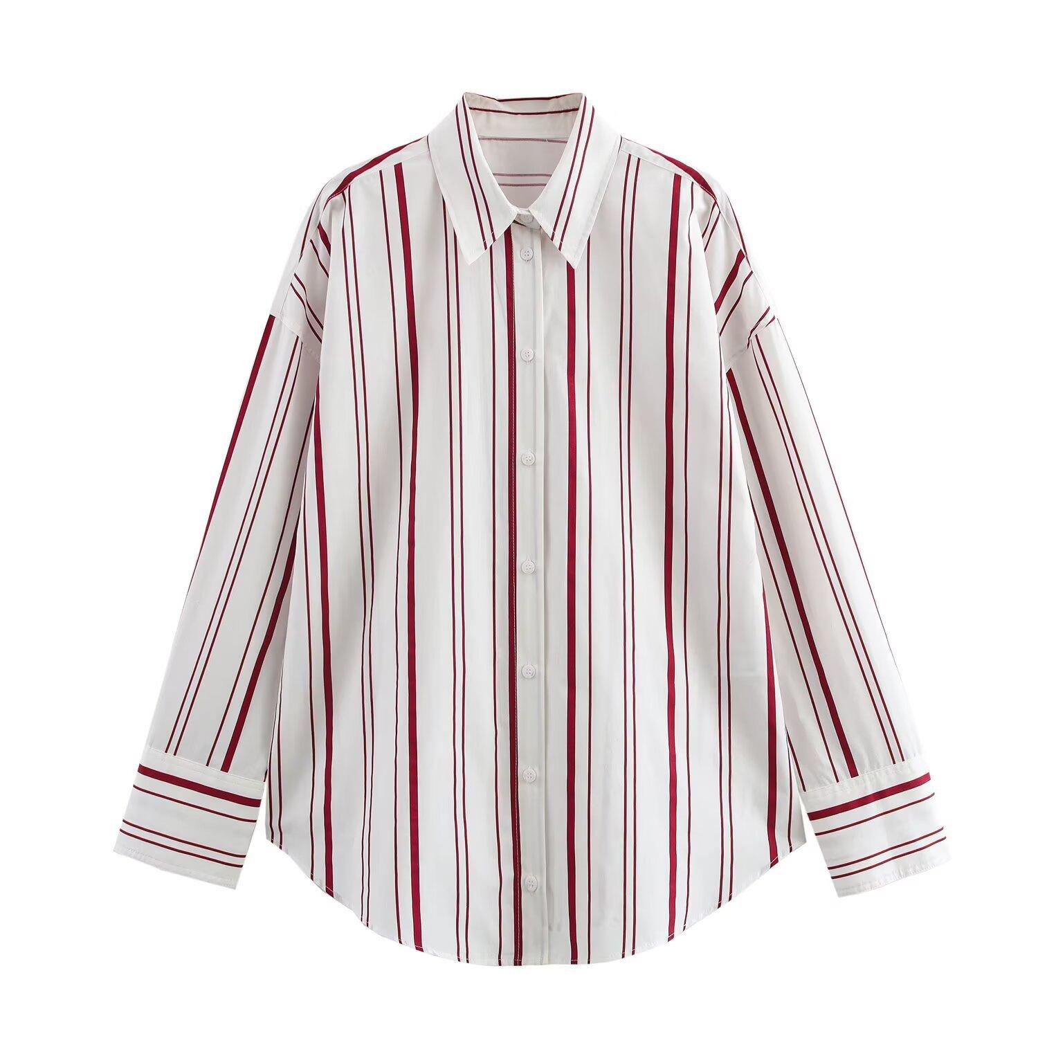 Ropa de mujer de comercio exterior transfronterizo 2025 primavera nueva moda europea y americana camisa popelina a rayas suelta con solapa F611245