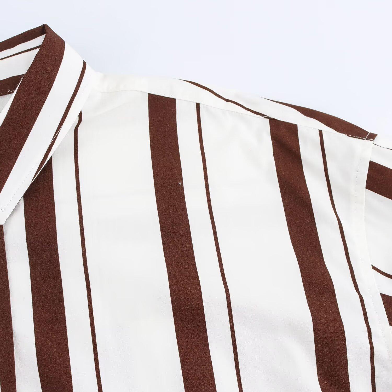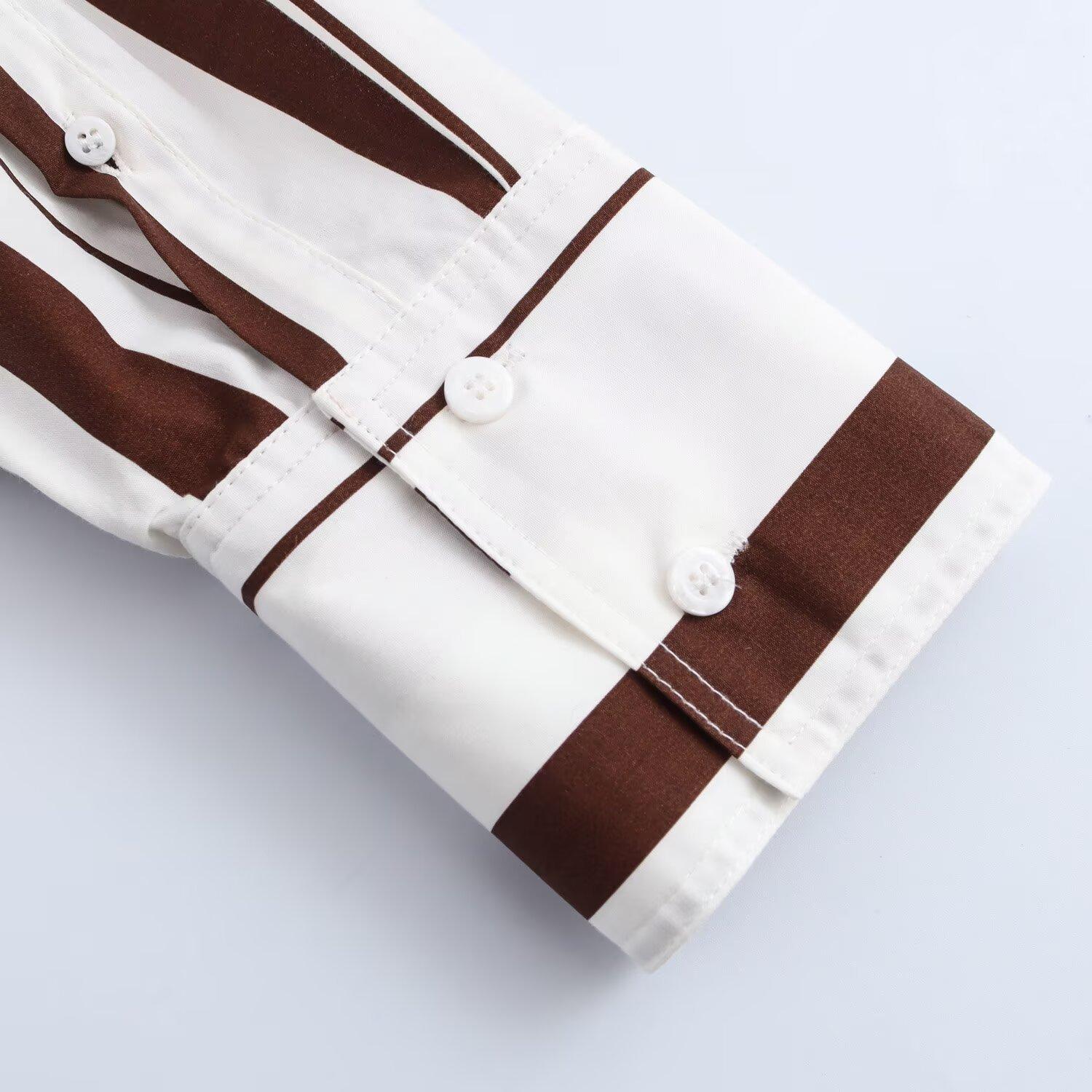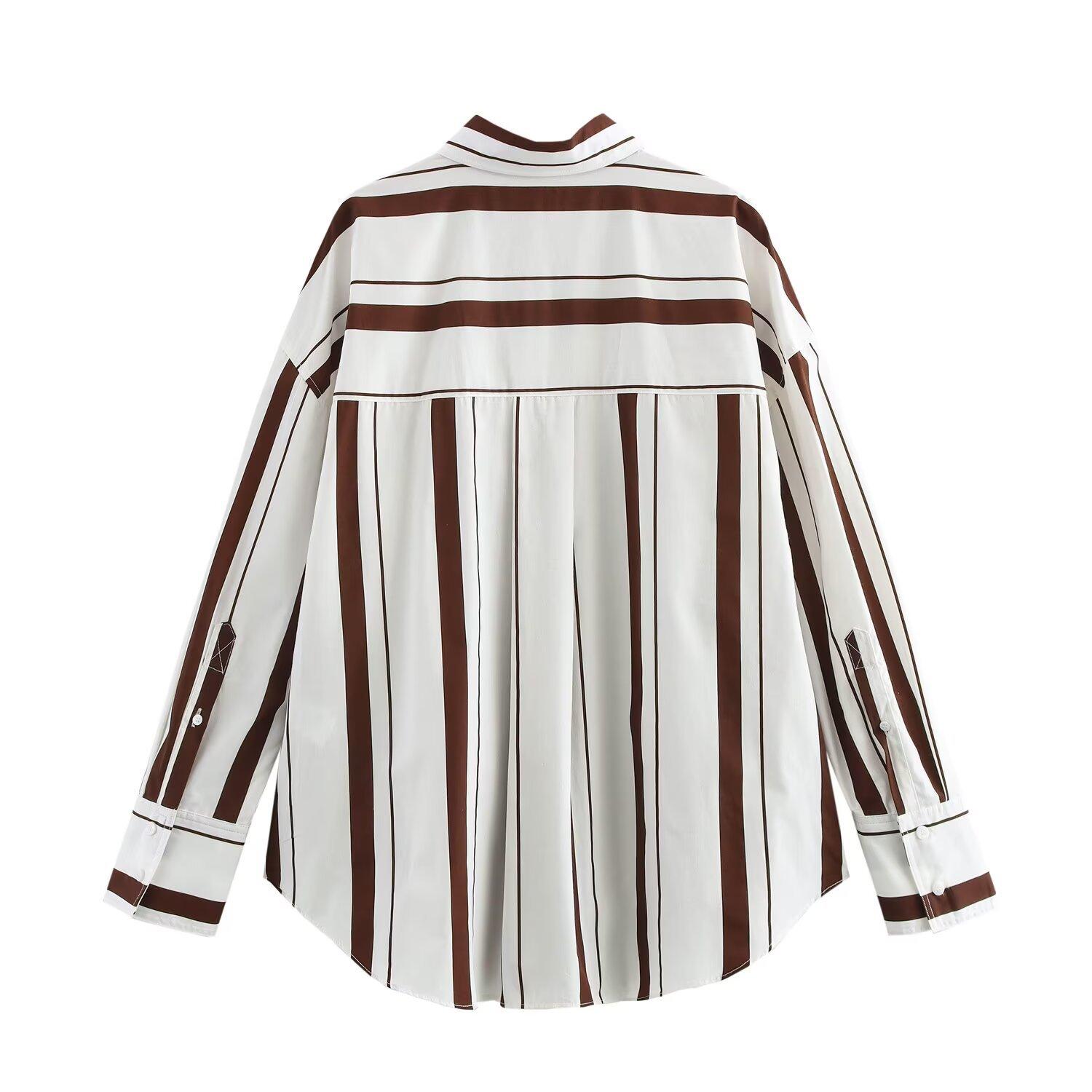 Ropa de mujer de comercio exterior transfronterizo 2025 primavera nueva moda europea y americana camisa popelina a rayas suelta con solapa F611245