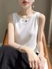 Nuevo Verano Sin Mangas Tejido 2025 Camisa Base Chaleco Camisola Top de Verano para Mujer Blanco