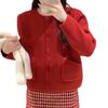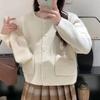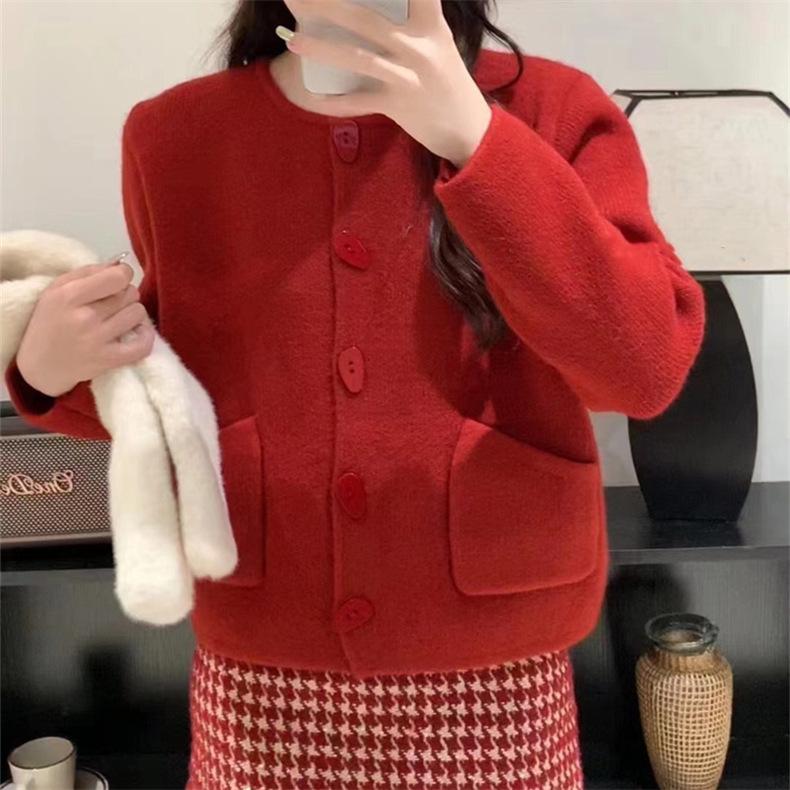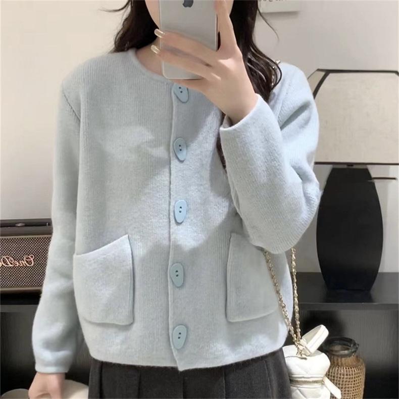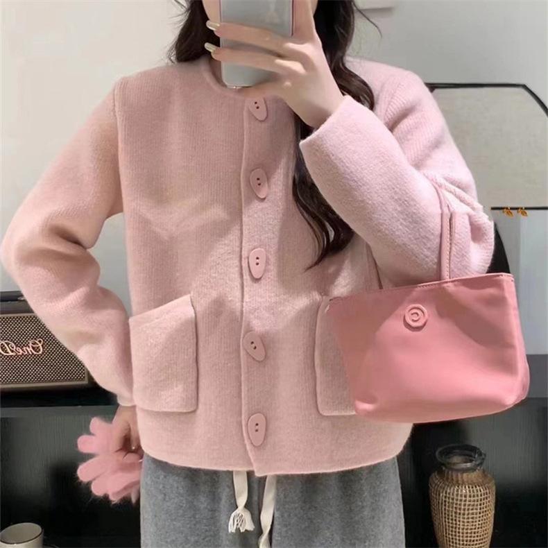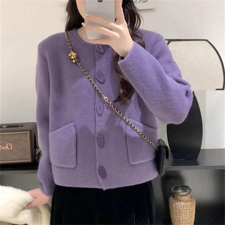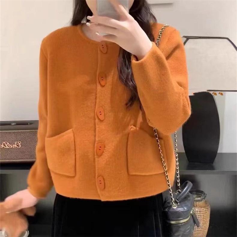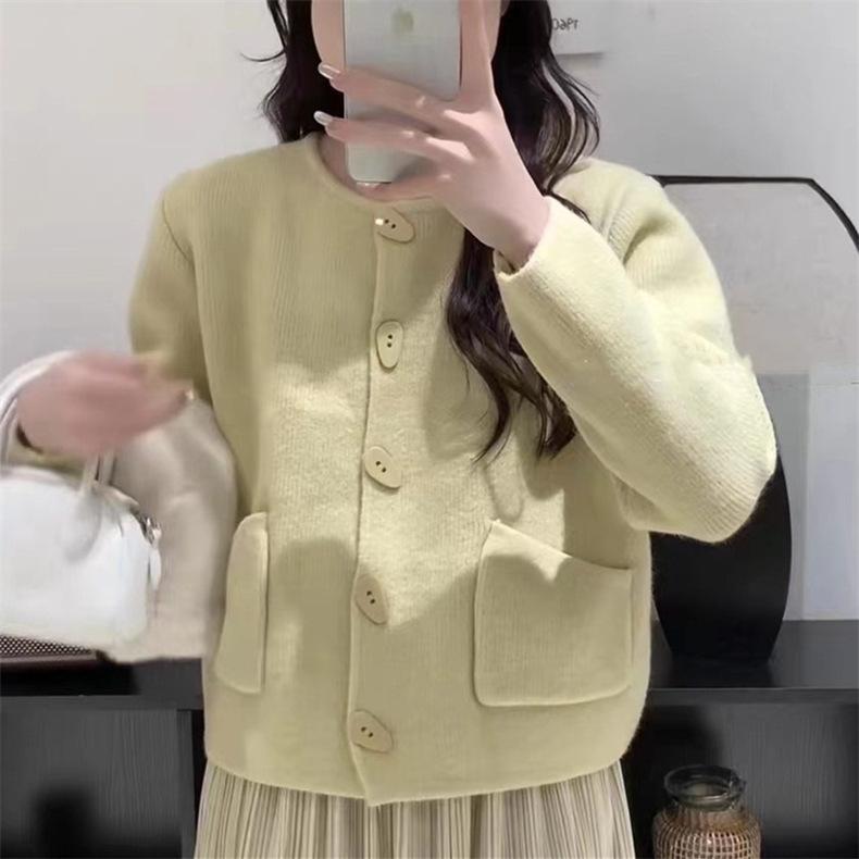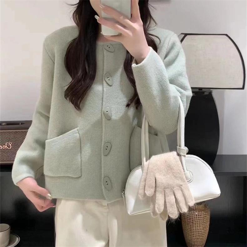 Suéter Pequeño de Color Sólido 2025 para Mujer Otoño e Invierno Estilo Dulce Suelto Cuello Redondo Estilo Chanel Chaqueta Cárdigan Tejida Top