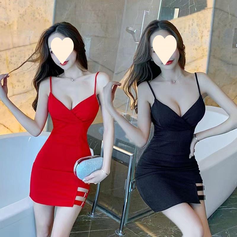 Vestido sexy con tirantes y escote en V para mujer, falda ajustada a la cadera, nuevo estilo, elegante, para discoteca, corte bajo, adelgazante