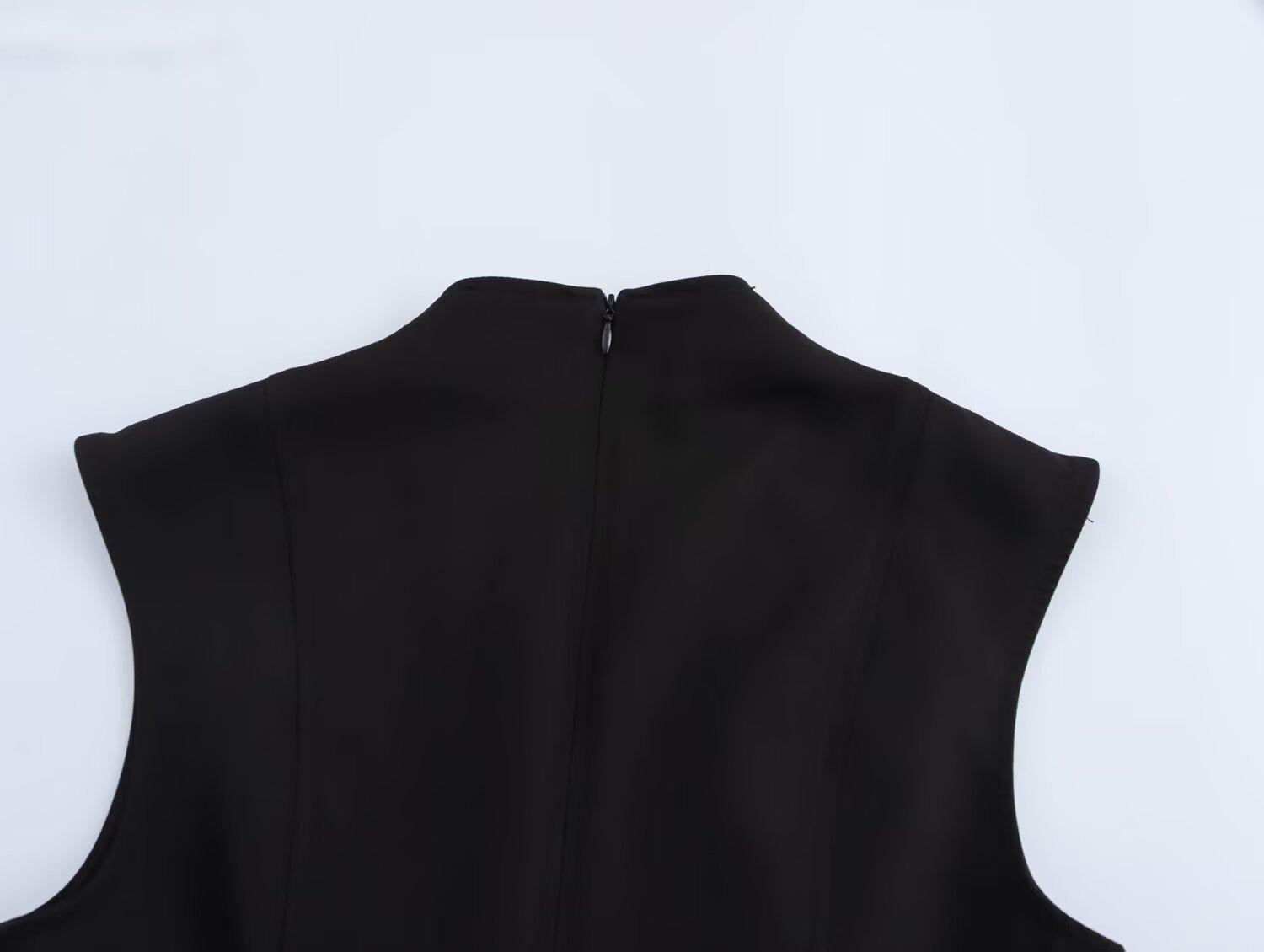 Vestido de crepé con cuello y cintura elegante informal de estilo europeo y americano de verano 2025 para mujer E48760
