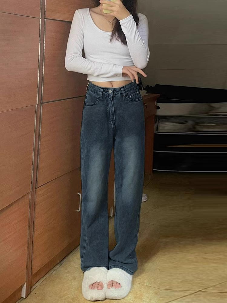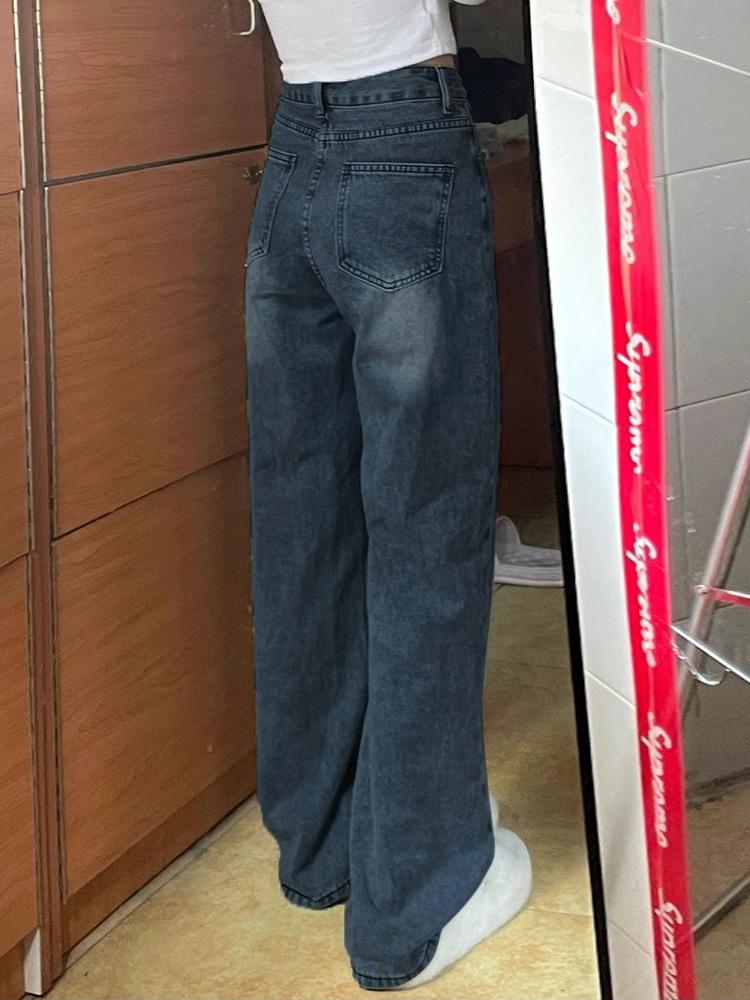 Pantalones vaqueros de pierna ancha estilo americano retro para mujer, de primavera y otoño, con cuerpo en forma de pera, talla grande, para chica gordita, pantalones rectos sueltos y adelgazantes de cintura alta