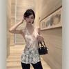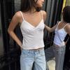 Top corto ajustado con lazo interior de color liso para mujer, estilo americano, estilo Pure Desire, con encaje y tirantes, para verano