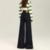 Pantalones vaqueros elásticos azul oscuro para mujer, primavera/otoño 2025, cintura alta, holgados, retro, holgados, para saltar