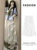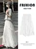 Falda de encaje blanco para mujer, verano 2025, nueva falda de cintura alta con corte A, falda larga, falda irregular tipo pastel