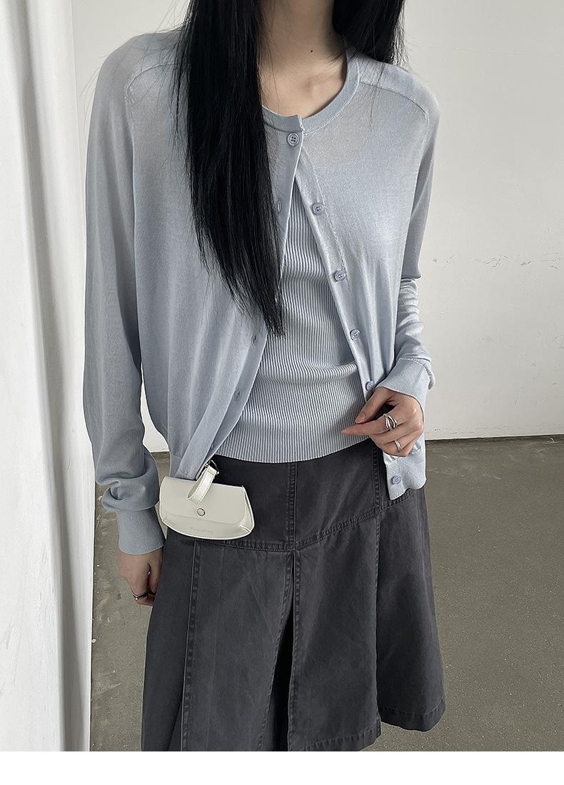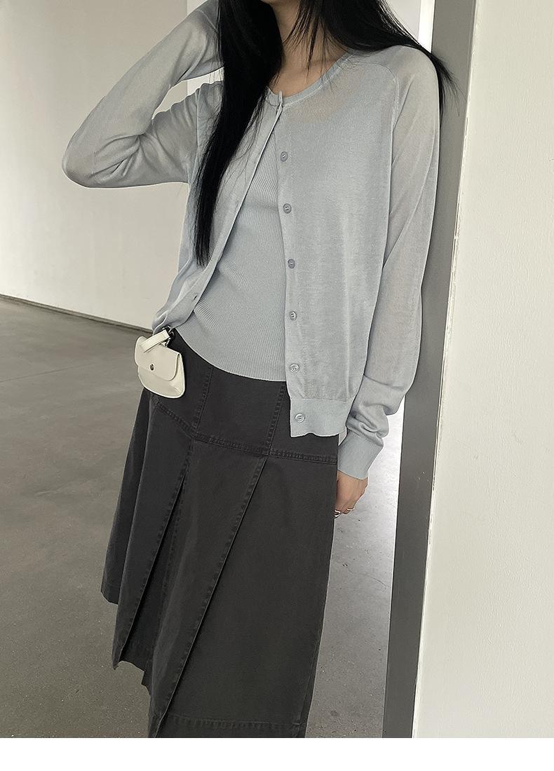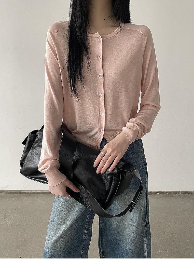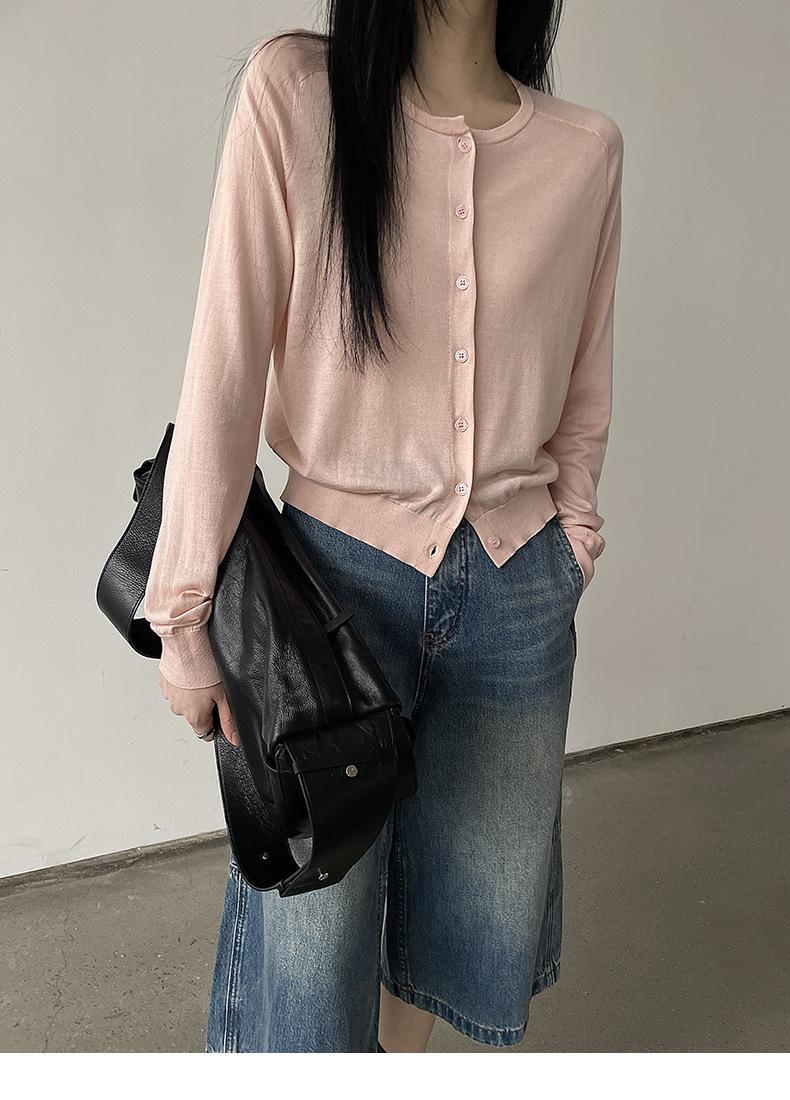 Fanjian 100% Lyocell Cárdigan Camiseta Base para Otoño, Ropa Interior para Mujer, Cuello Redondo, Corte Ajustado, Camiseta de Manga Larga para Mujer