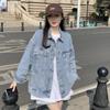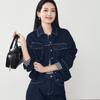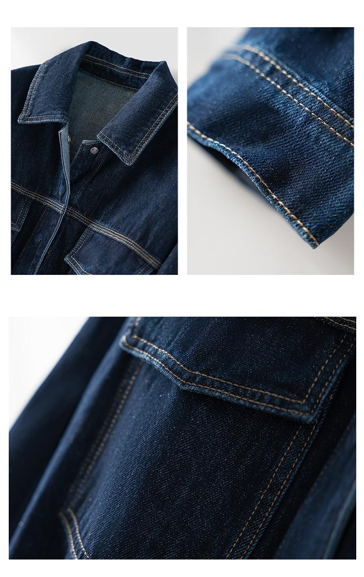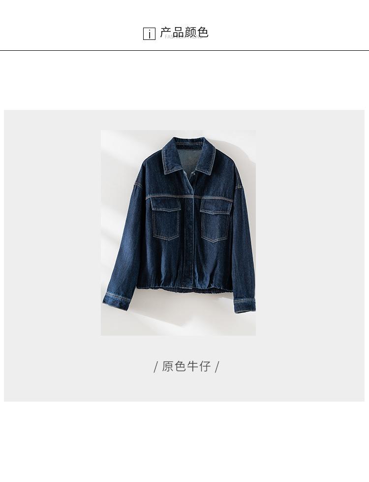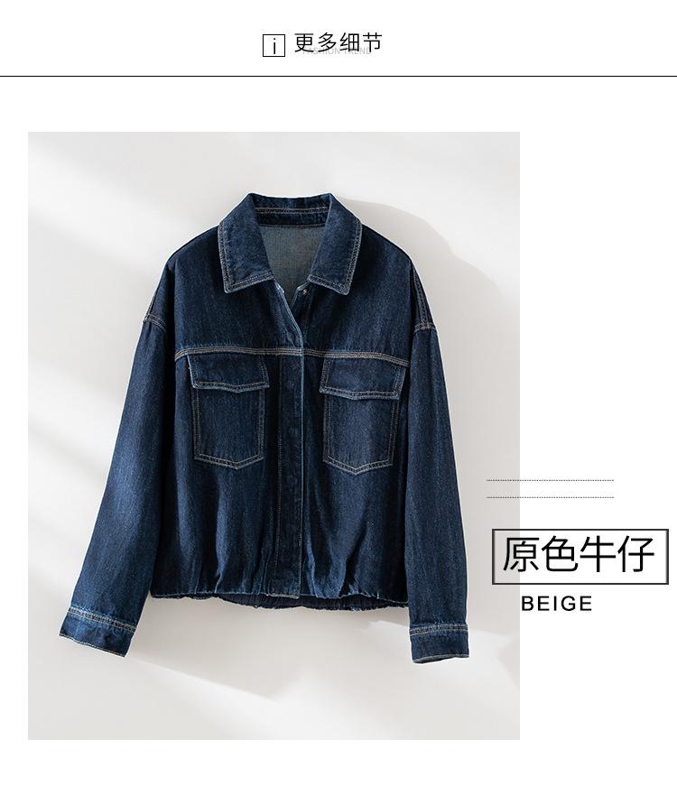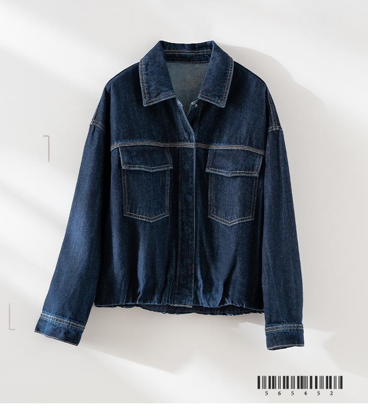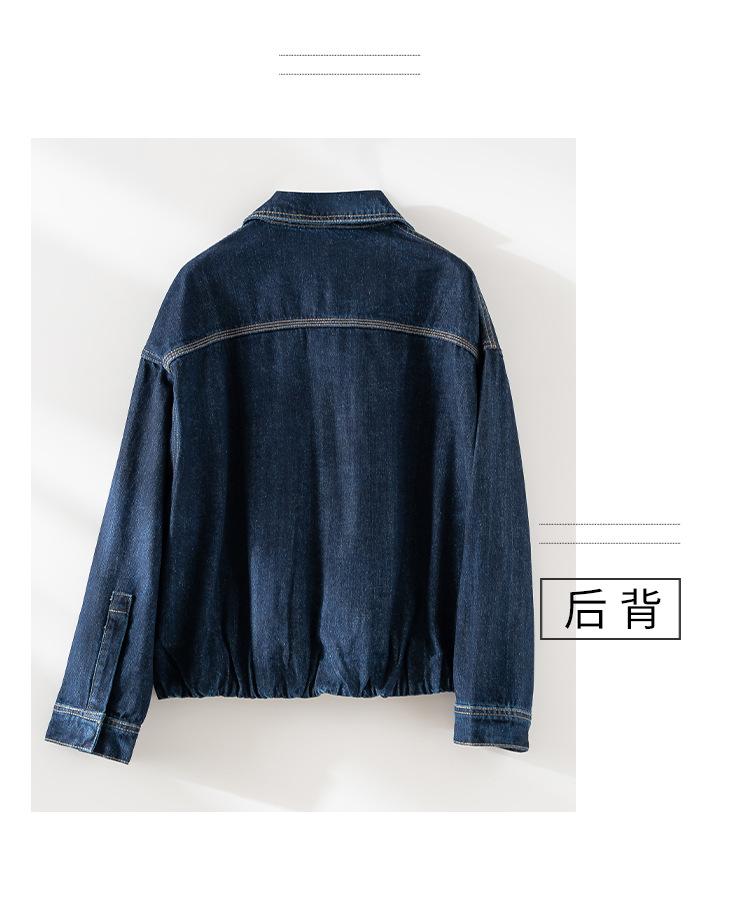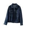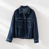 Chaqueta de mezclilla retro nueva de principios de otoño para mujer, moderna estilo coreano petite retro con bolsillo grande y cuello vuelto