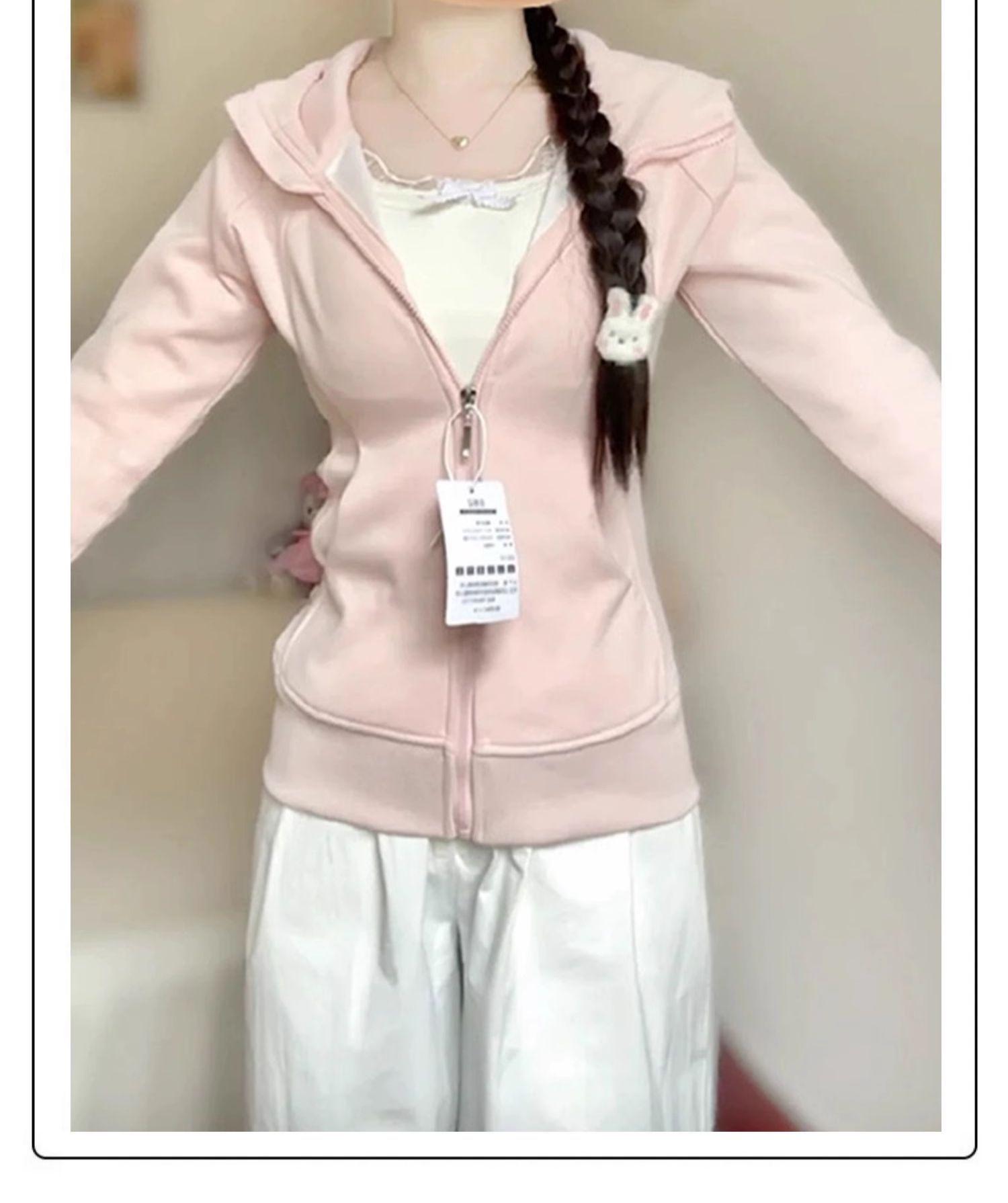 Sudadera ajustada con capucha para mujer, estilo americano High Street Lulu, chaqueta con cremallera, top deportivo, primavera y otoño, 2025