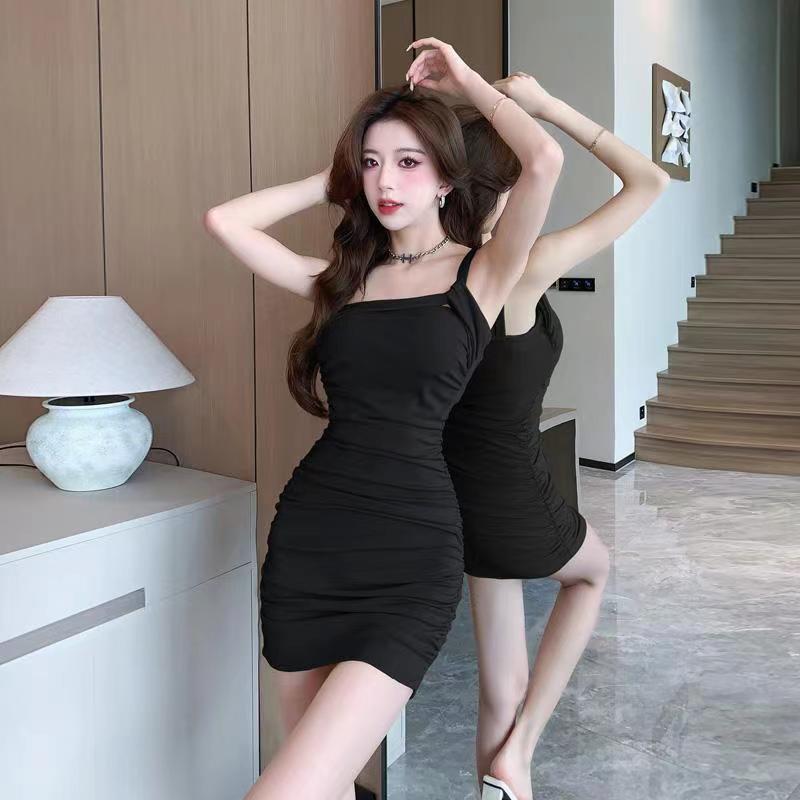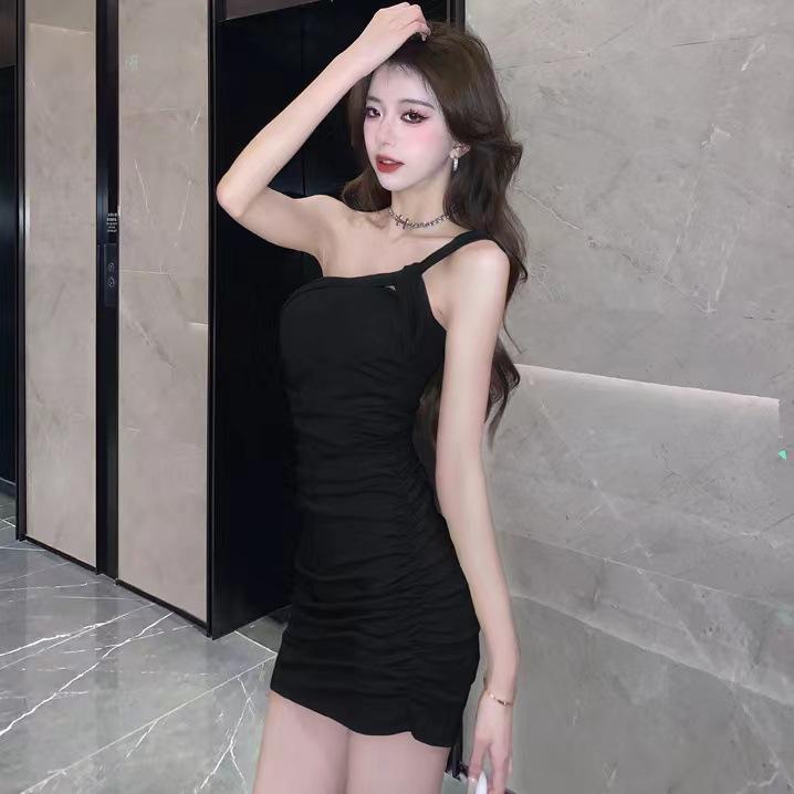 Falda plisada de un solo hombro, sexy y picante, de verano, sin tirantes, que adelgaza la cadera.