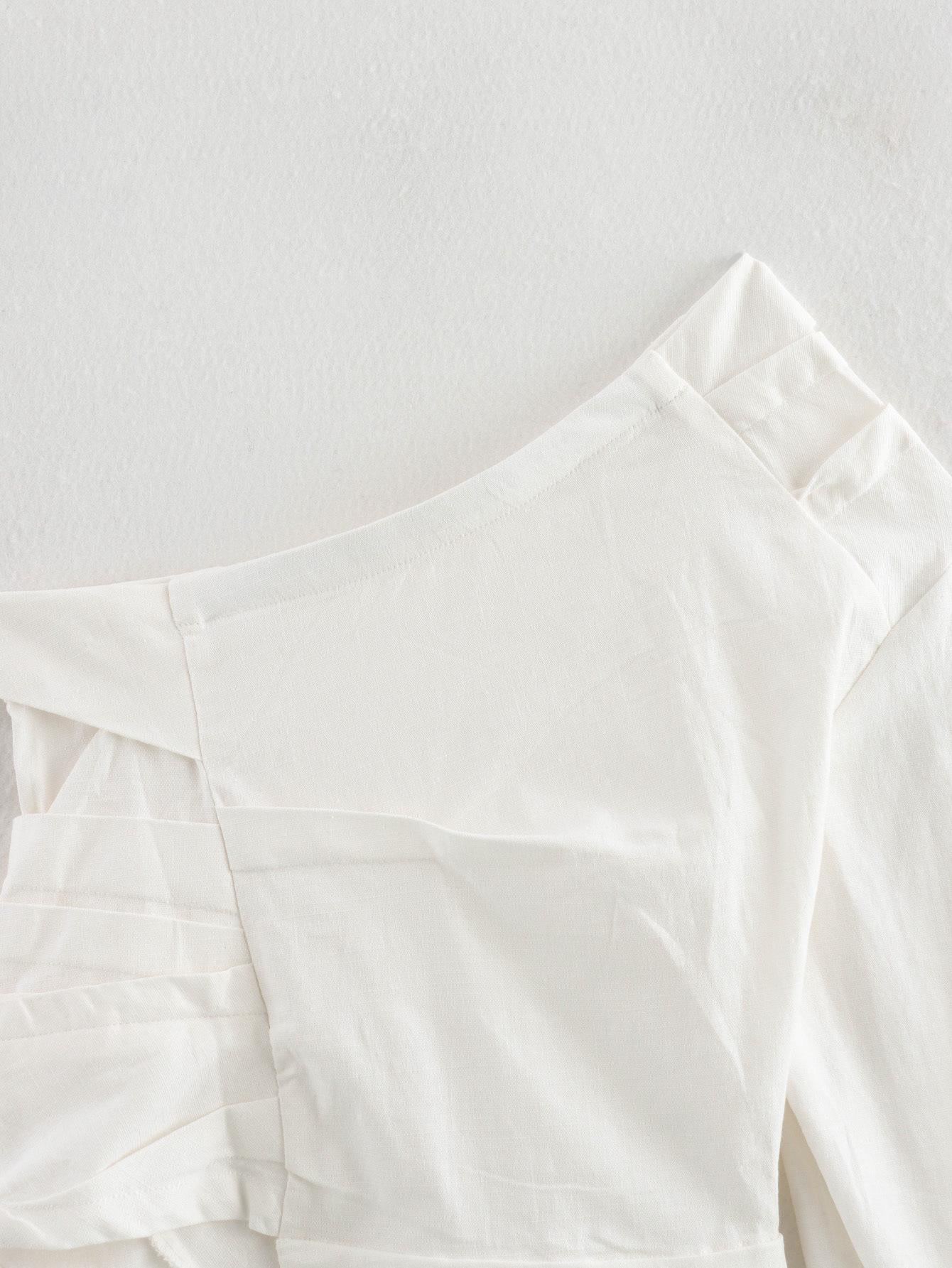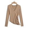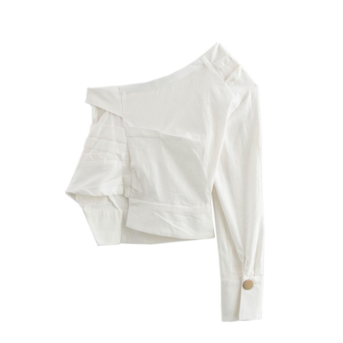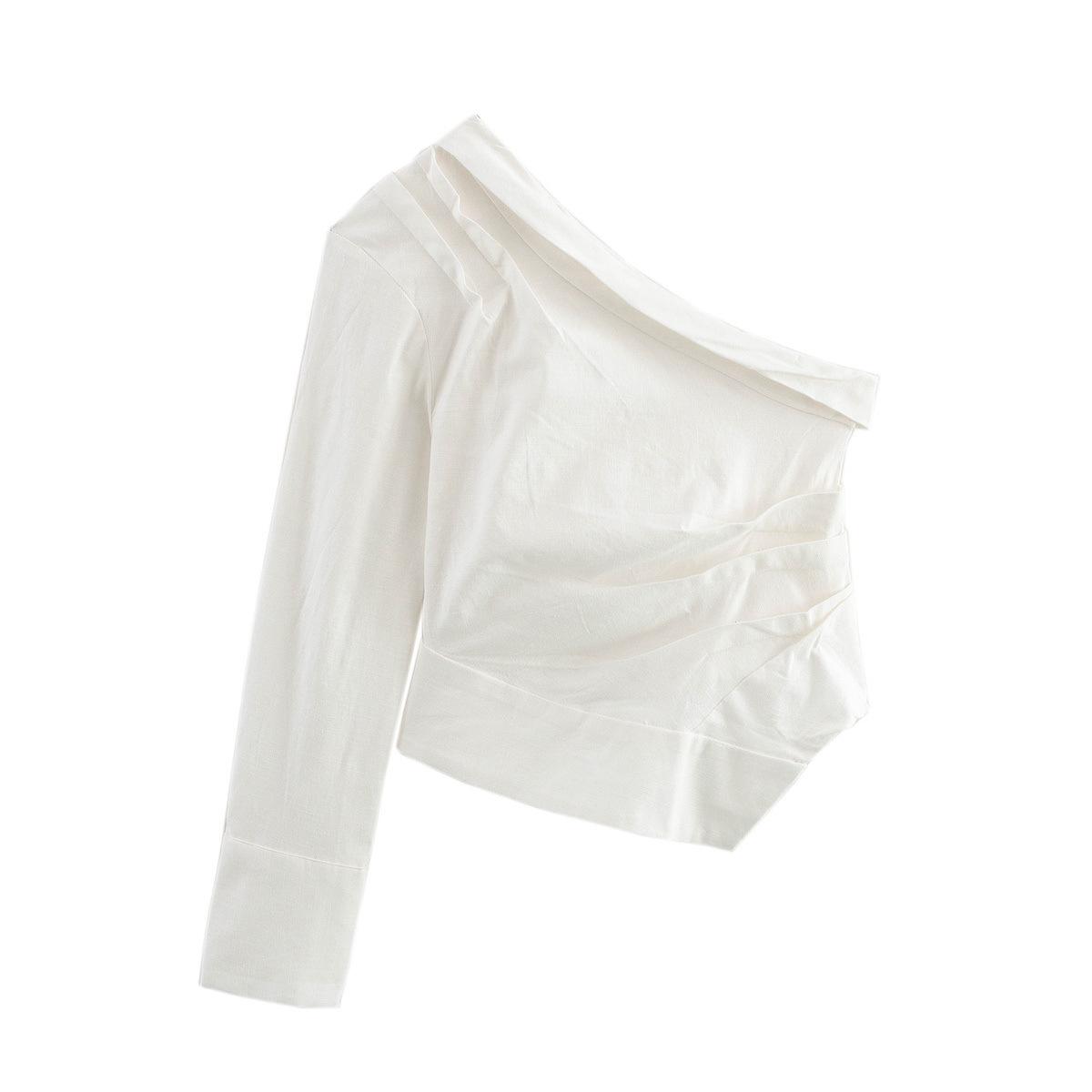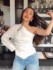 Camiseta Irregular de Verano 2025 para Mujer Europea y Americana Transfronteriza, Sexy, Ajustada, con Hombro Oblicuo y Manga Larga A125005