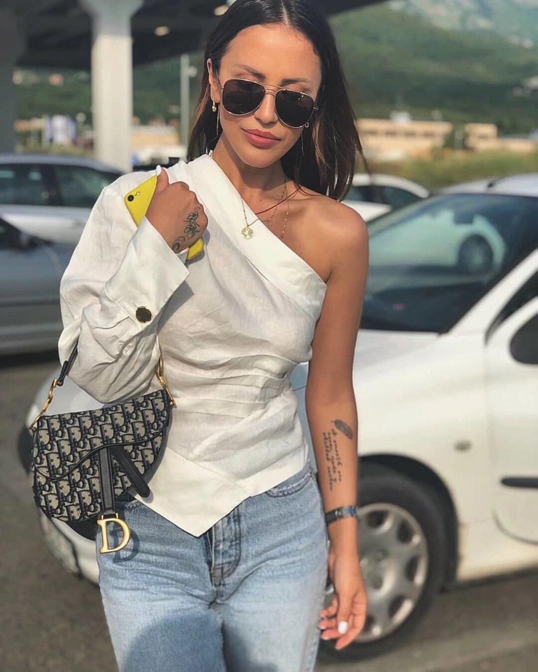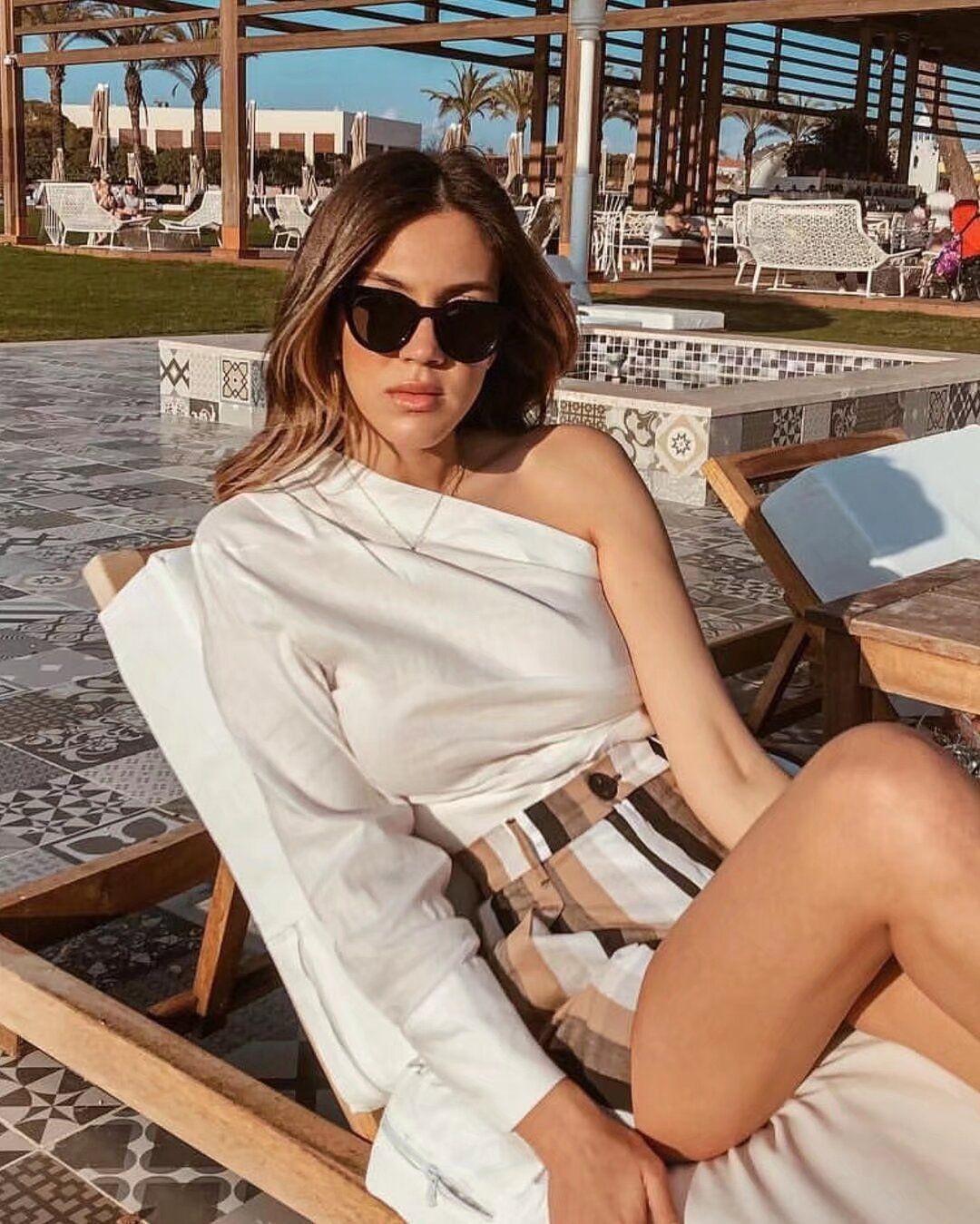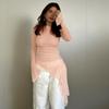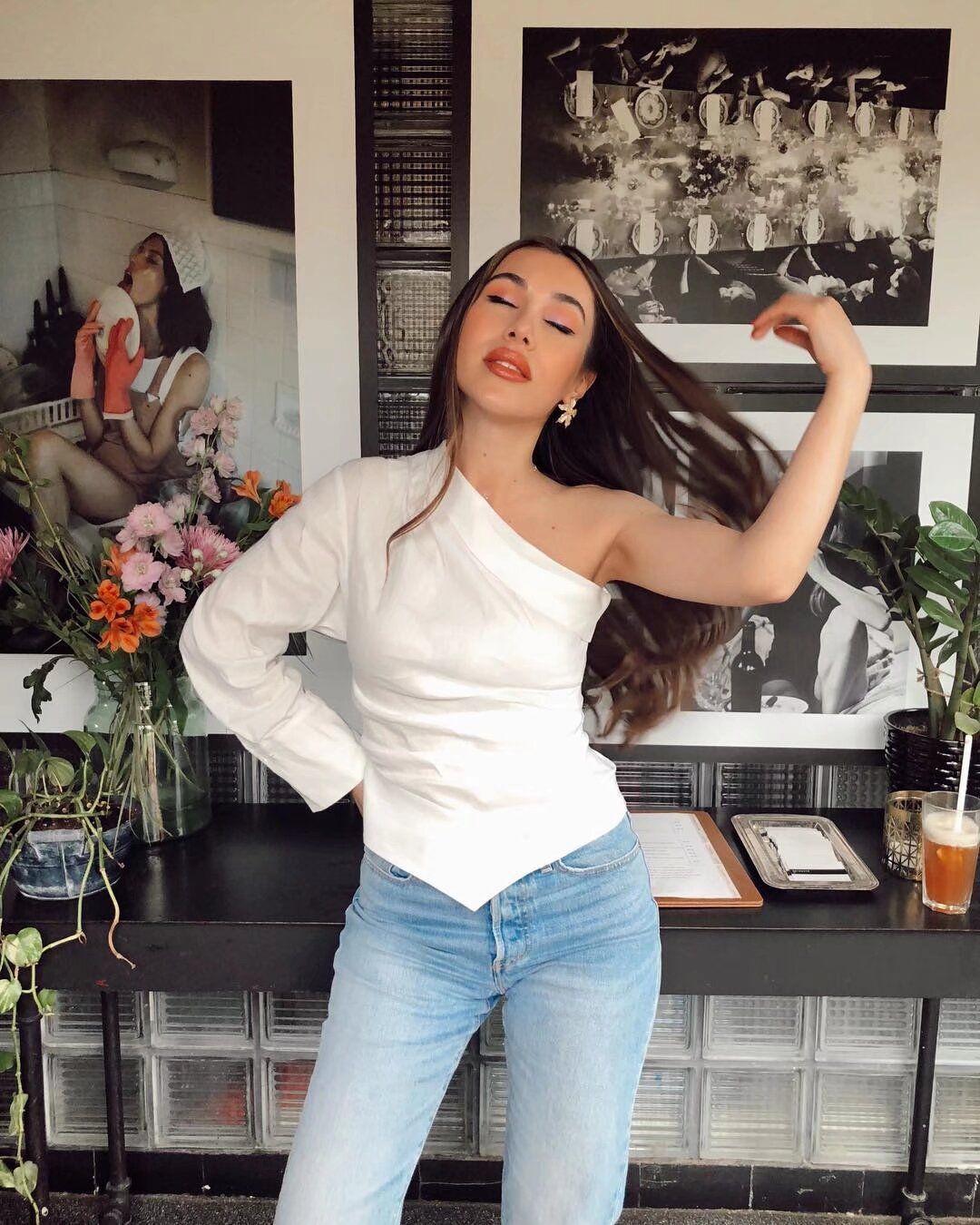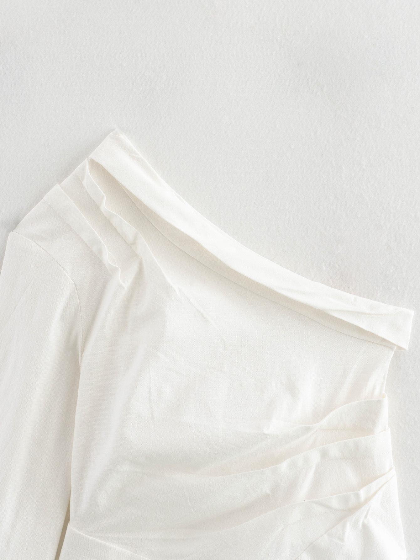 Camiseta Irregular de Verano 2025 para Mujer Europea y Americana Transfronteriza, Sexy, Ajustada, con Hombro Oblicuo y Manga Larga A125005