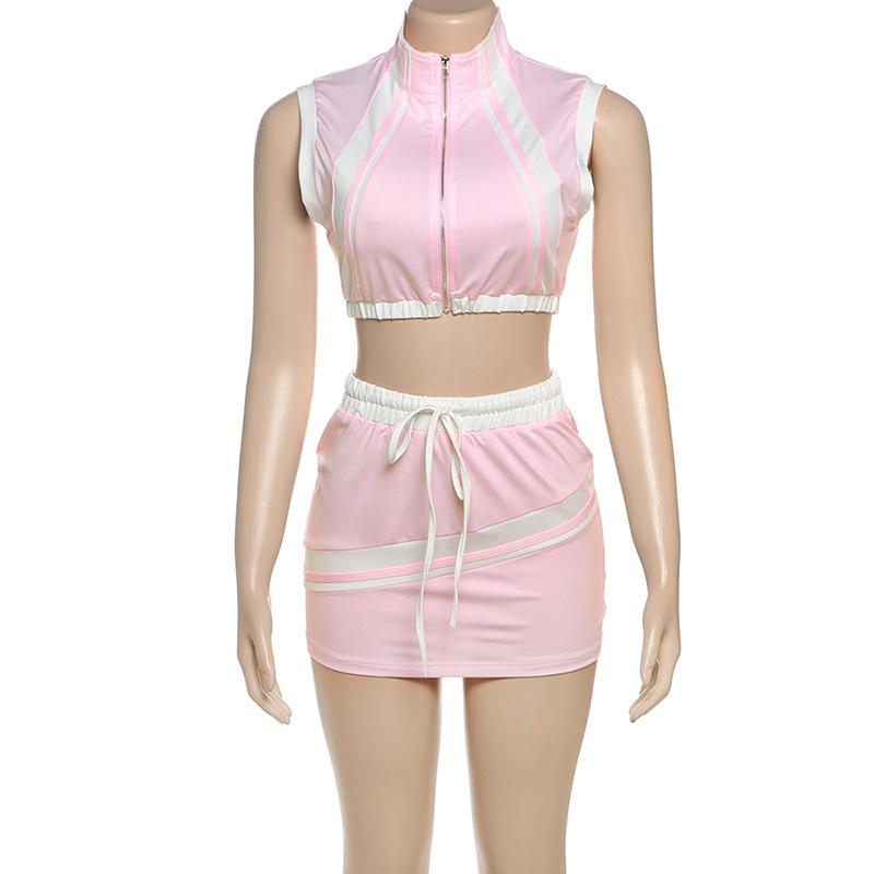 Traje de falda ajustada con cremallera en el ombligo para mujer, estilo europeo y americano transfronterizo, primavera y verano 2025