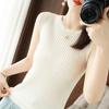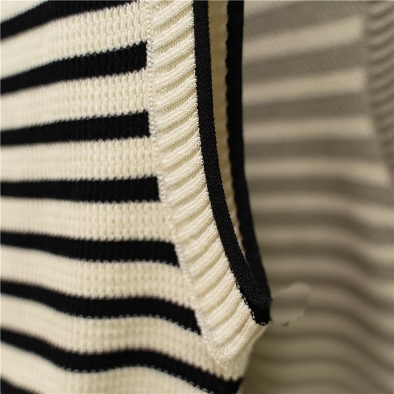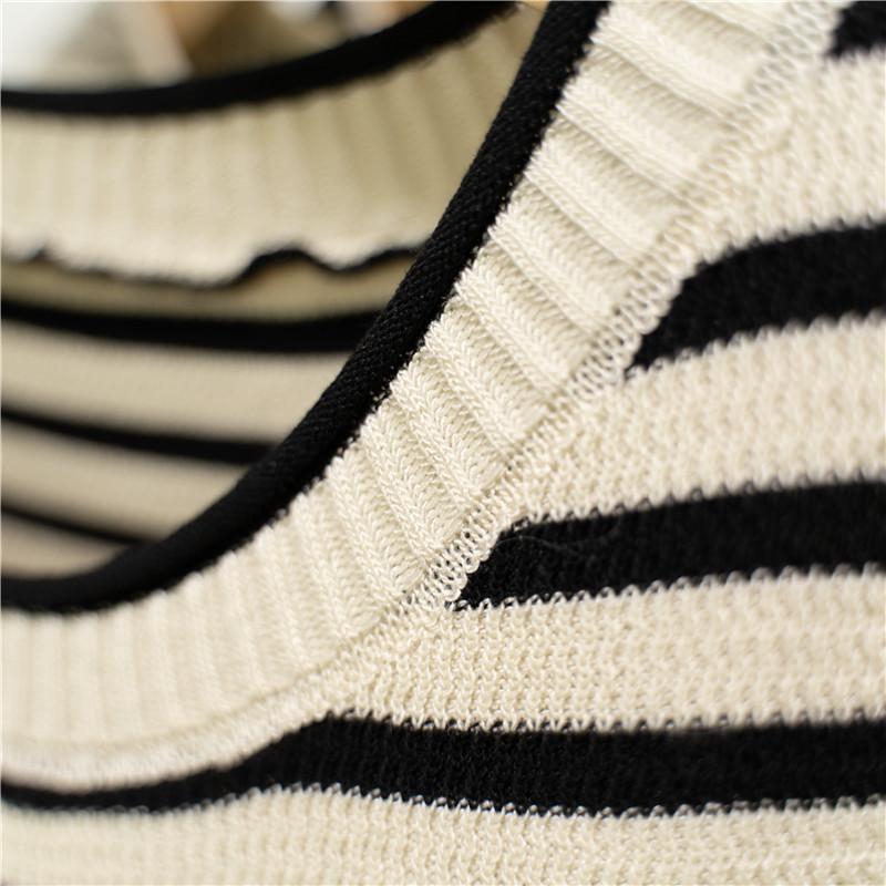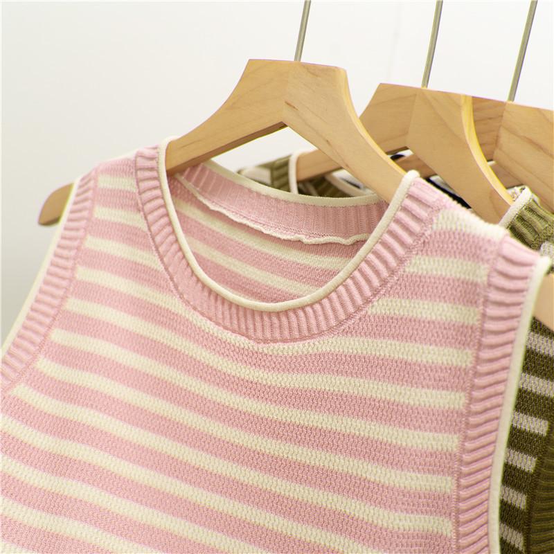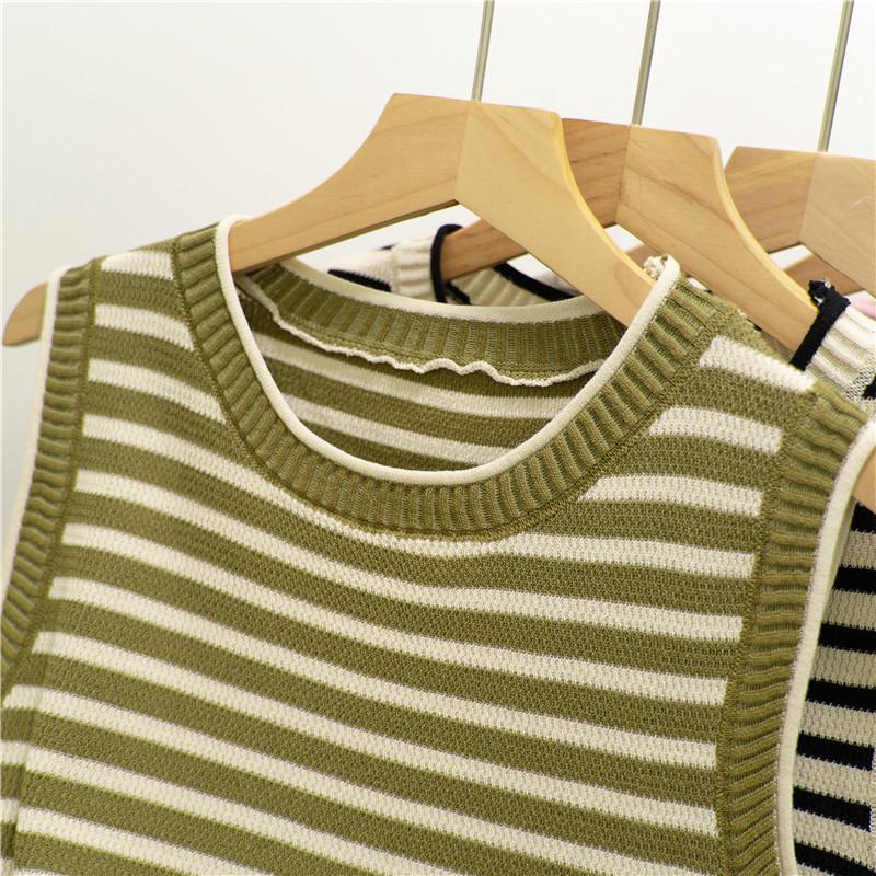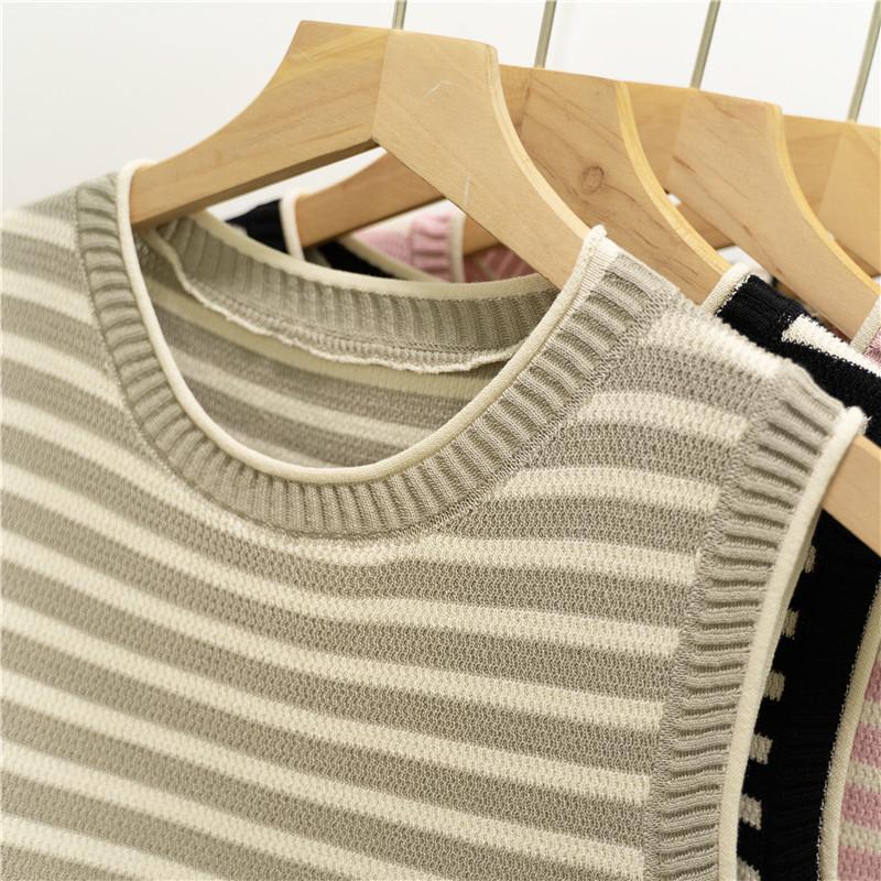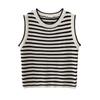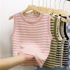 Camisola a rayas de verano para mujer, prenda exterior de cuello redondo, corte entallado, interior adelgazante, corta, sin mangas, de punto de seda helada