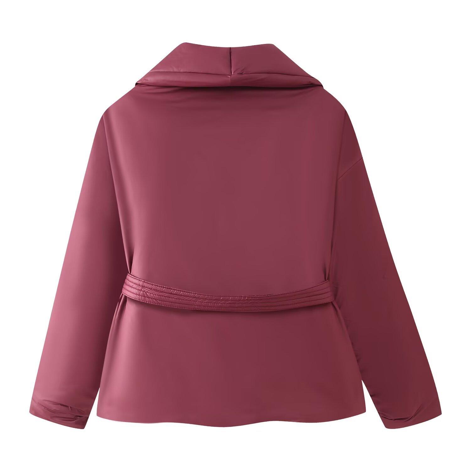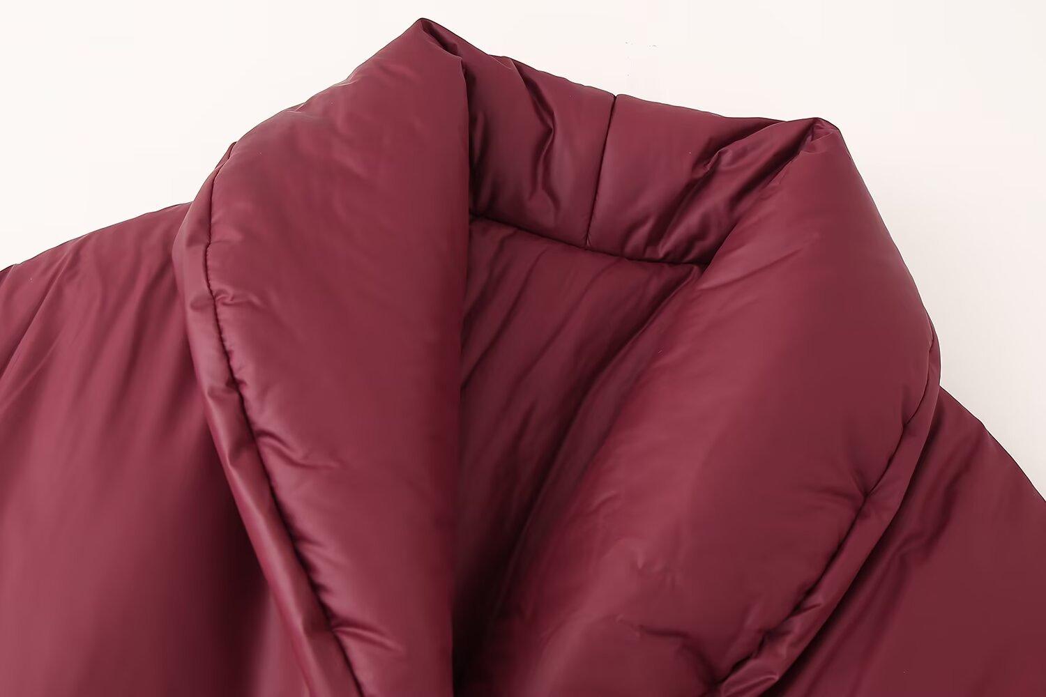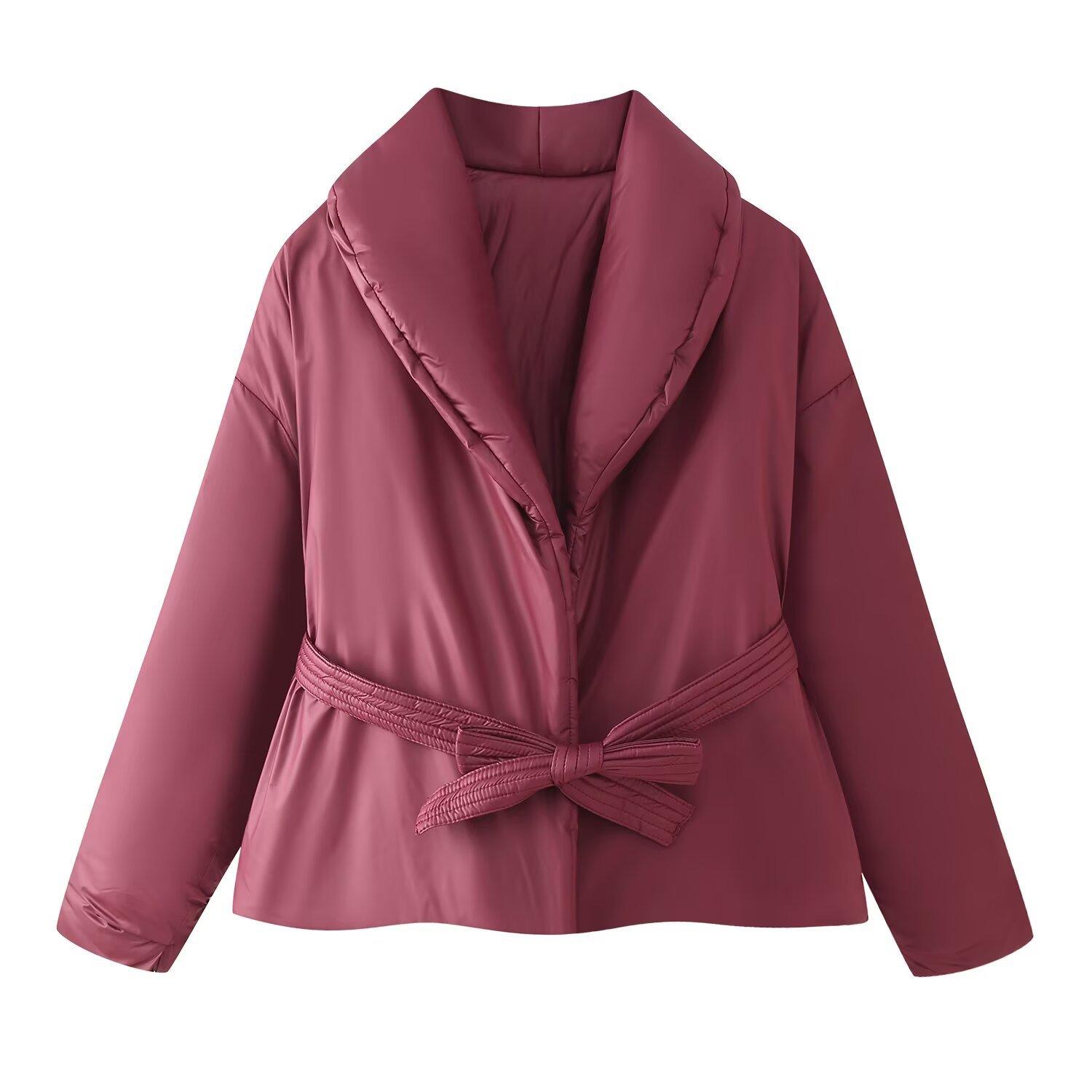 Chaqueta acolchada de algodón de invierno 2025 para mujer, estilo casual, con cordones, color liso, cuello alto, para mujer europea y americana transfronteriza