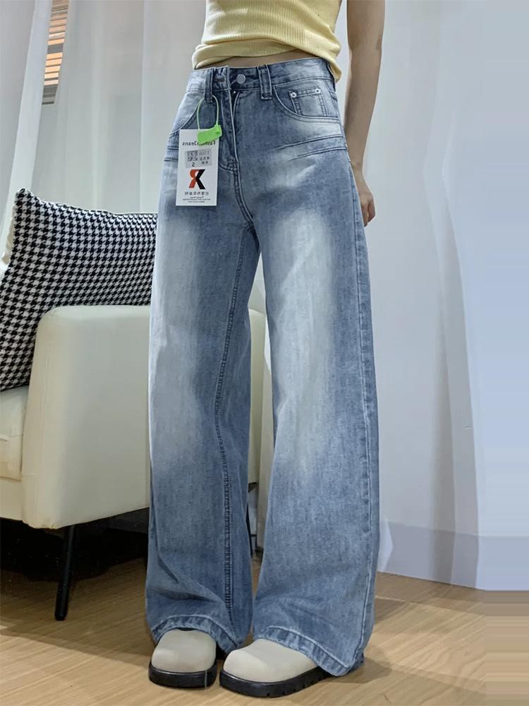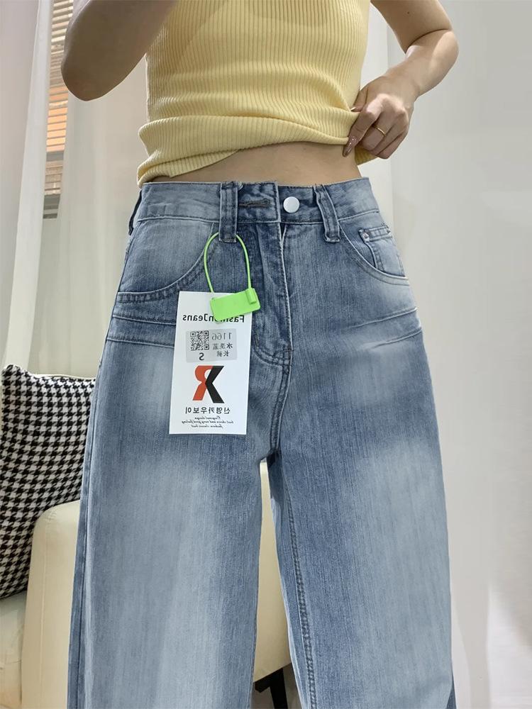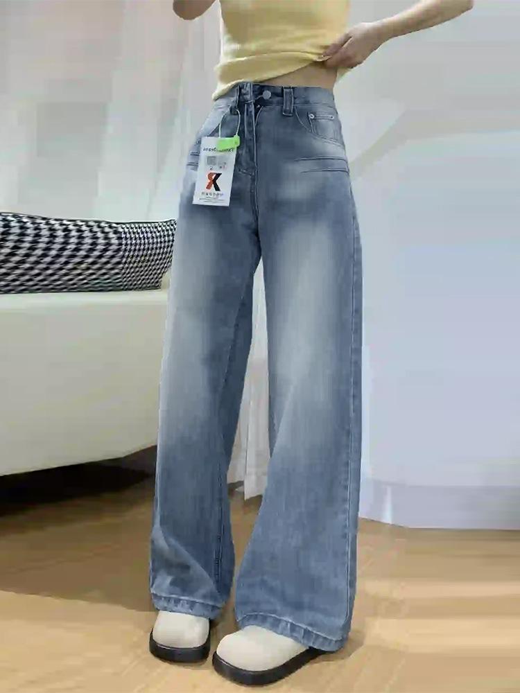 Pantalones vaqueros de pierna ancha con forma de pera para mujer, estilo retro, de cintura alta, ajustados, holgados, de pierna recta, para tallas grandes, para chicas gorditas.