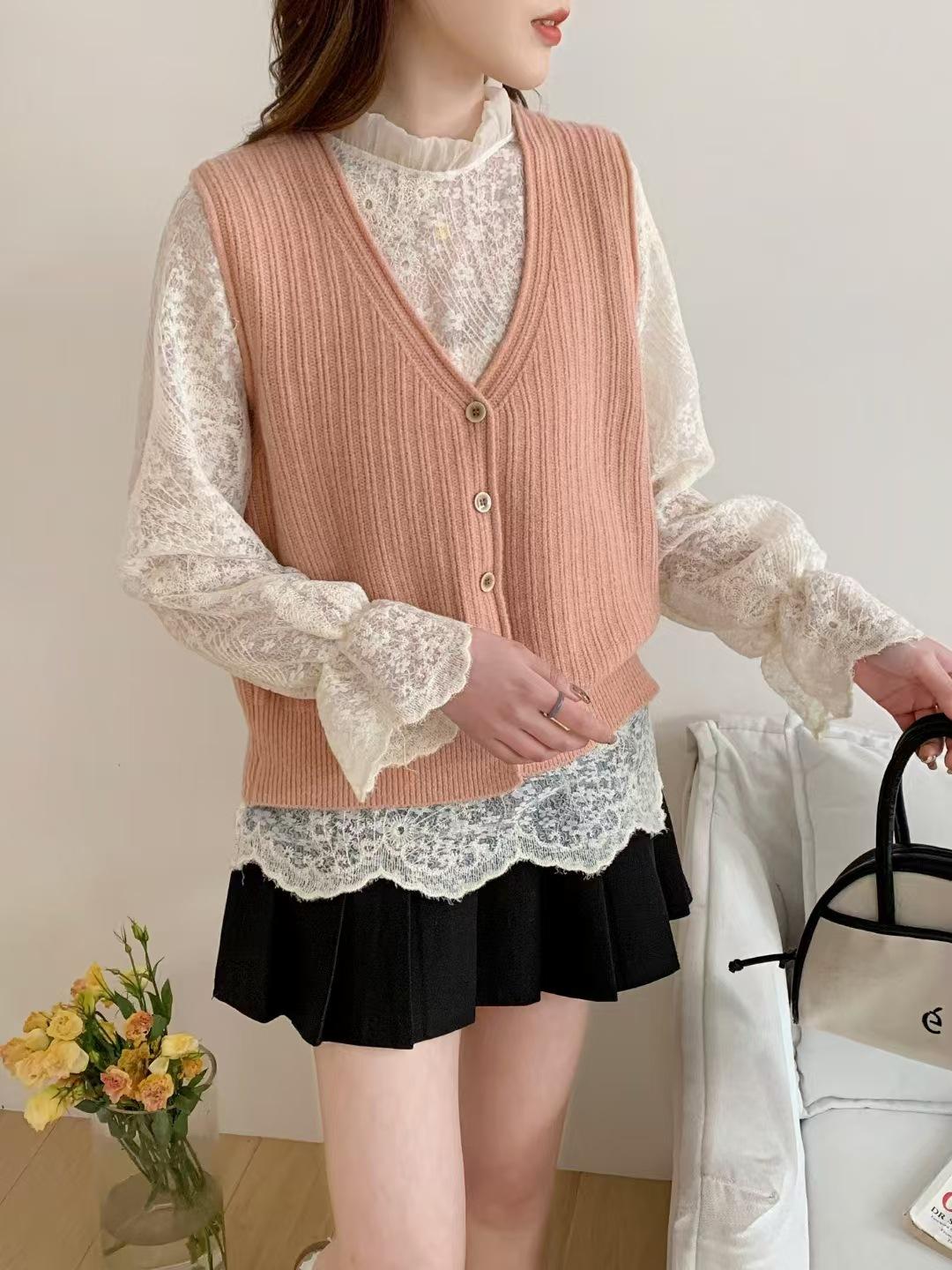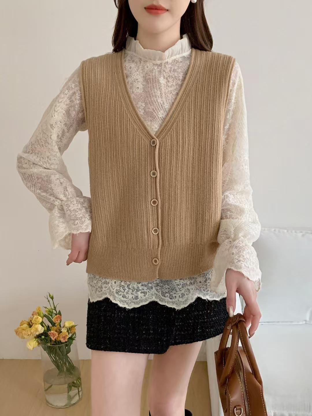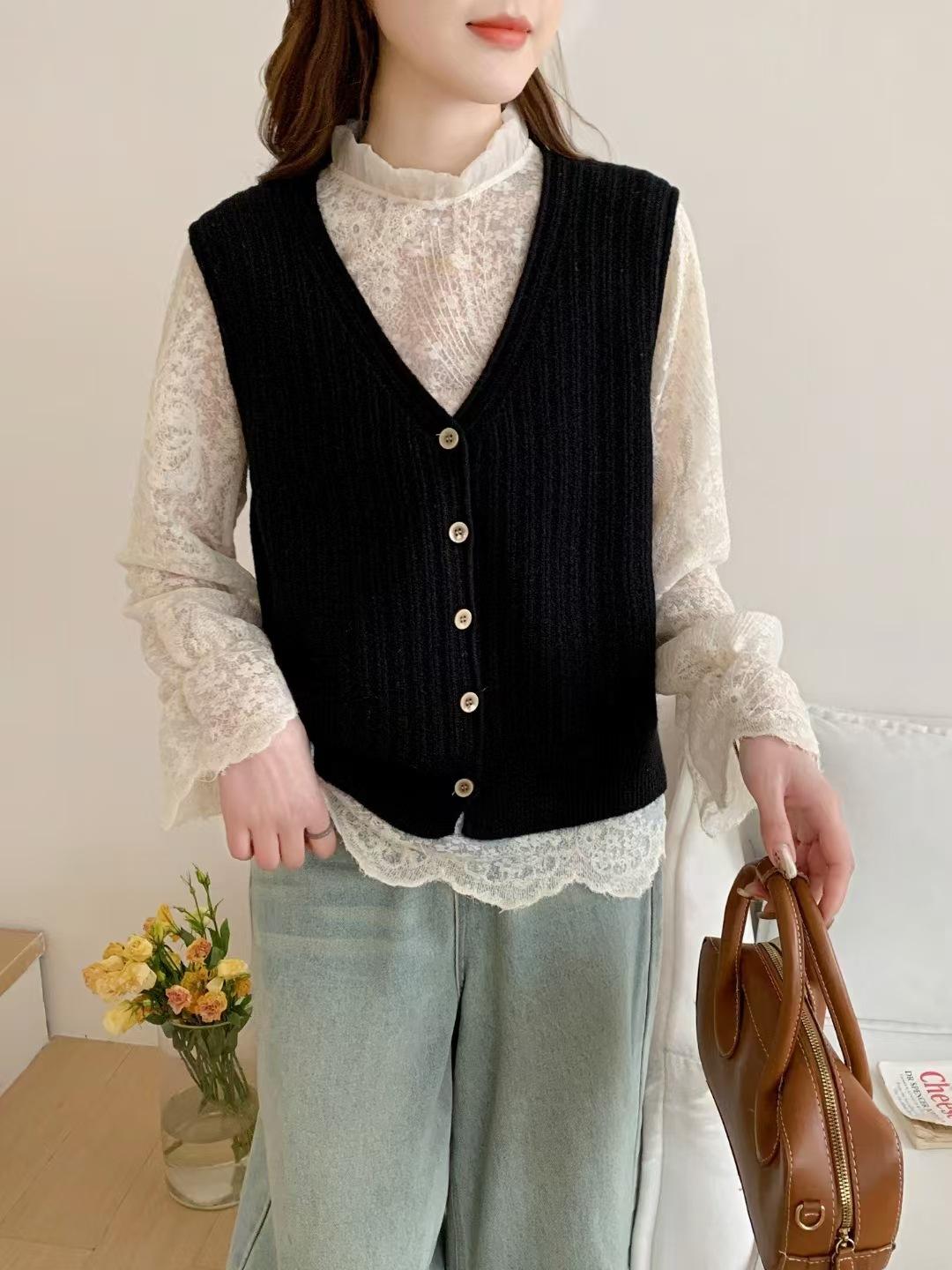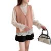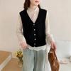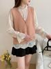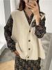 Chaleco de punto con cuello en V estilo retro francés para mujer, cárdigan de otoño e invierno, sin mangas, suave y encerado, estilo literario