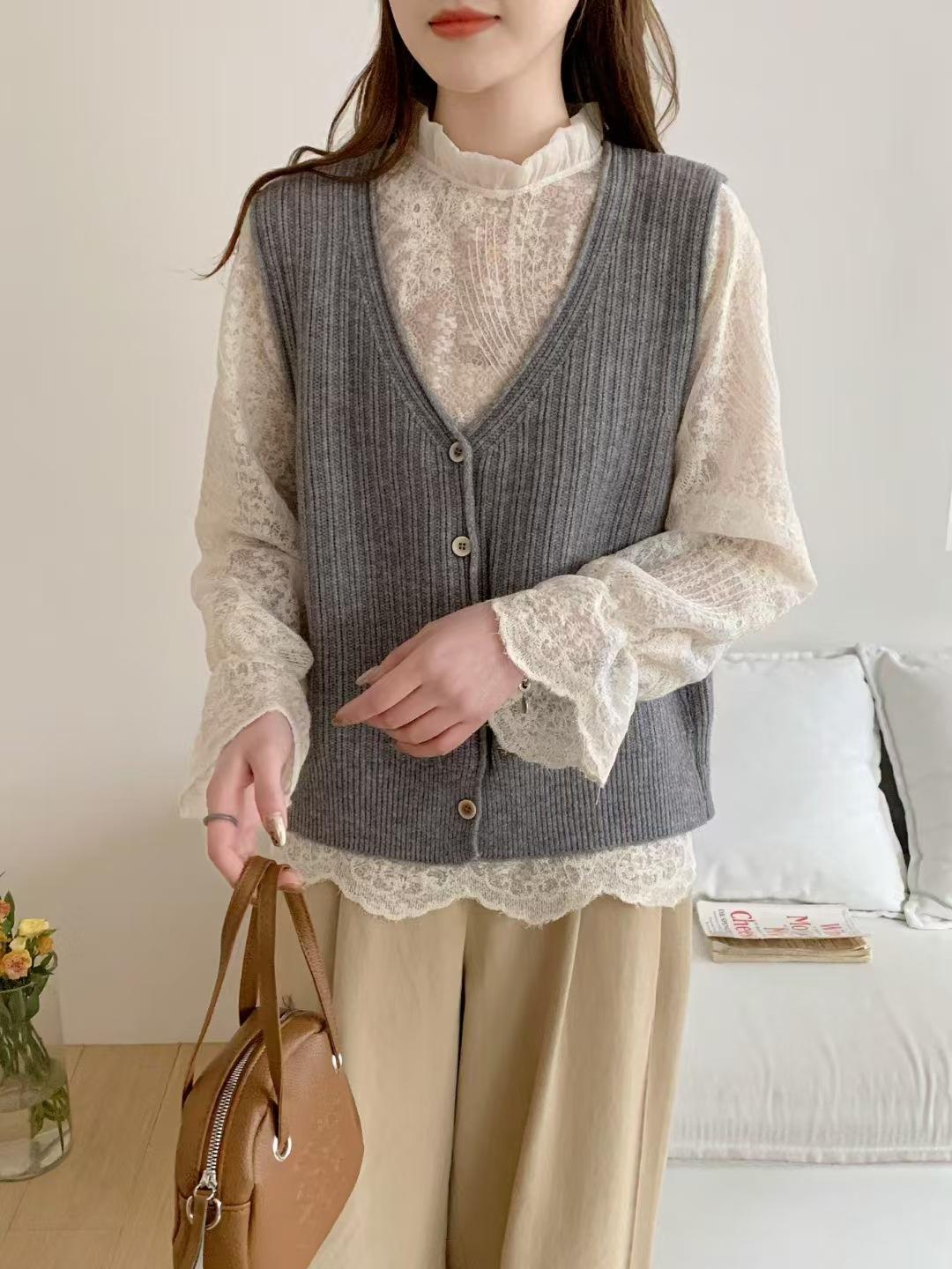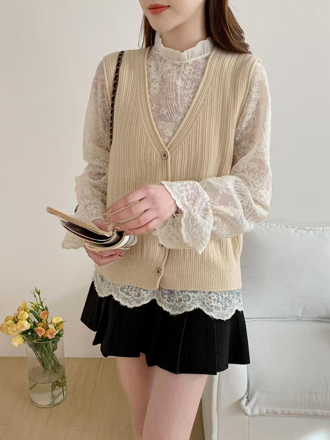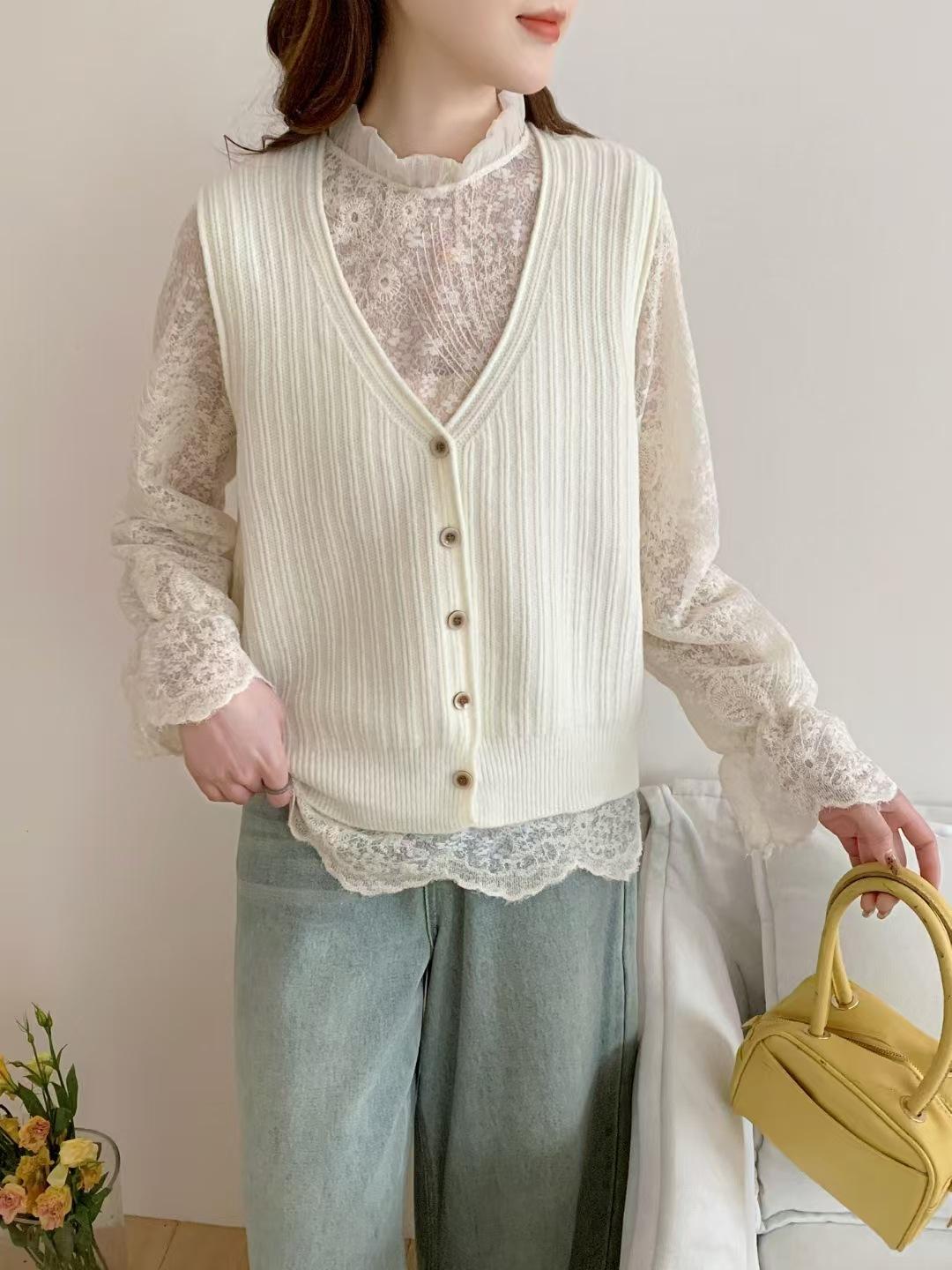Chaleco de punto con cuello en V estilo retro francés para mujer, cárdigan de otoño e invierno, sin mangas, suave y encerado, estilo literario