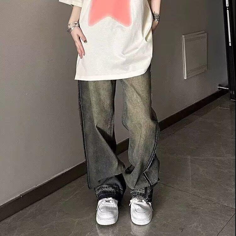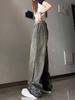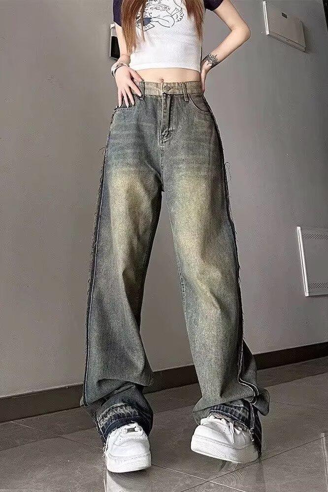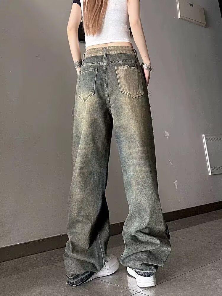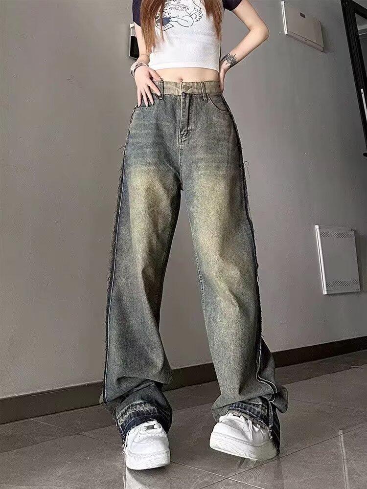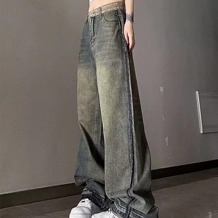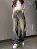 Pantalones vaqueros desgastados vintage para mujer, primavera y otoño 2024, nuevo diseño, cintura alta, adelgazantes, sueltos, rectos, de pierna ancha