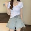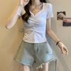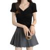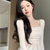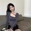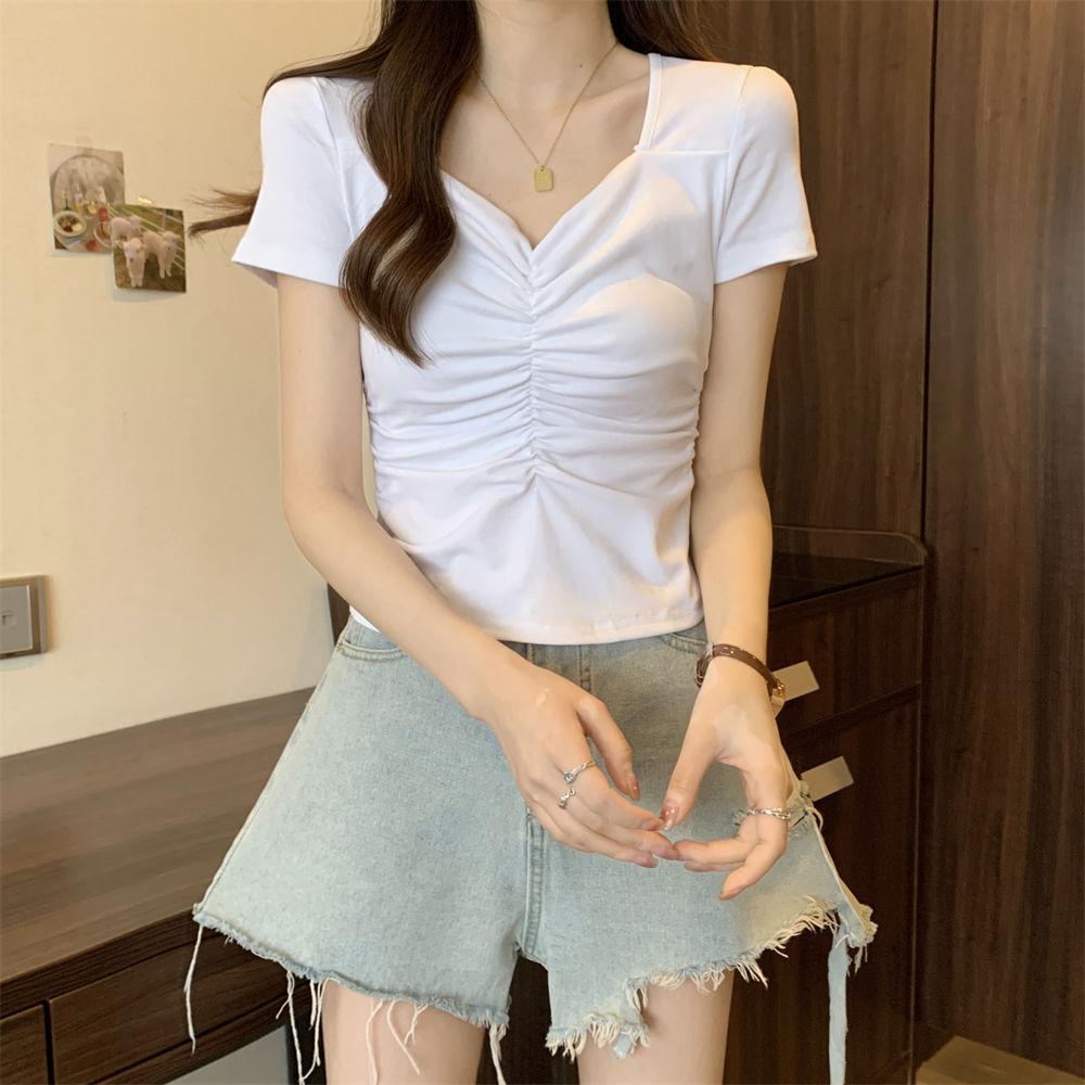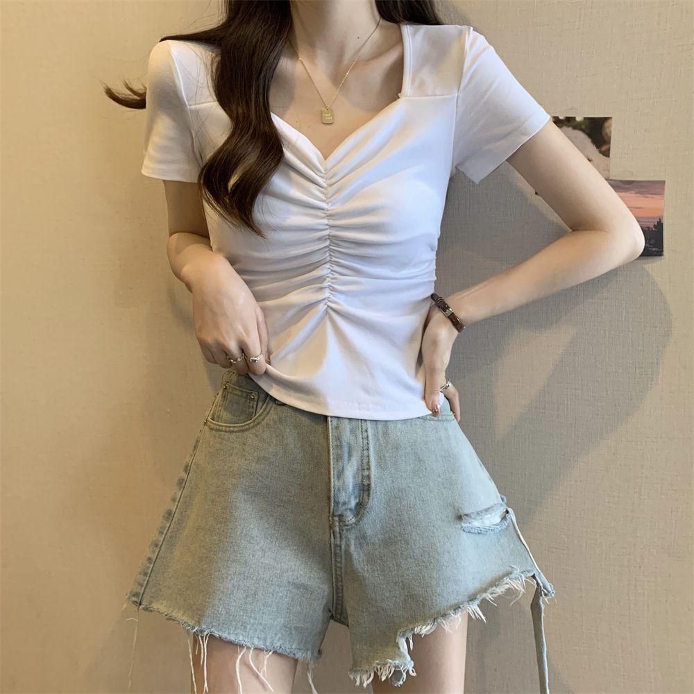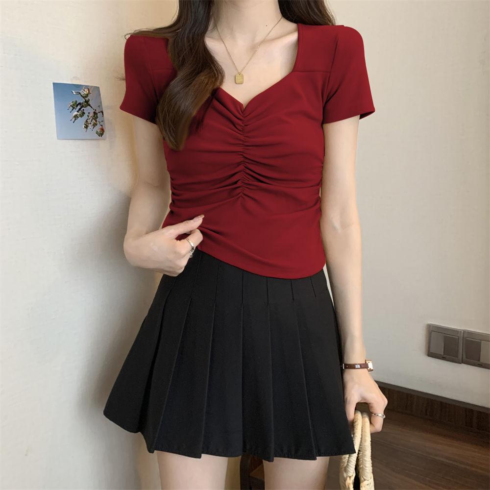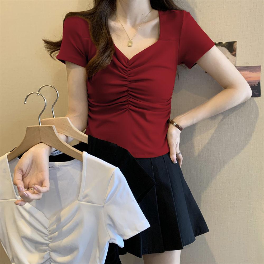 Camiseta ajustada con cuello cuadrado y cintura ajustada para chicas atractivas, estilo Pure Desire, sexy, combinable con todo, moda de nicho, top chic único.