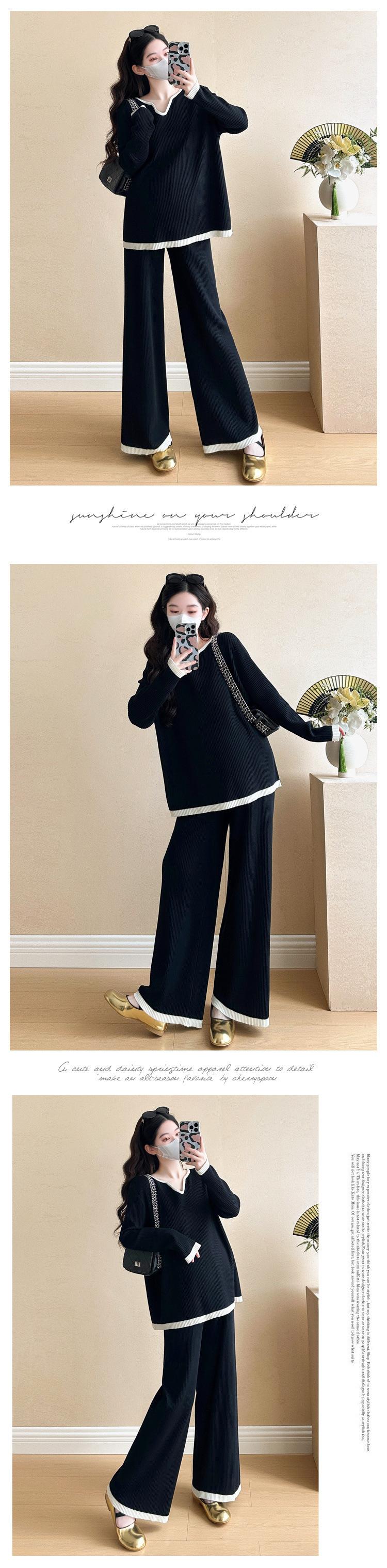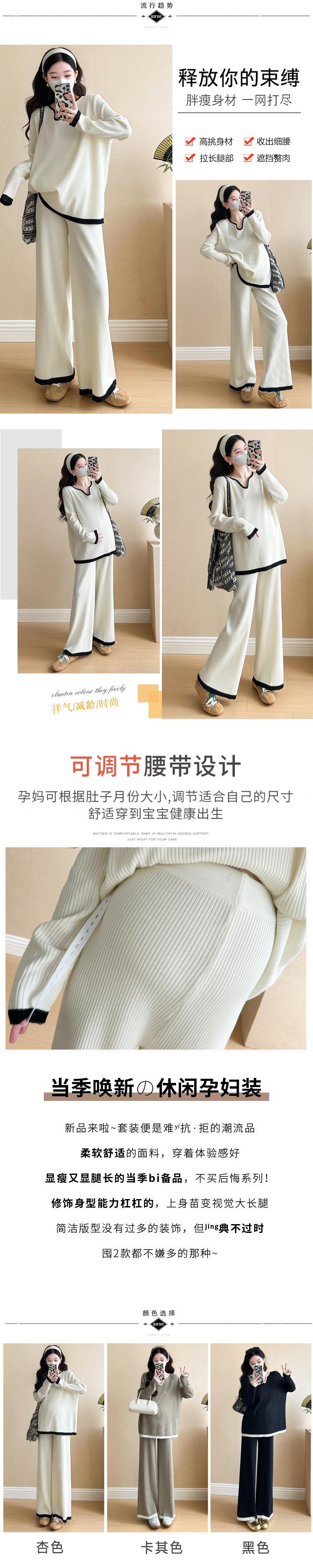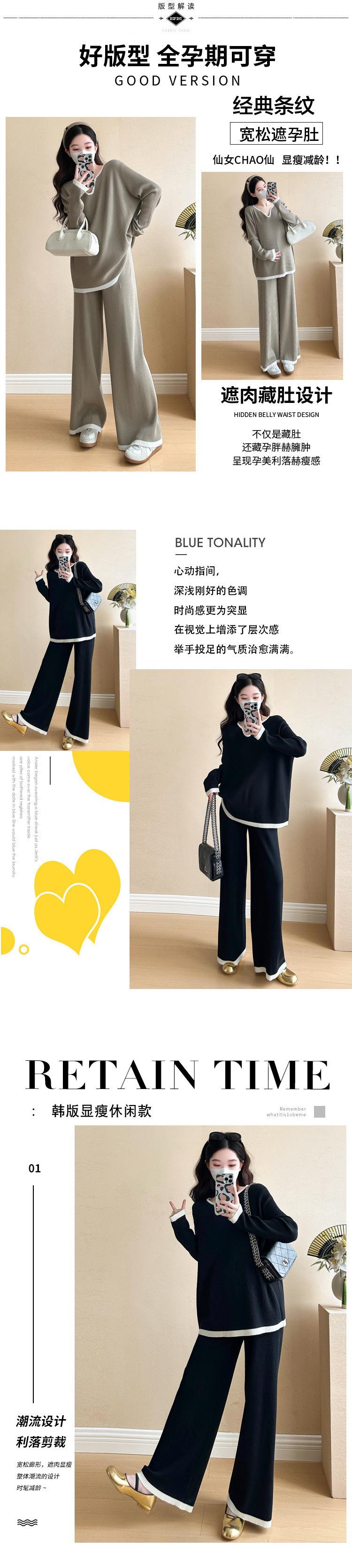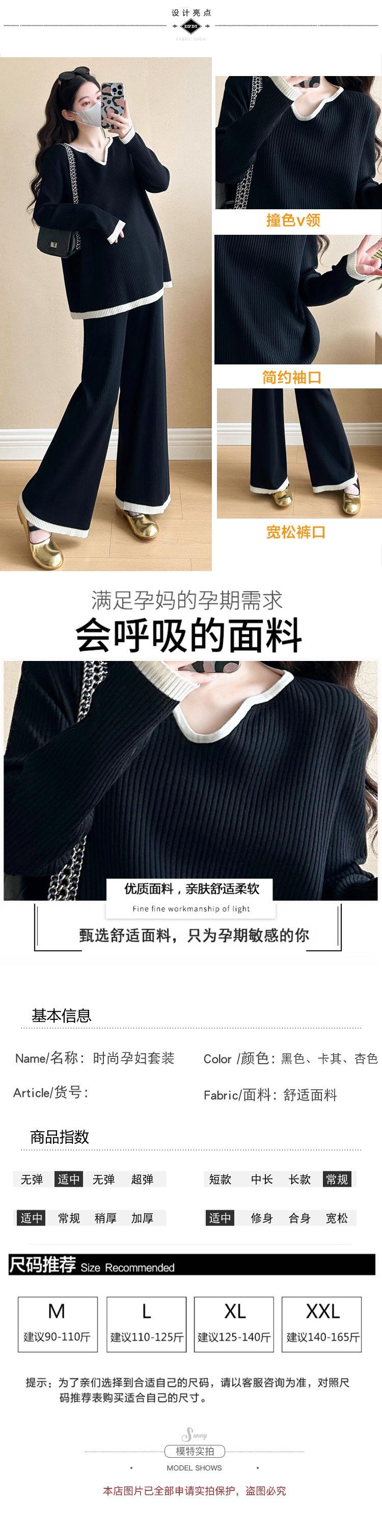Foto real 2025 primavera novo mãe grávida plus size gola V costura de cores tricô temperamento preguiçoso moda terno solto