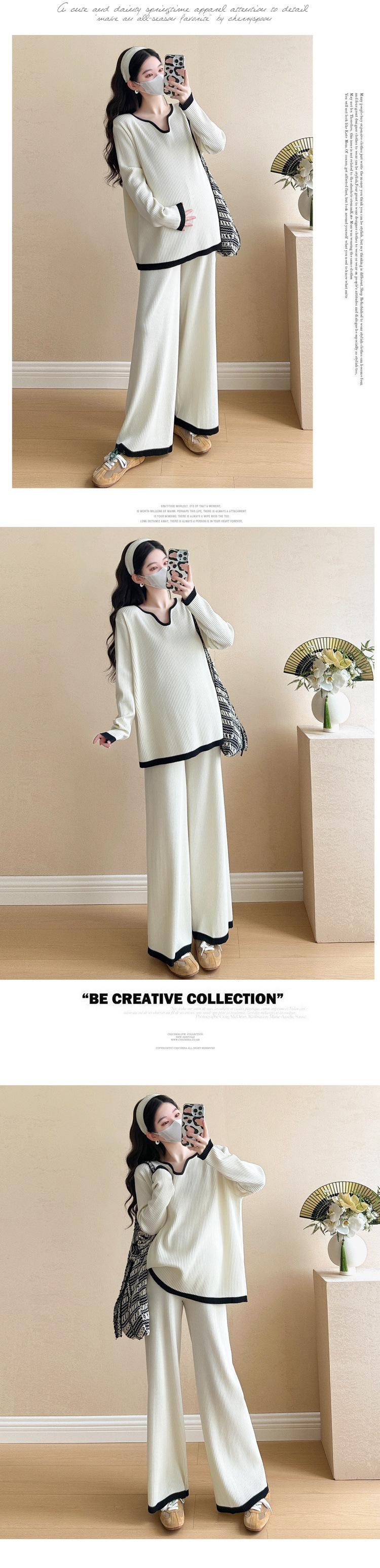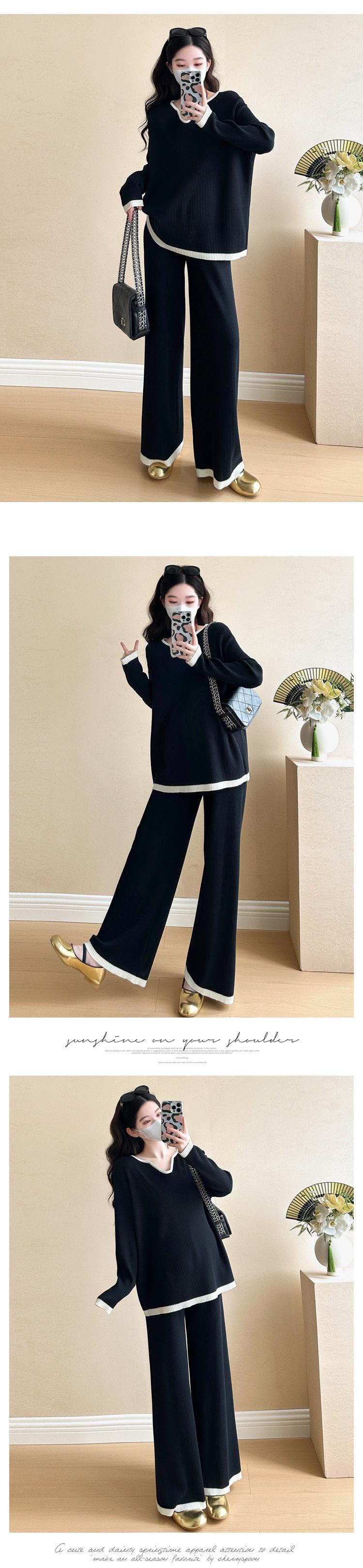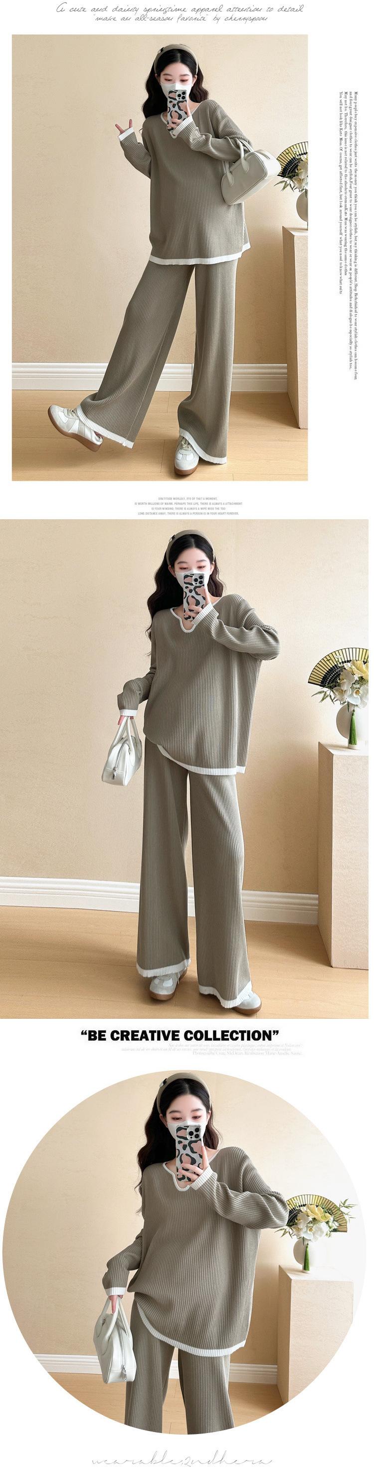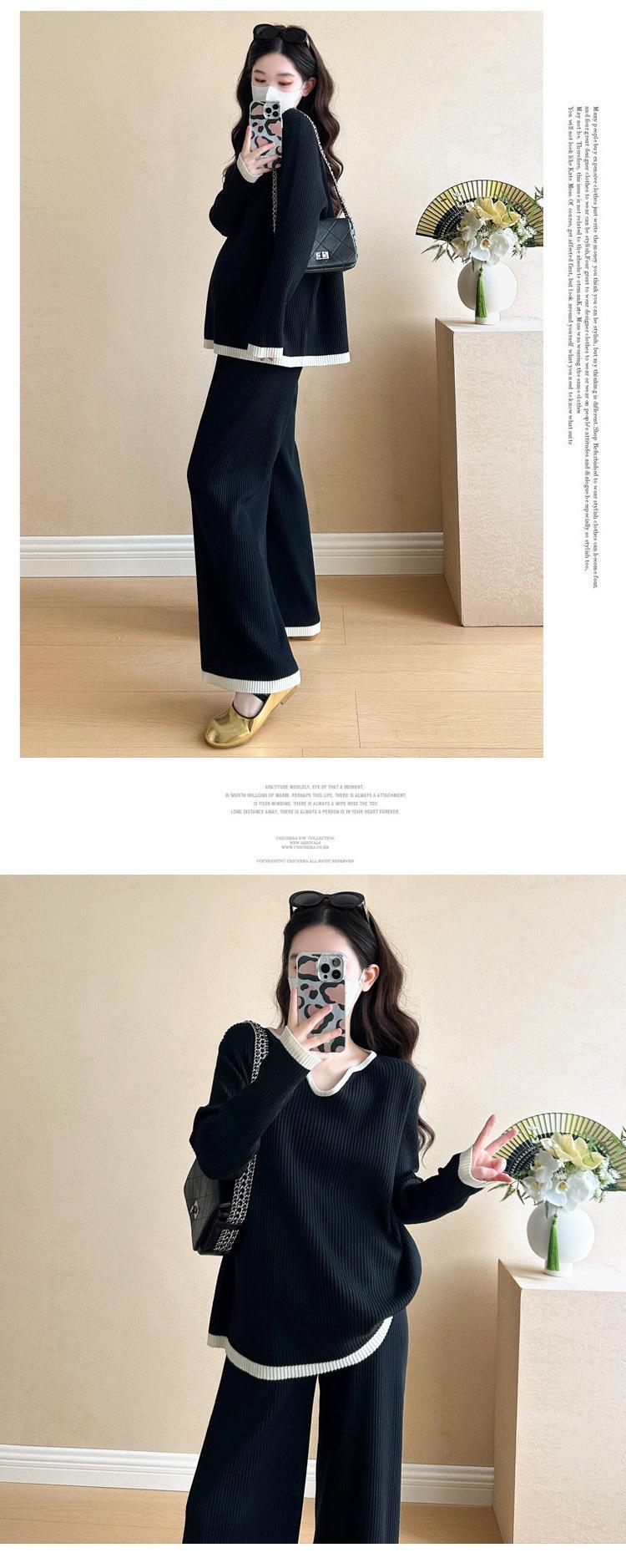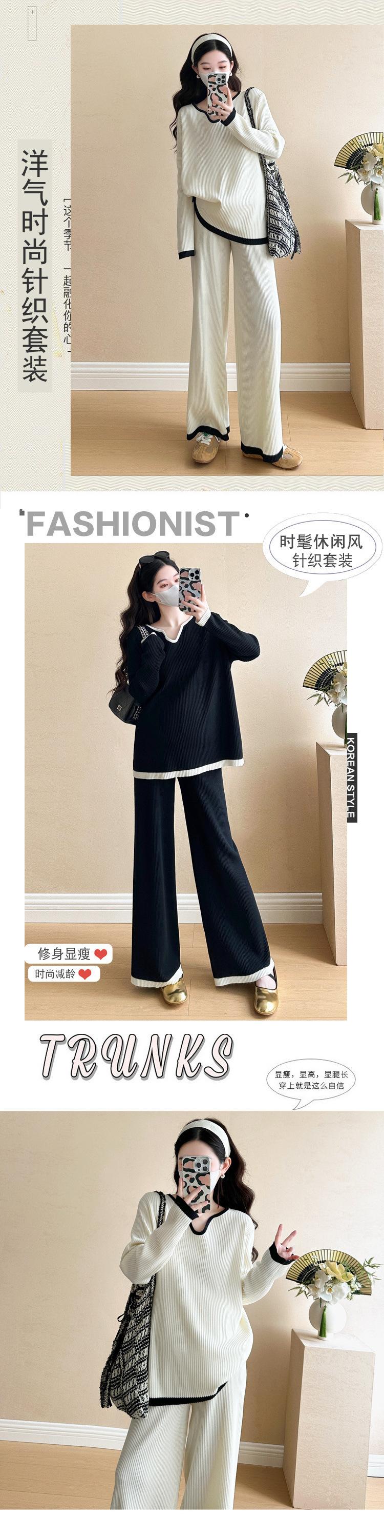 Foto real 2025 primavera novo mãe grávida plus size gola V costura de cores tricô temperamento preguiçoso moda terno solto