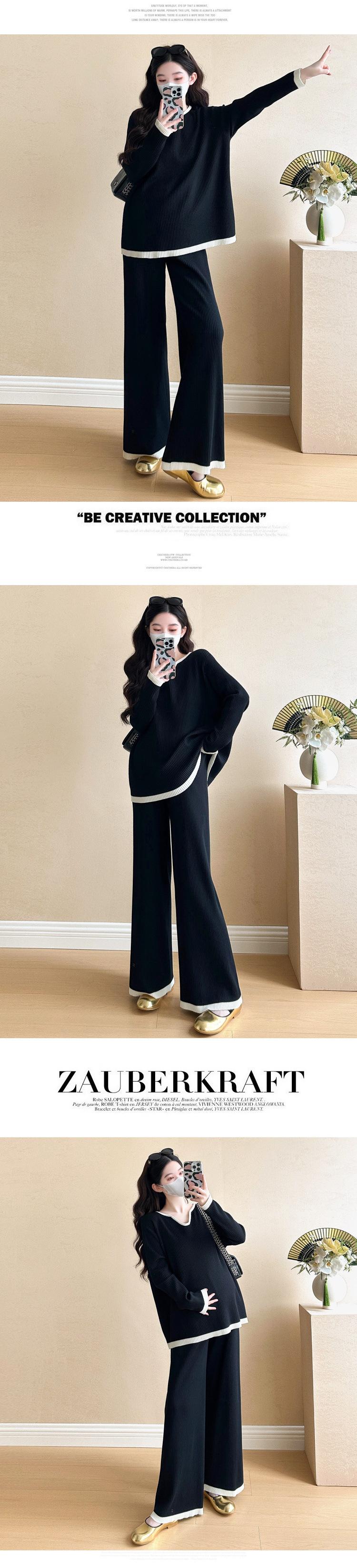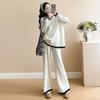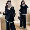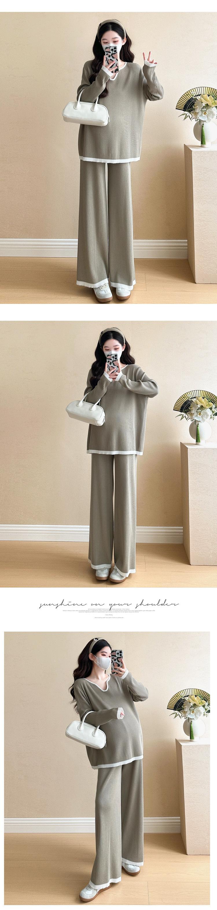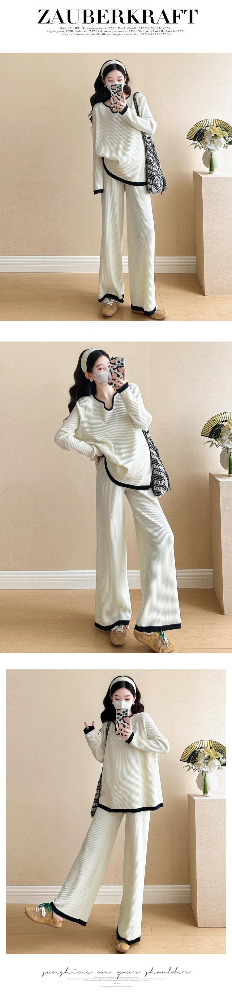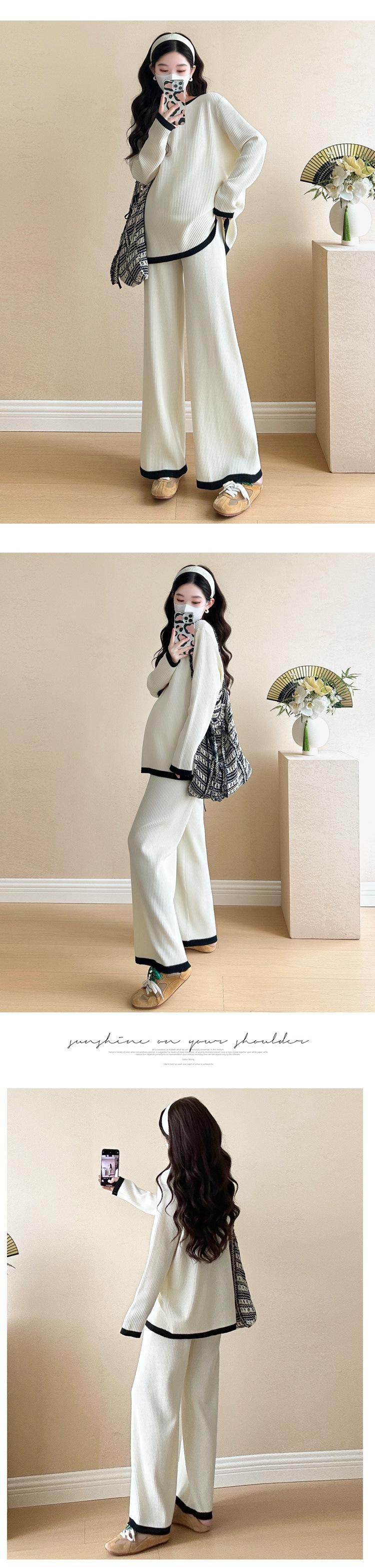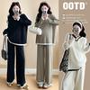 Foto real 2025 primavera novo mãe grávida plus size gola V costura de cores tricô temperamento preguiçoso moda terno solto