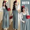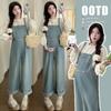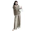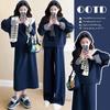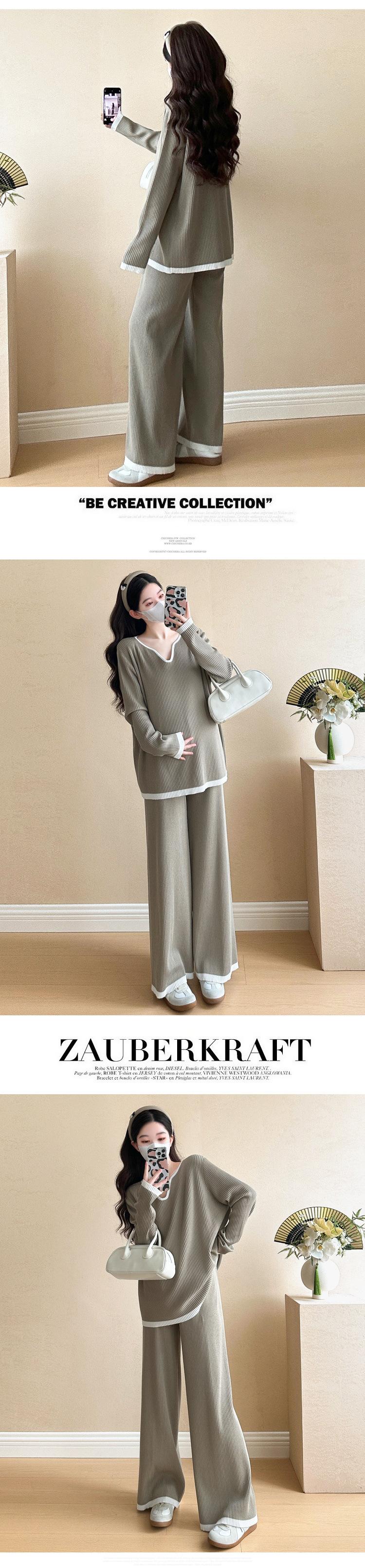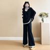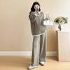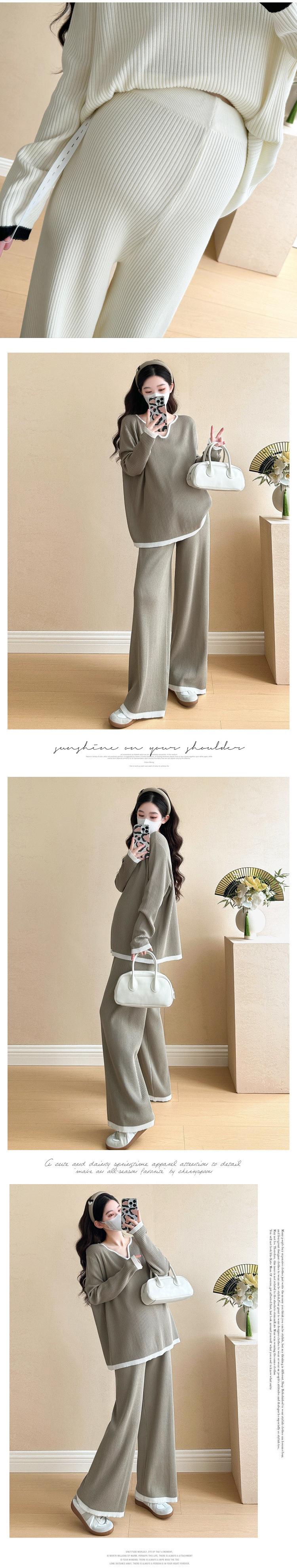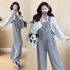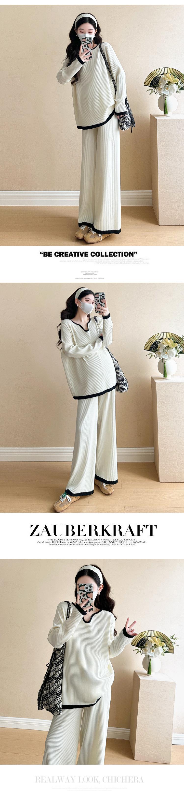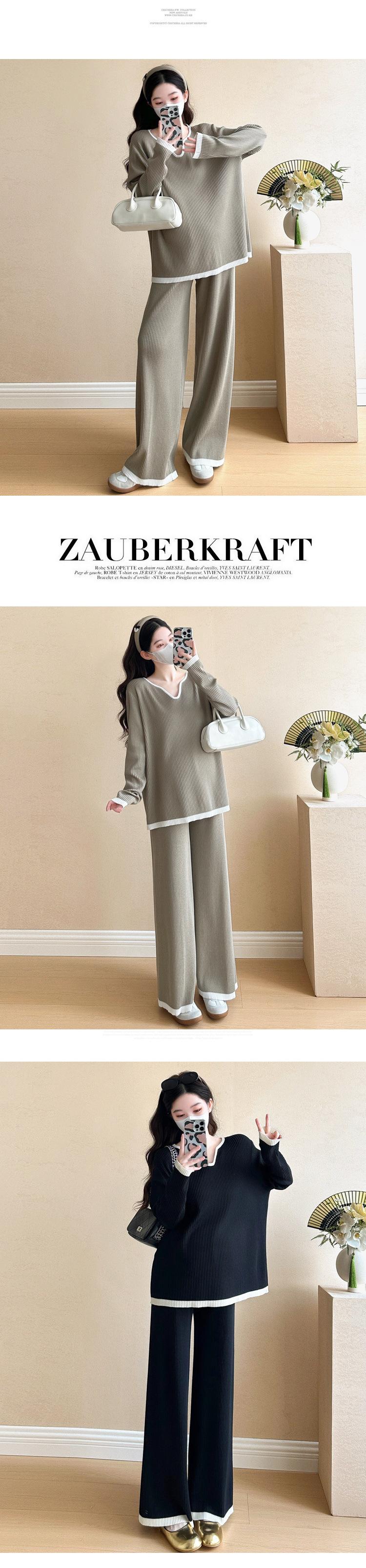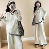 Foto real 2025 primavera novo mãe grávida plus size gola V costura de cores tricô temperamento preguiçoso moda terno solto