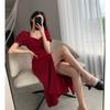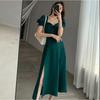 Vestido largo de mujer, novedad de verano 2025, manga abullonada, cuello cuadrado, estilo Hepburn, francés, dulce, retro, corte A, vestido dividido