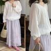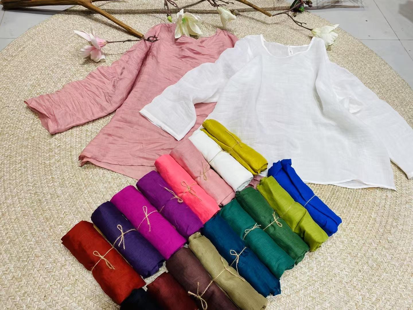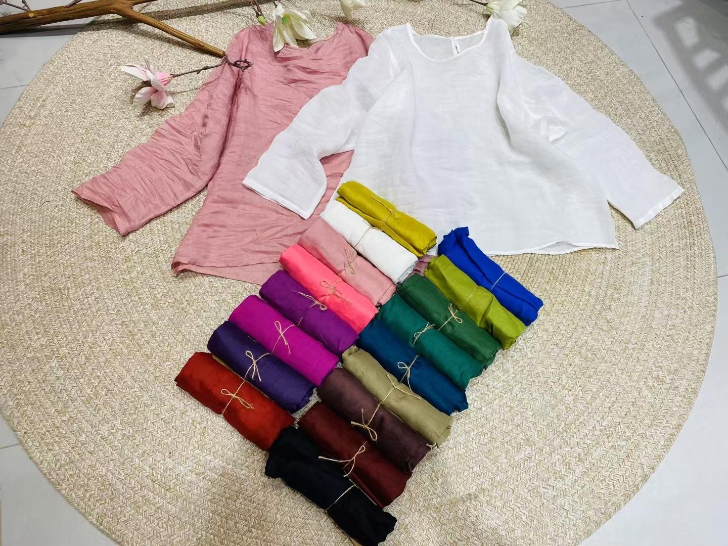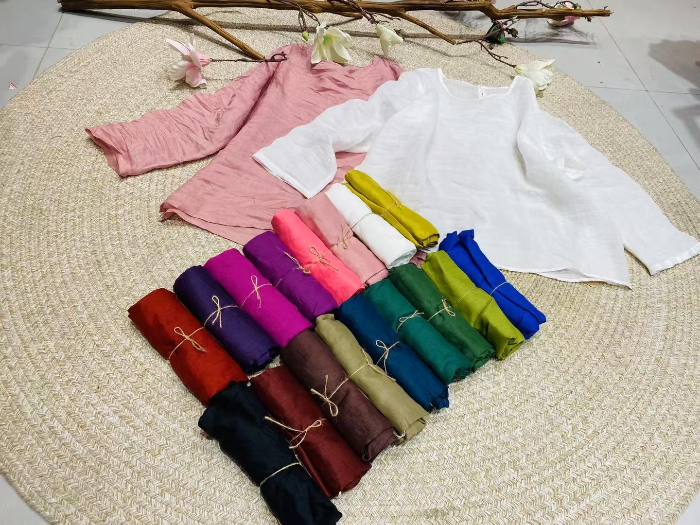 Camisa retro de ramio con cuello redondo, holgada, artística y sencilla, de principios de primavera 2025